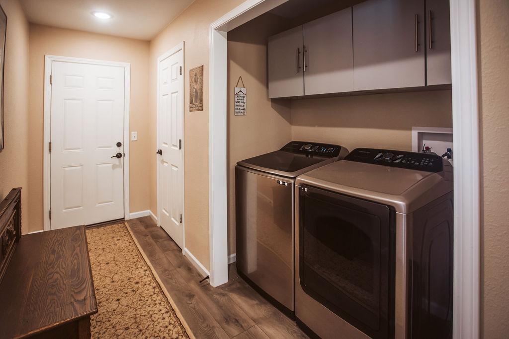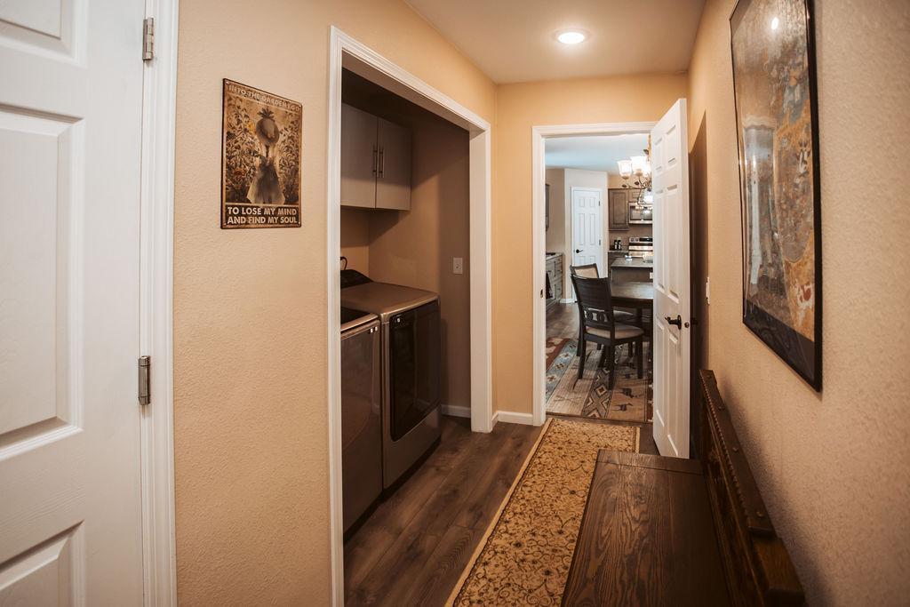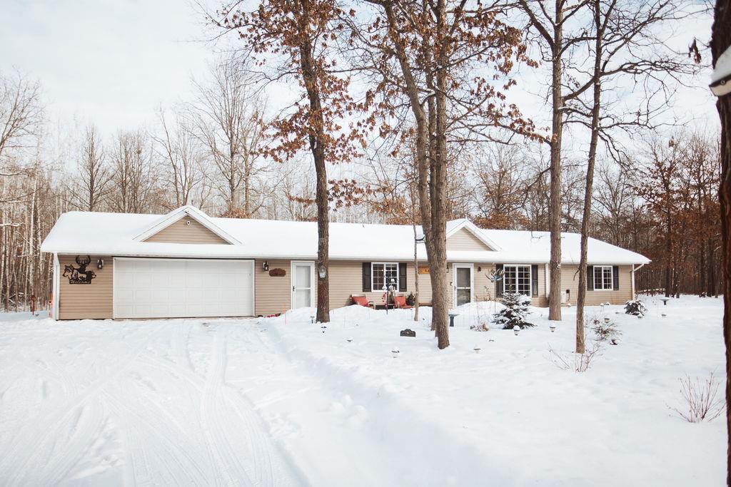 This one-level home in Motley offers practical living with quality upgrades and a private ranch-style setting. The open floor plan is efficient and comfortable, with a functional kitchen that includes a pantry, stainless steel appliances, and upgraded soft-close cabinetry. USB outlets are conveniently located throughout the home, and fiber optic service provides reliable high-speed connectivity. Main-floor laundry and in-floor heat in both the home and garage add everyday convenience and comfort. The primary bedroom includes its own bathroom that features a handicap-accessible shower. A whole-home water filtration system is also in place. The original build was upgraded with extended garage space, offering room for storage and a workshop. The garage features in-floor heat, a floor drain, and a 2+ car layout. The home is located at the end of a cul-de-sac, creating a quiet and private setting with minimal traffic. An extensive security camera system is included with the property and is used specifically for wildlife viewing. Solar lighting is installed throughout the property and will remain. The home sits on a beautifully wooded 2.91-acre lot with no HOA. The property is a certified wildlife habitat, with a wide variety of birds and wildlife regularly seen on the land. Walking trails wind through the property, with benches placed along the way to enjoy the surroundings. The landscaping includes cherry and apple trees, red and black currants, more than 68 perennials, 14 varieties of pine trees, and thoughtfully placed Lake Superior stones. A gazebo is included and provides a comfortable place to relax and enjoy the view. This property offers true one-level living in a private, natural environment, with upgrades and care that are increasingly difficult to find.