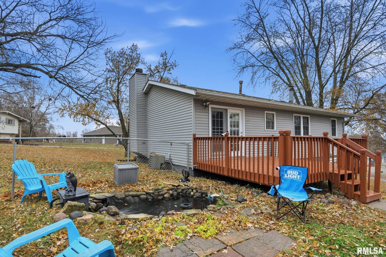 LeClaire Property For Sale! Don't miss out on your chance to own this amazing move-in-ready 4-bedroom, 2 full bath, 2-car garage home with over 2,000 square feet of living space. This home, located in Pleasant Valley schools, is located on almost half an acre lot, complete with a deck, fenced yard, and a coy pond. Enjoy privacy on your amazing property with 3 walk-thru gates and 3 drive-thru gates. The meticulously maintained main floor boasts a living room, kitchen/informal dining area, 3 bedrooms, and a full bath. The large lower level offers an additional 1,000 sq feet of living space. Use it as a 4th bedroom, or a large rec room. There's an additional full bath on the lower level as well! And it's a walk-out. Schedule your showing now!