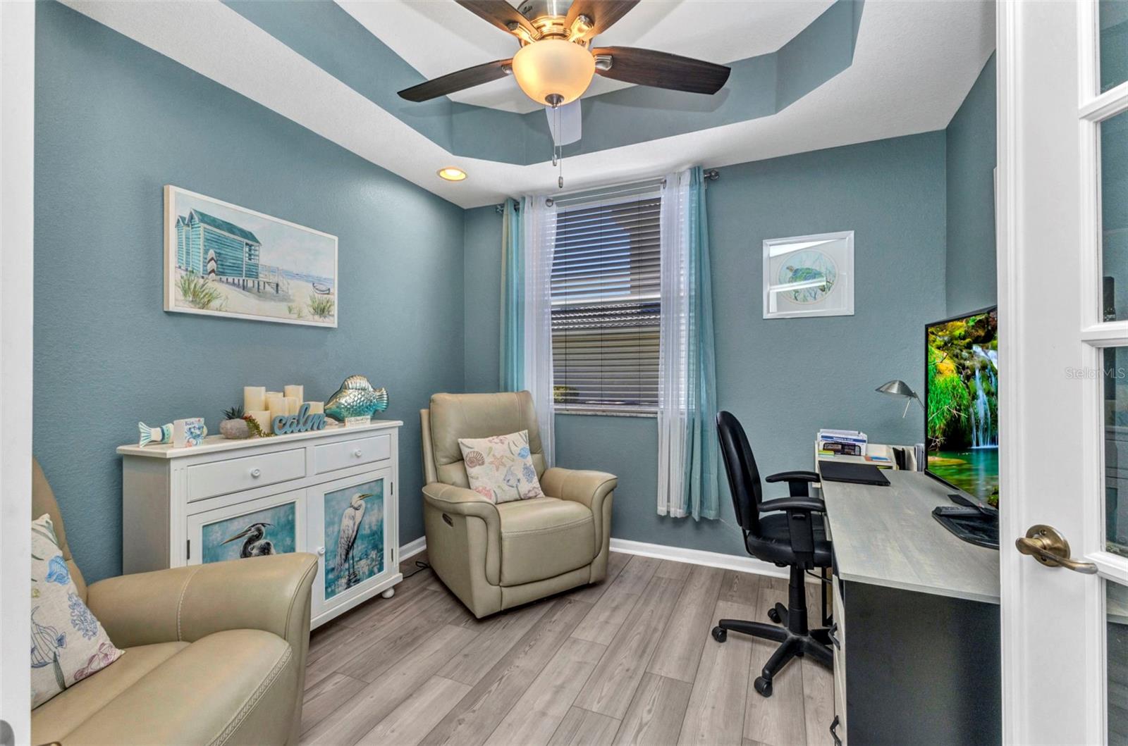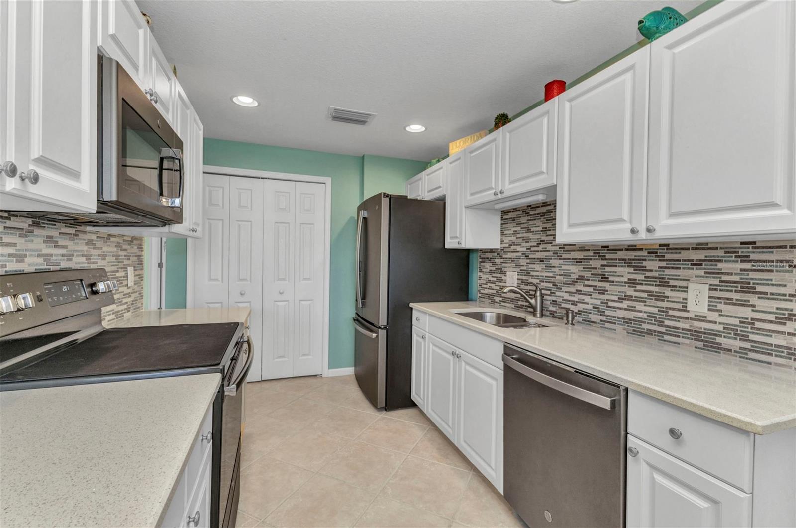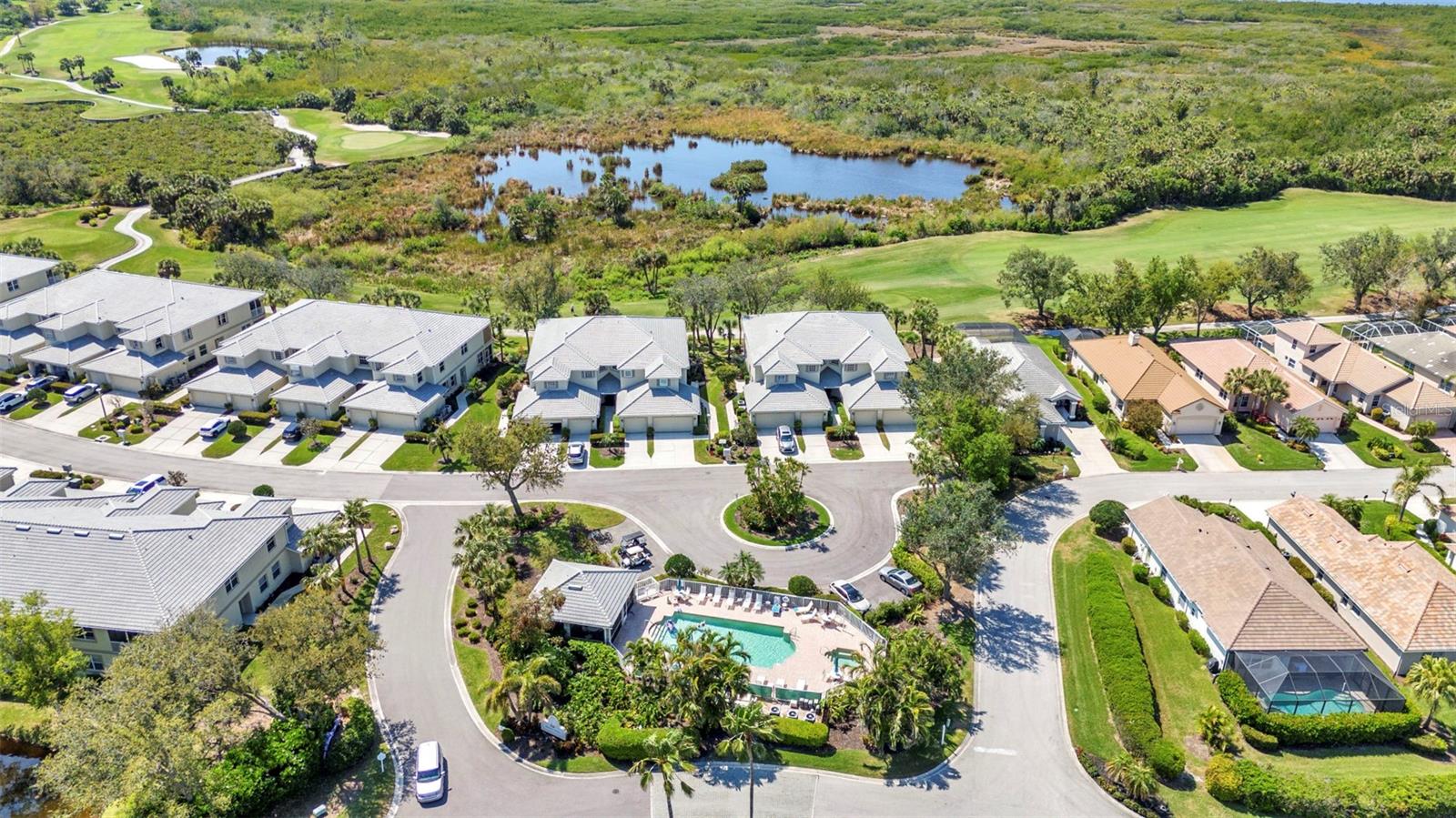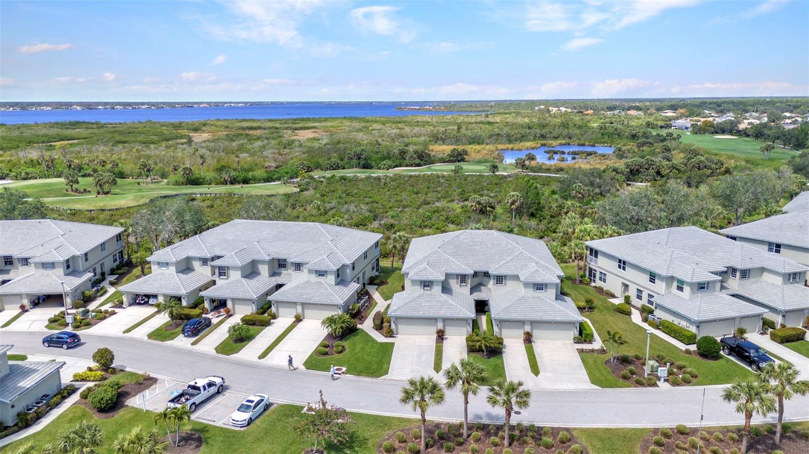 Beautifully updated and truly move in ready, this first floor 2 bed, 2 bath + office condo in Grand Vista showcases the improvements buyers are looking for. A new roof was completed in 2024, a new HVAC system was installed in 2025, and the entire Grand Vista community has recently been refreshed with updated landscaping, giving the neighborhood a vibrant, beautifully maintained feel. Inside, the ceramic tile floors set on the diagonal have just been professionally cleaned and sealed with a five year warranty, giving them a polished, like new finish. The kitchen has been thoughtfully renovated with Quartz countertops, a stylish tile backsplash, stainless steel appliances, raised panel cabinetry, and a convenient closet pantry. Hurricane shutters add additional protection, and furniture is included in the purchase, making this an easy transition to enjoying the Florida lifestyle. Located in one of Riverwoods most desirable subdivisions, residents of Grand Vista enjoy their own exclusive community pool and cabana in addition to the impressive amenities offered throughout Riverwood. Right across the street is a lovely park like green space with pond views, creating a tranquil setting for a morning walk or a quiet moment outdoors. From the screened and covered lanai with roll down shades, you will enjoy peaceful views of a private preserve. The home features an inviting coastal color palette and a spacious open floor plan. The comfortable family room opens through large sliding glass doors to the lanai, creating easy indoor outdoor living. A charming dining nook offers space for casual meals, while the dedicated dining room showcases a coffered ceiling and luxury vinyl plank flooring, creating a warm and welcoming place to gather. The primary suite offers a relaxing retreat with dual sinks, a luxurious walk in shower with stunning tile detail, and a roomy walk in closet. Double French doors lead to a flexible bonus space designed as both a comfortable seating area and a functional home office, complete with a coffered ceiling and luxury wood plank vinyl flooring. The second bedroom and bath are privately situated, providing comfort and privacy for guests. Additional features include a two car garage and a laundry room with extra storage. The vibrant community of Riverwood features a highly acclaimed par 72 championship golf course, a new state of the art fitness center, a resort style pool with lap lanes, a walk in shallow end, and a separate hot tub. Pickleball is all the rage, and Riverwood boasts six brand new courts, along with six Har Tru tennis courts. World class fishing, boating, dining, and shopping are just minutes away. Conveniently located between Sarasota and Ft. Myers on Floridas West Coast. If you have been dreaming of an easy, carefree Florida lifestyle in an active, gated community, this Grand Vista condo is ready to welcome you home.
