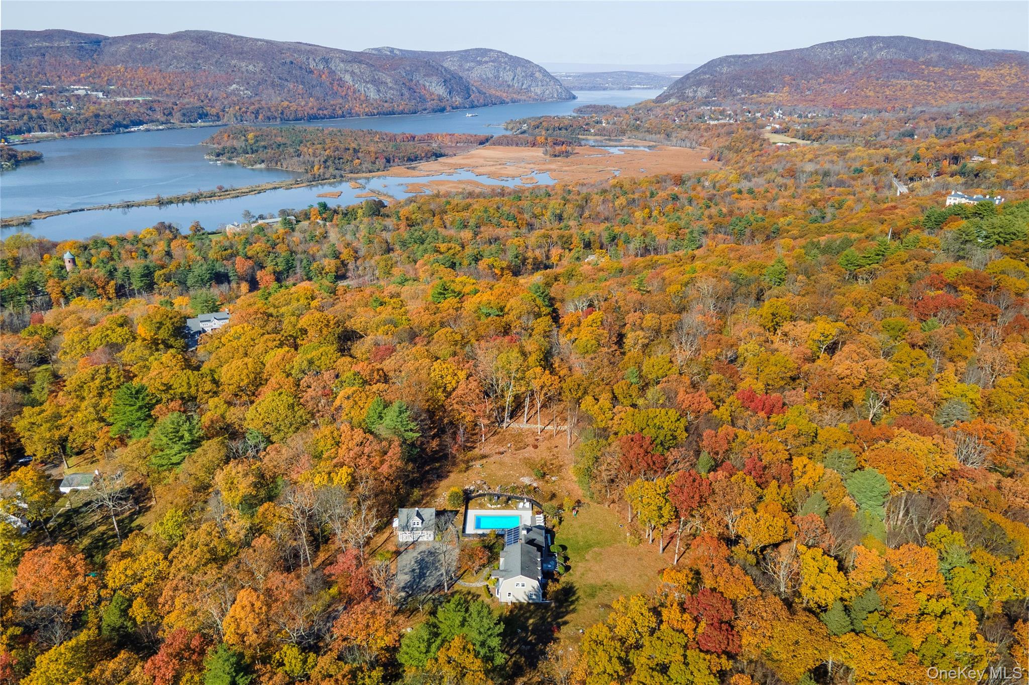 At Hudson Ridge, the essentials of a home, location, design, and space, come together with ease. Recently reimagined to capture natural light and a contemporary aesthetic, it offers a setting that is both open and inviting. Set on nearly five acres, the property has the character of a country estate. The main level is anchored by a spacious living room with a modern free standing fireplace and glass doors that open to the updated pool and deck. At the heart of the home, the renovated kitchen connects to the dining room on one side and to a den with a woodburning fireplace on the other. A second deck extends from the den, overlooking the level backyard.Also on this floor are a bedroom and an additional room that functions as a formal living room, study, or office. Upstairs, the primary suite includes a renovated bath and generous closets, while two additional bedrooms and a full bath provide ample space.The finished lower level offers room for movies, games, or exercise, while a bright studio above the detached two car garage serves as a flexible workspace. The detached two car garage is equipped with a Tesla charging station for convenience.Balancing privacy, light, and versatility, Hudson Ridge adapts easily to a variety of lifestyles. Its central location places MetroNorth, schools, and the shops and restaurants of Cold Springs historic village just minutes away, bringing the best of the Hudson Valley within reach.