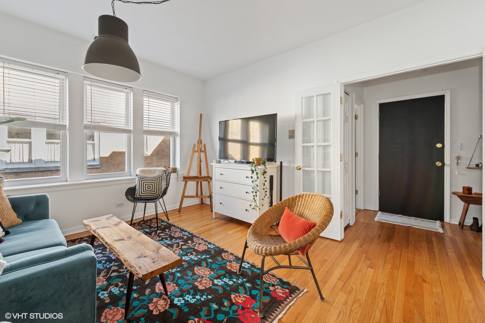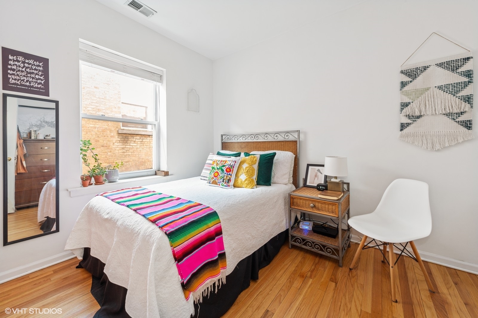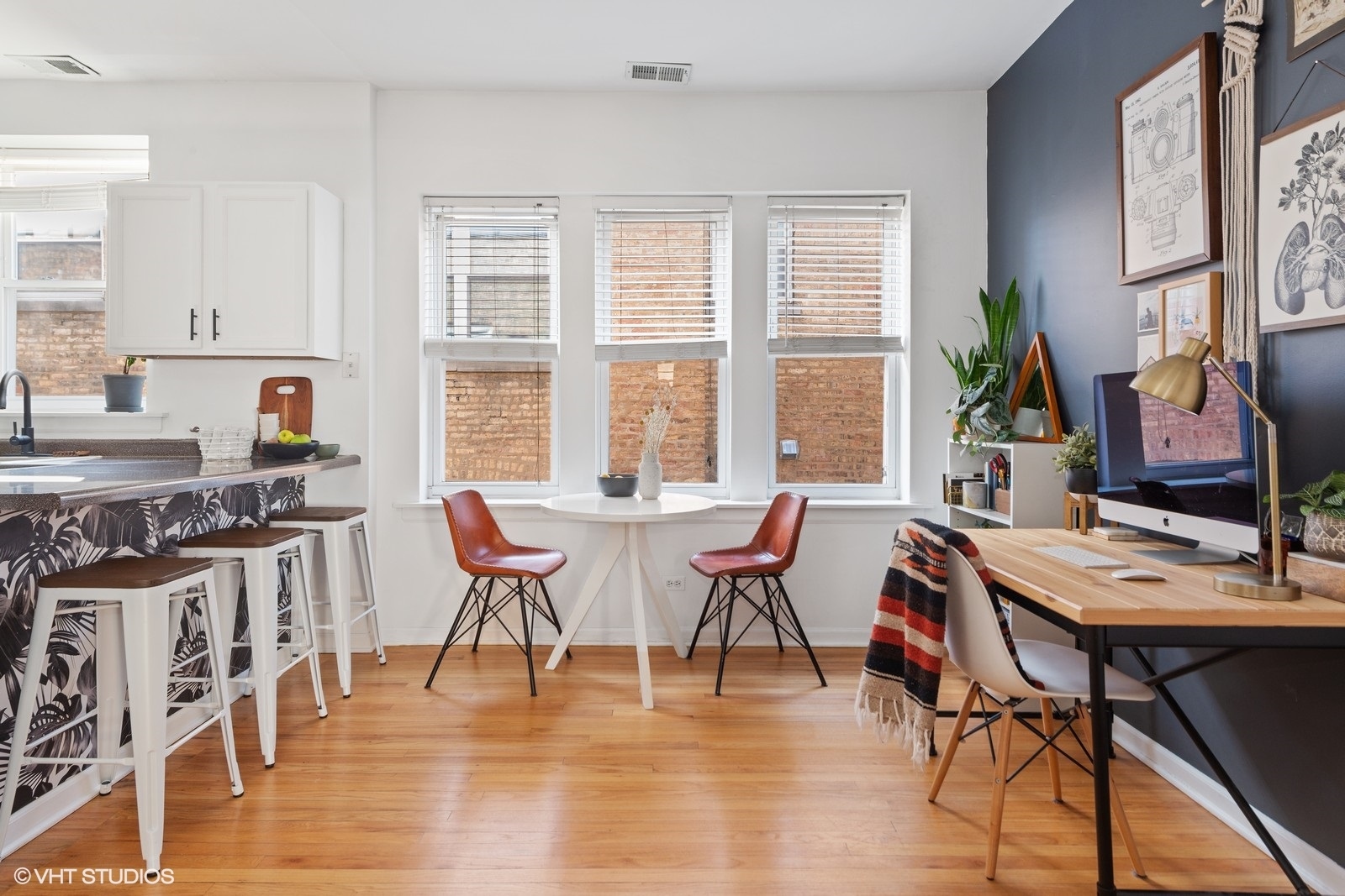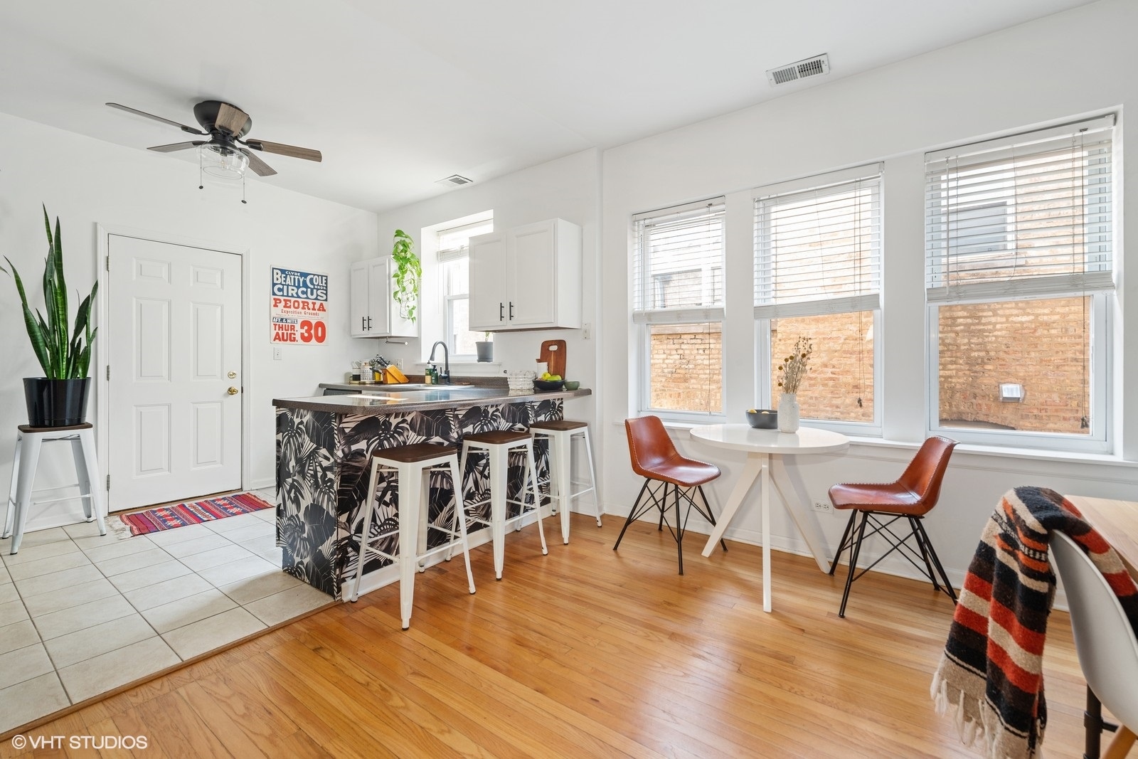 Bright and inviting one-bedroom, one-bathroom Logan Square gem located on charming Shakespeare Street in the heart of one of Chicago's most vibrant neighborhoods. This thoughtfully designed condo offers comfort, character, and the perfect place to call home. The unit features hardwood floors throughout, generous closet space, and a separate dining room that can easily function as a dedicated work-from-home area. The open and spacious kitchen includes a breakfast bar and flows seamlessly into the large living room, highlighted by French doors and a closet currently styled as a cozy mini library. The bedroom comfortably accommodates a queen or king-sized bed and offers ample closet space. Recent updates include refinished hardwood floors, a remodeled bathroom, freshly painted kitchen cabinets, a custom stained-glass piece, and updated lighting. Additional features include in-unit laundry, central AC, a front gate digital intercom, bike storage, a dishwasher, garbage disposal, and access to a large shared side yard for residents to enjoy.