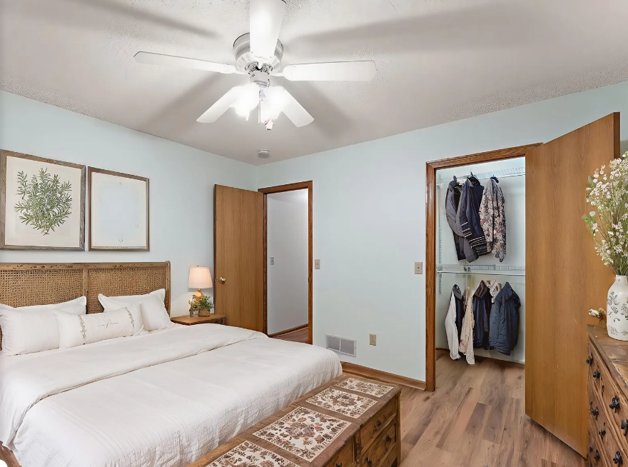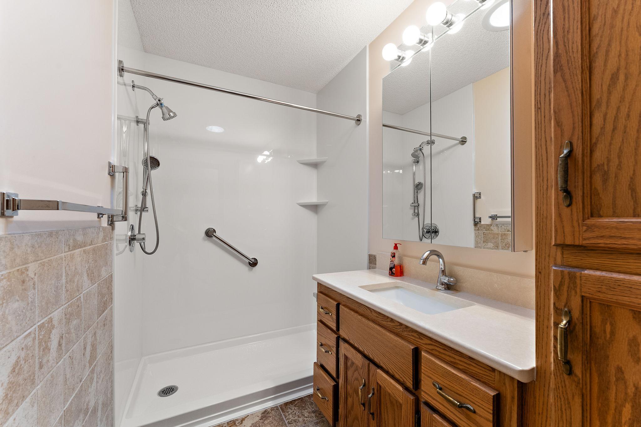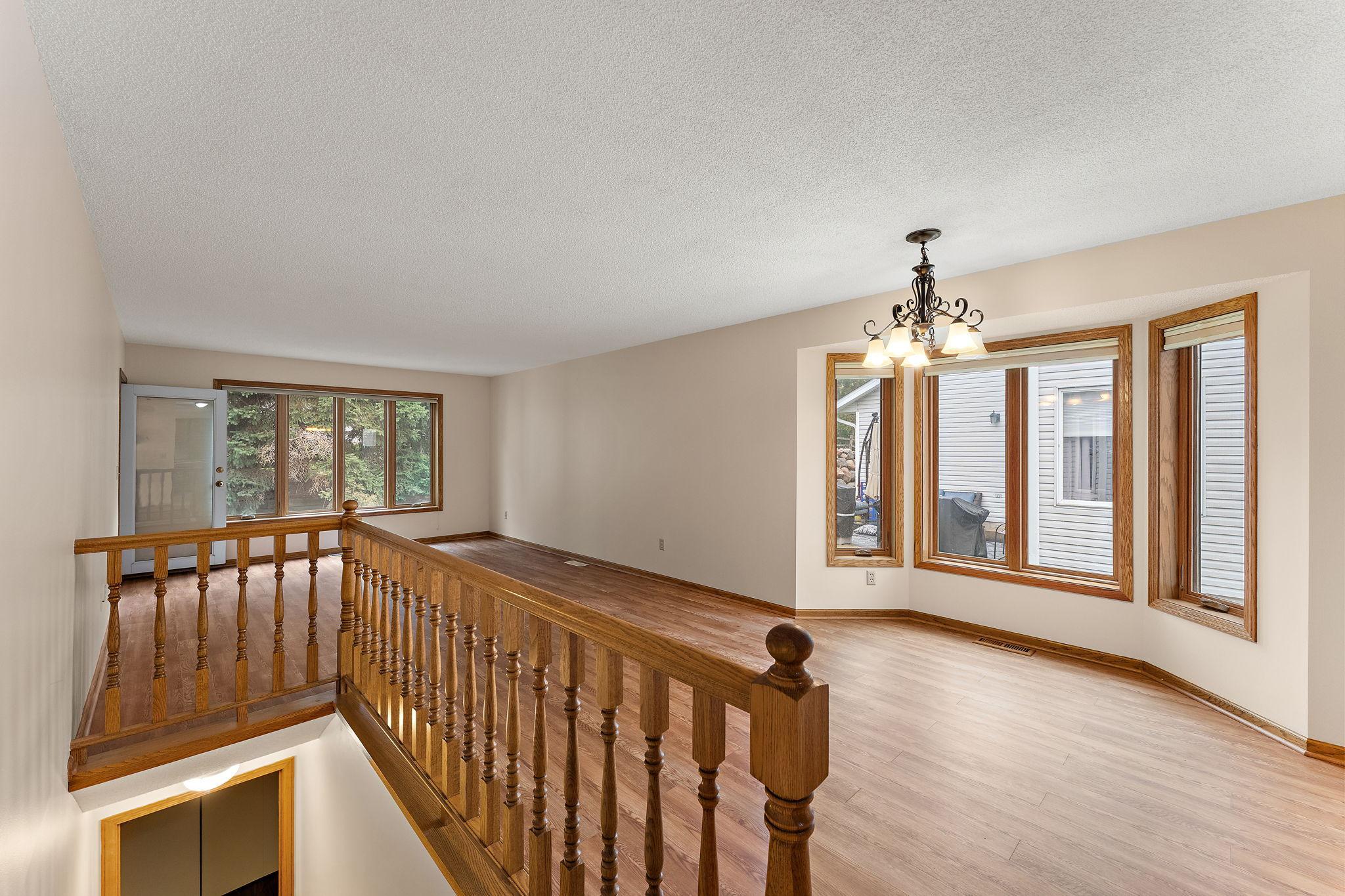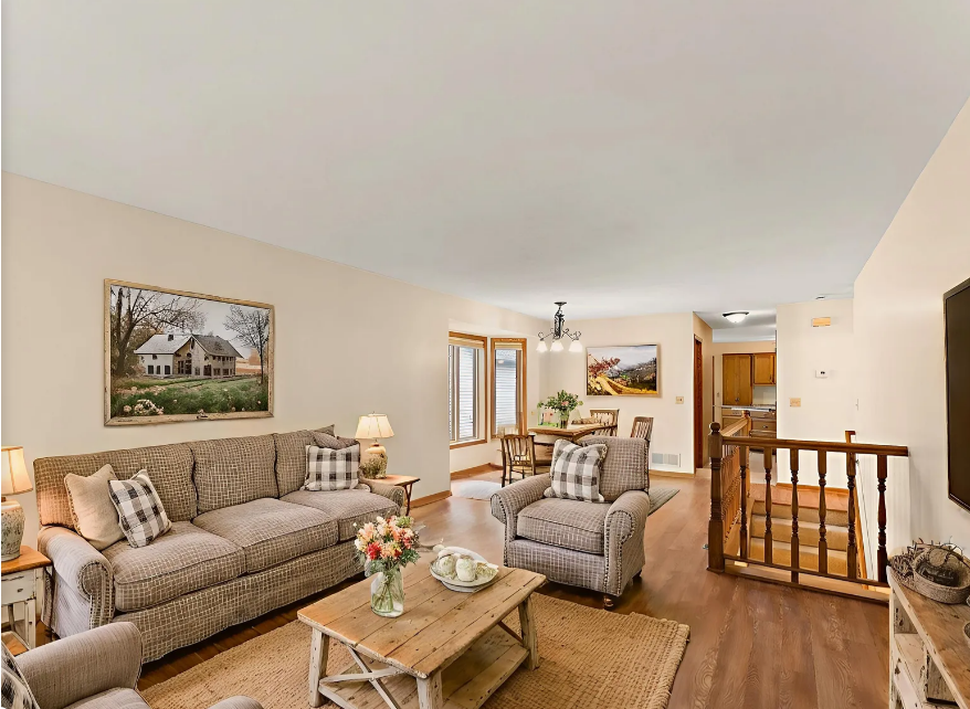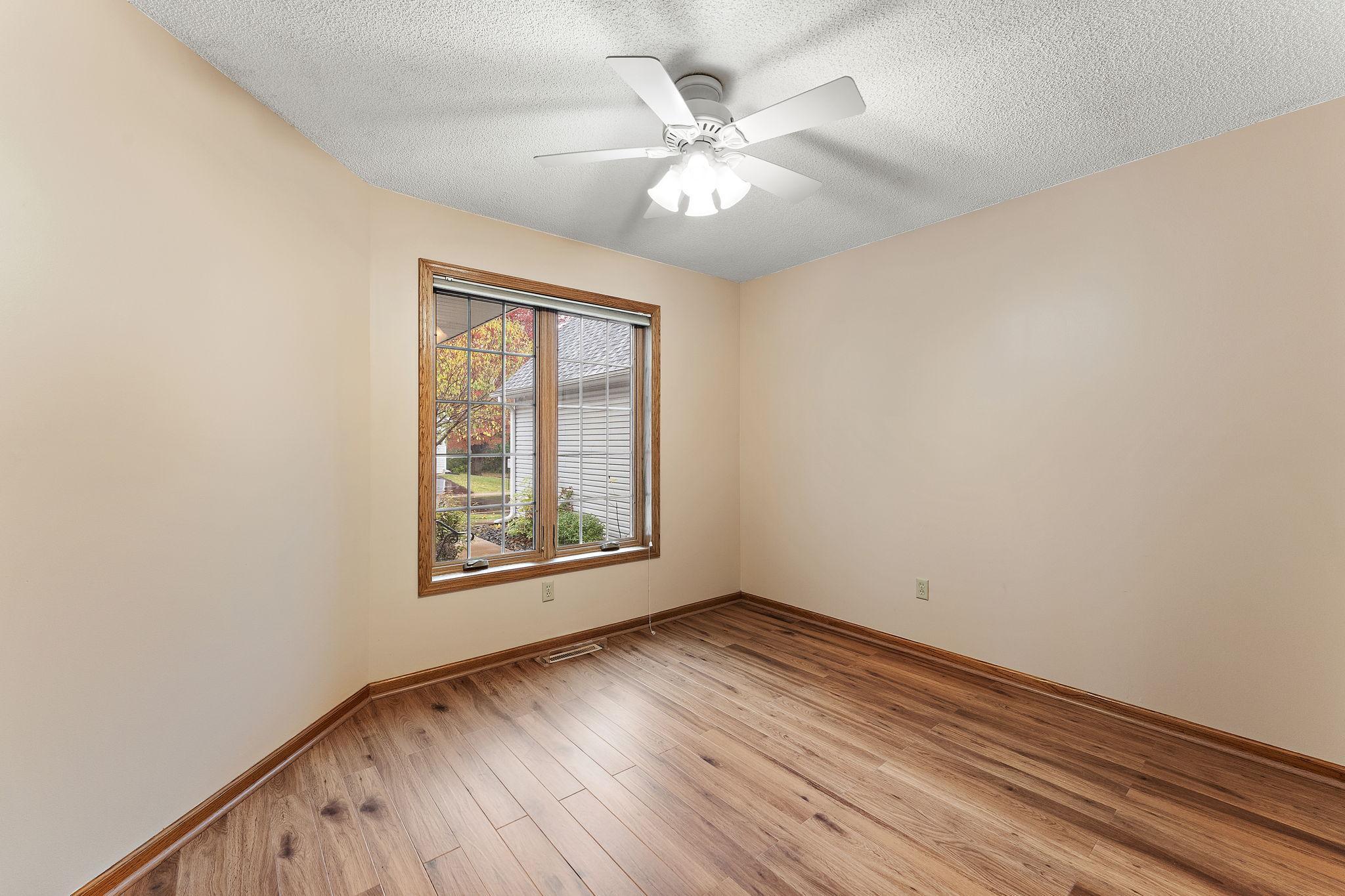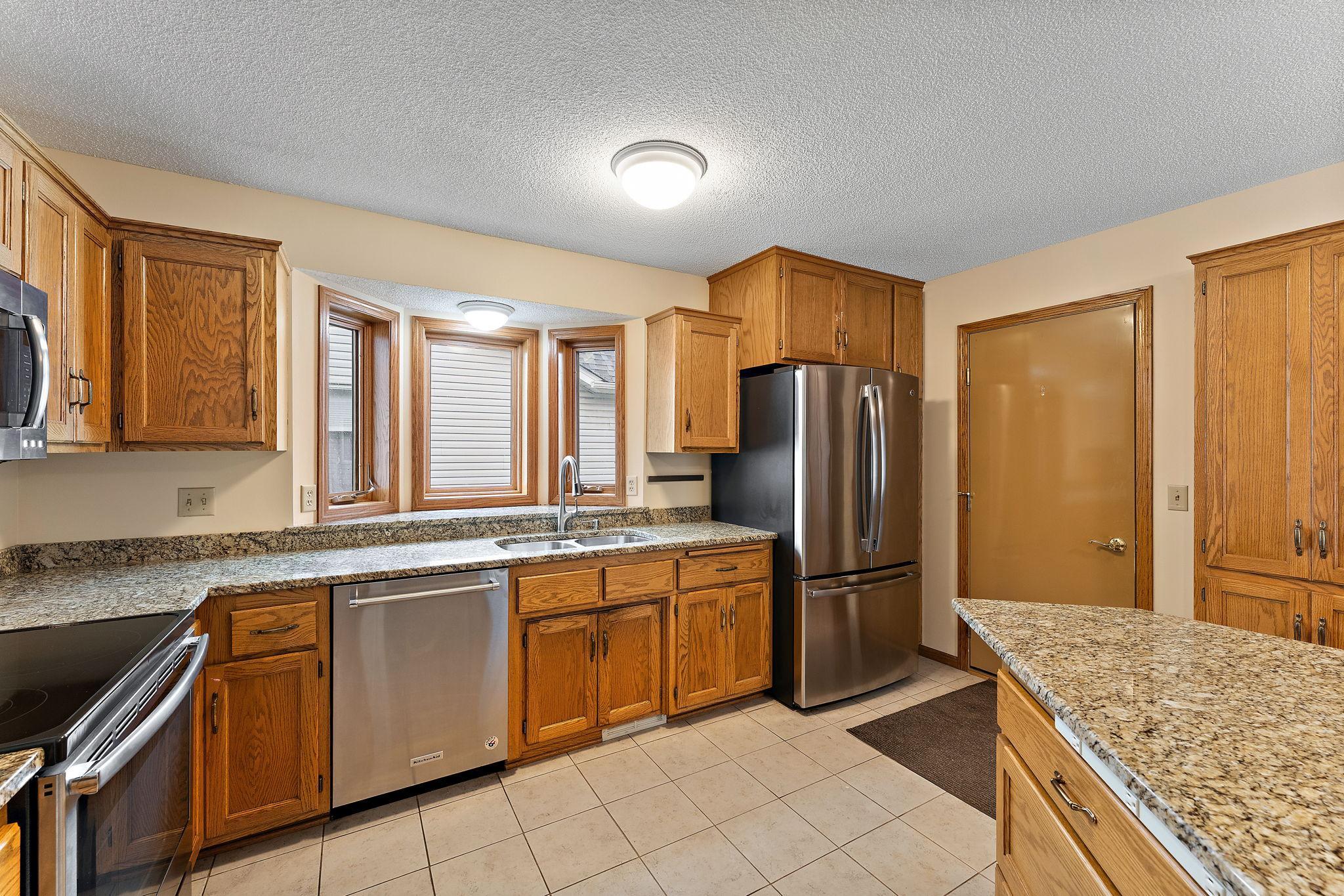 Beautifully maintained and updated home featuring newer stainless steel appliances, granite island, and under-cabinet lighting. New flooring on mainno carpet in main living areas! Vaulted 3-season porch and patio for relaxing or entertaining. Main floor laundry with sink and storage. Spacious bedrooms with ceiling fans and walk-in closet in primary. Walk-in shower with grab bars and linen closet. Finished lower level with large family room, bath, sump pump w/backup battery, and tons of storage. Shelving, and water softener included. Move-out and cleanup completeready for the next owner!