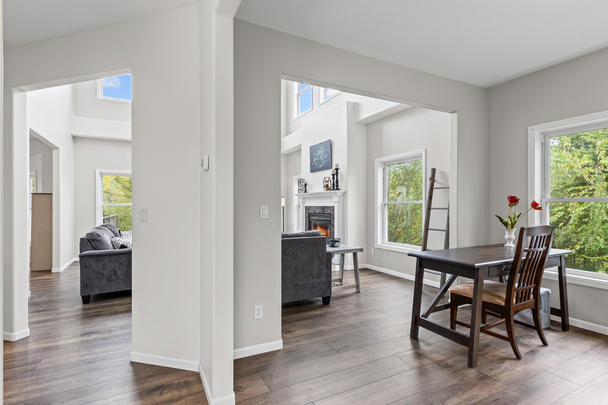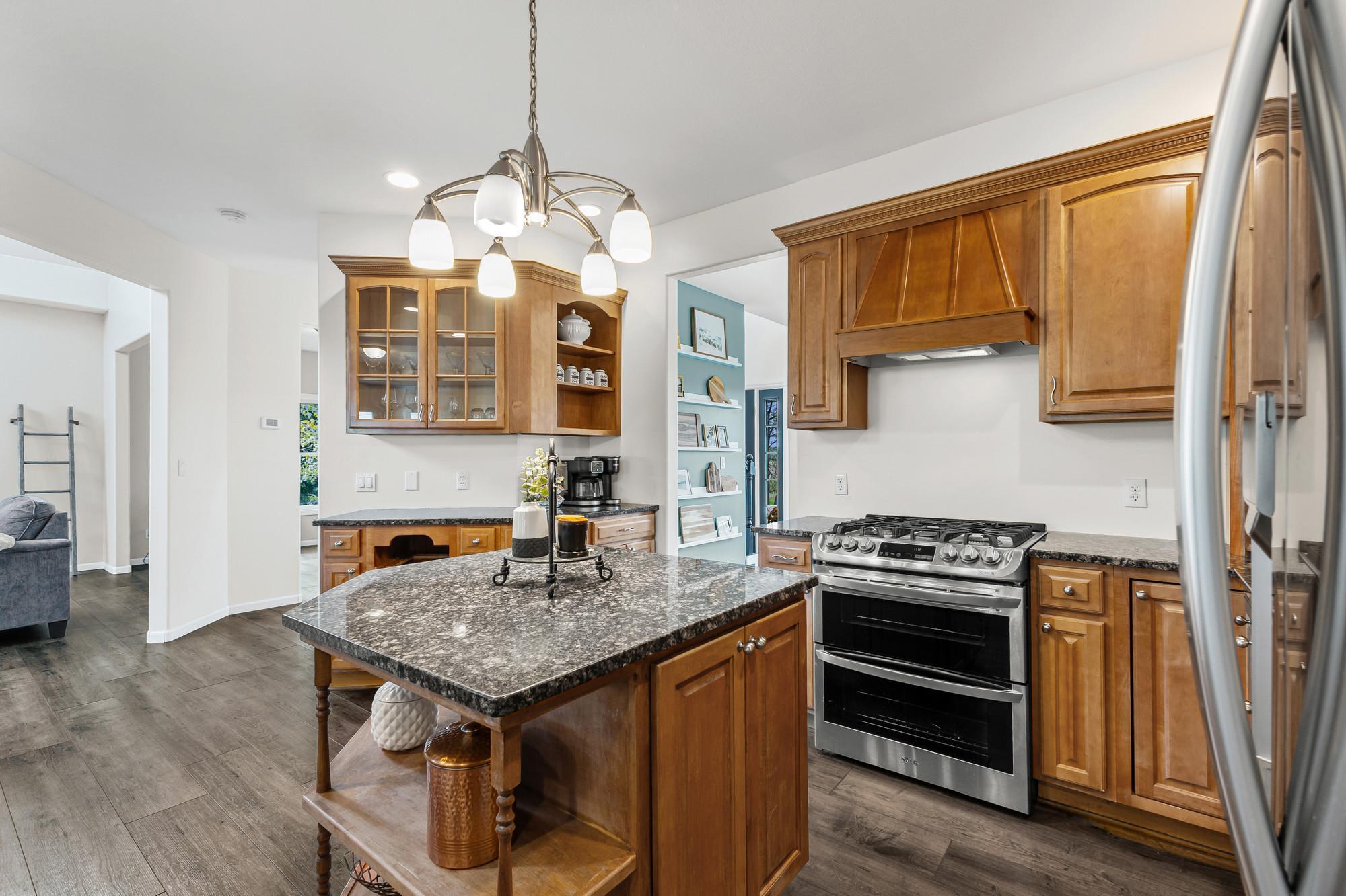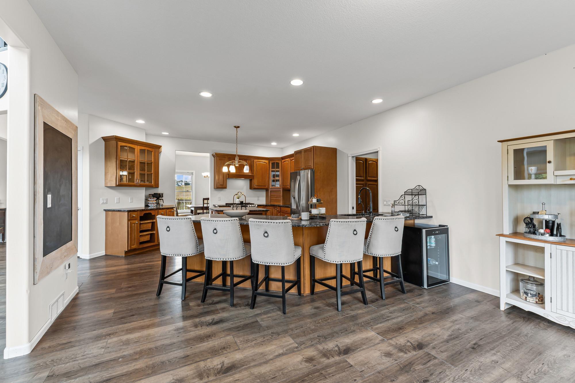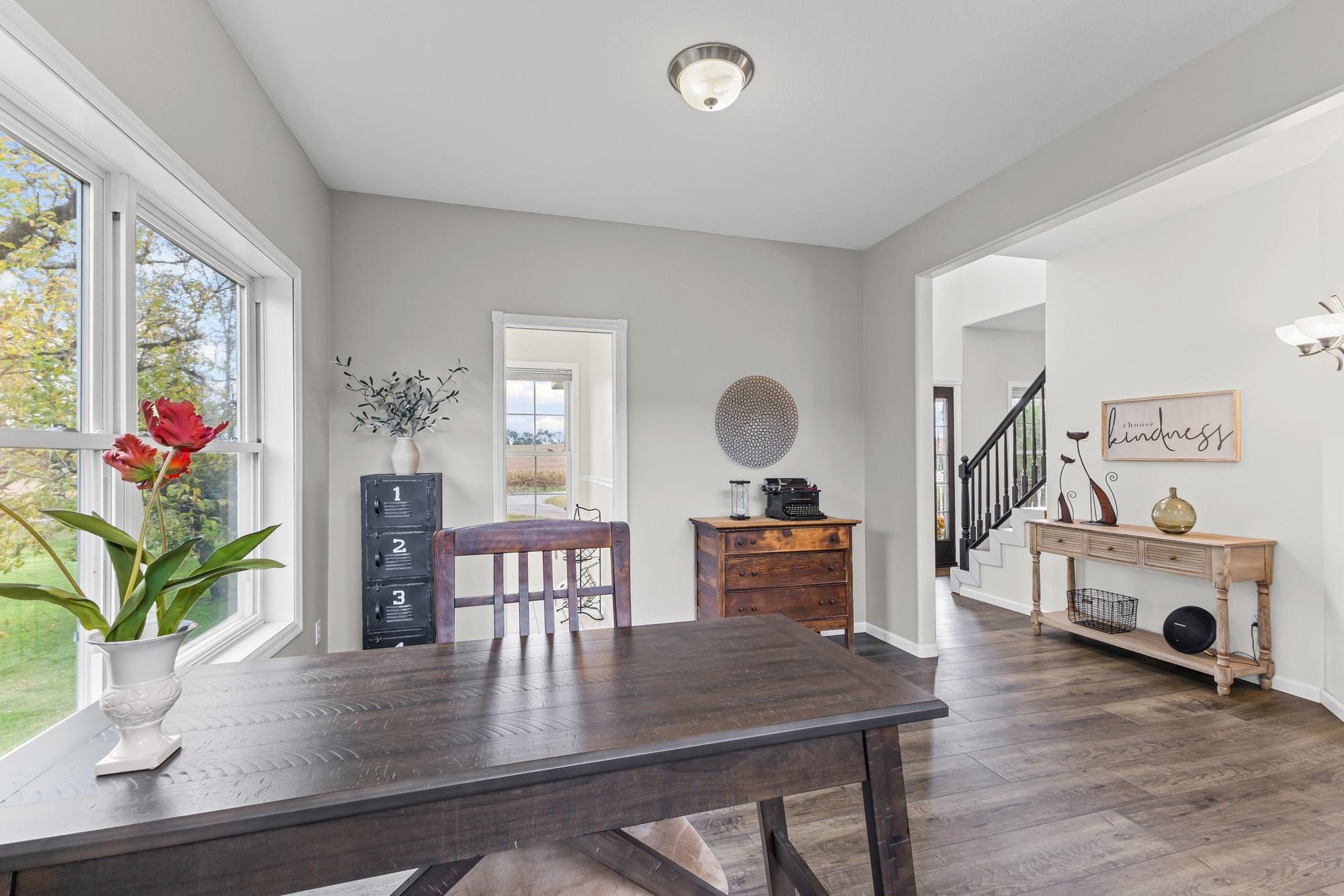 Spacious 4-bed, 4-bath home on a private lot with tons of updates and features! The main level boasts high ceilings, granite kitchen countertops, newer stainless steel appliances (2021), hardwood-style LVP flooring, and a bright sunroom. The massive primary suite offers 500+ sq. ft., his-and-hers closets, and a newly remodeled bath with walk-in shower. The fully finished walkout basement includes a kitchenette, patio access, in-floor heating, and a lower level easily converted to rental space or an in-law suite. Recent updates: new furnace (2025), fresh paint, and new flooring throughout.Outdoor living shines with multiple decks, porches, a sun room and a 30-ft above-ground pool with its own deck. The 3-stall insulated garage adds convenience and storage. With dual heat sources (electric + propane) and beautiful indoor/outdoor spaces, this home blends comfort, function, and recreationperfect for everyday living and entertaining!