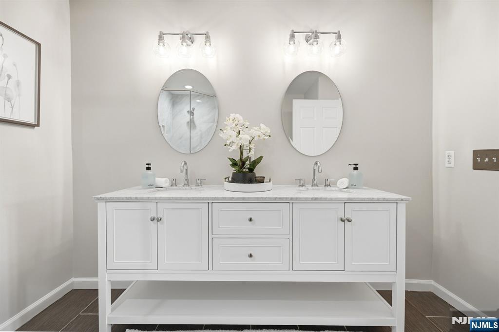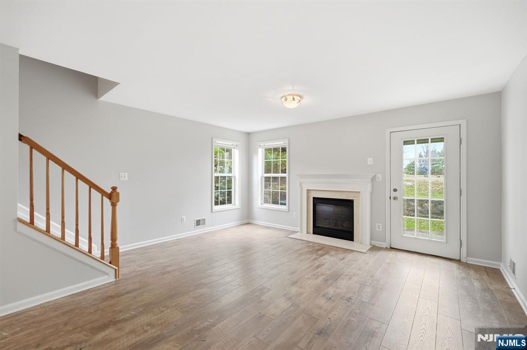 This stunning tri level end unit luxury townhome, located on a cul de sac w a great yard, offers an exceptional blend of modern design and thoughtful renovations throughout. The main living level was completely reimagined by removing all walls to create a true open concept layout, seamlessly connecting the expansive dining area, chef's kitchen, and light filled living room w a gas fireplace and an updated powder room. The kitchen is a true showpiece, featuring white cabinetry and backsplash, quartz countertops, a massive center island with a breakfast peninsula, farmhouse sink, & stainless steel appliances. Upstairs, the massive primary suite features cathedral ceilings, a beautifully spa like bath that was renovated just weeks ago. The brand new vanity with dual sinks, expansive shower with custom glass doors, mirrors, and lighting complete the space. The second bedroom is generously sized w two closets and access to the 2nd updated full bath. The laundry area is conveniently located on this level. The lower level offers a large & flexible space that can function as a bedroom, office, or both, along with a 3rd full bath, garage access, and a walk out to a private patio with an incredible yard that is perfect for grilling and outdoor entertaining. Additional highlights include wood flooring throughout - no carpet, freshly painted, 2 gas fireplaces, a driveway that accommodates two vehicles. A rare opportunity for a beautifully updated end unit townhome. This home won't last!