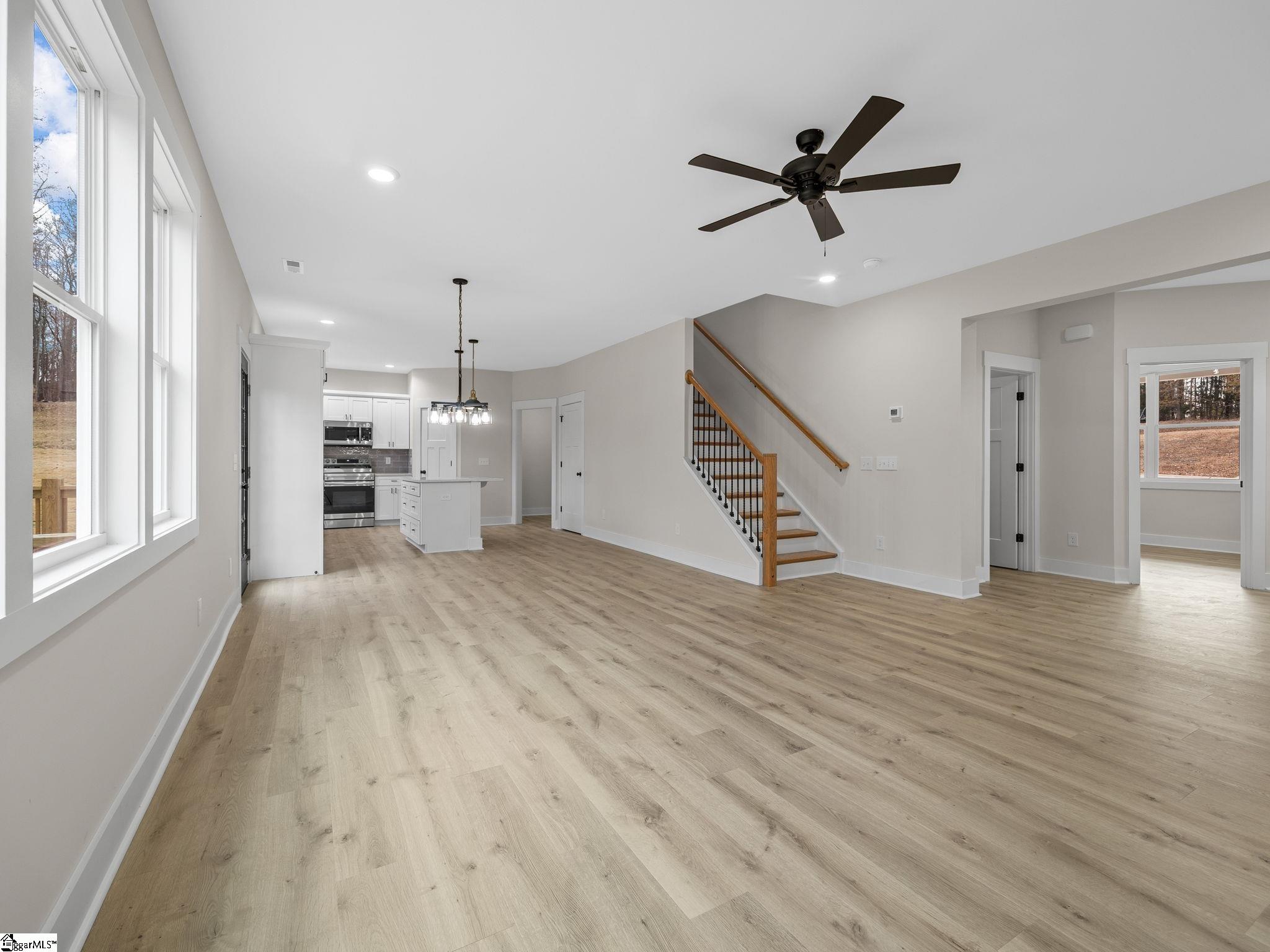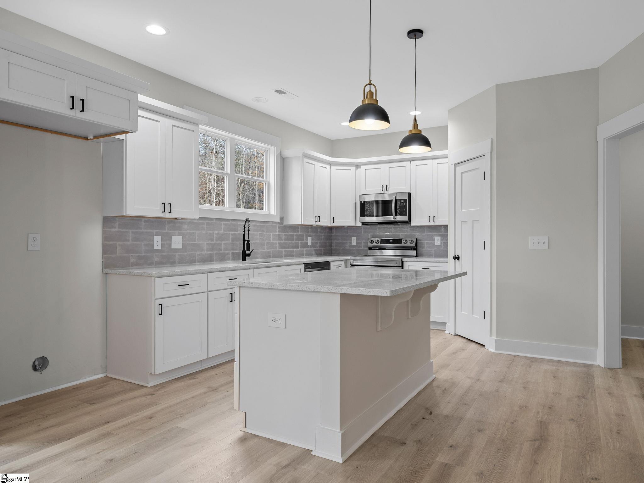 Welcome to country living at its finest! This brand new 4-bedroom, 2.5-bathroom home sits proudly on an expansive .60-acre lot, offering the perfect blend of rural tranquility and modern convenience. The 2,321 square feet of thoughtfully designed living space features an open concept layout with luxury vinyl planks flowing throughout the first floor. The heart of the home showcases gorgeous quartz countertops, stainless steel appliances, and a stylish tiled backsplash. Cozy up by the electric fireplace or step outside to enjoy the spacious back deck and welcoming covered front porch. The modern farmhouse aesthetic shines through quality construction, including Hardie board siding and a finished two-car garage. Upstairs, you'll discover spacious bedrooms and a convenient walk-in laundry room complete with quartz countertops and utility sink. The home features tiled bathroom floors and showers, plus a flexible first-floor room perfect for your lifestyle needs. Located in award-winning Spartanburg District Six Schools area, you'll enjoy peaceful country atmosphere while remaining conveniently close to shopping, dining, and entertainment. The sodded front and back yards complete this exceptional property.