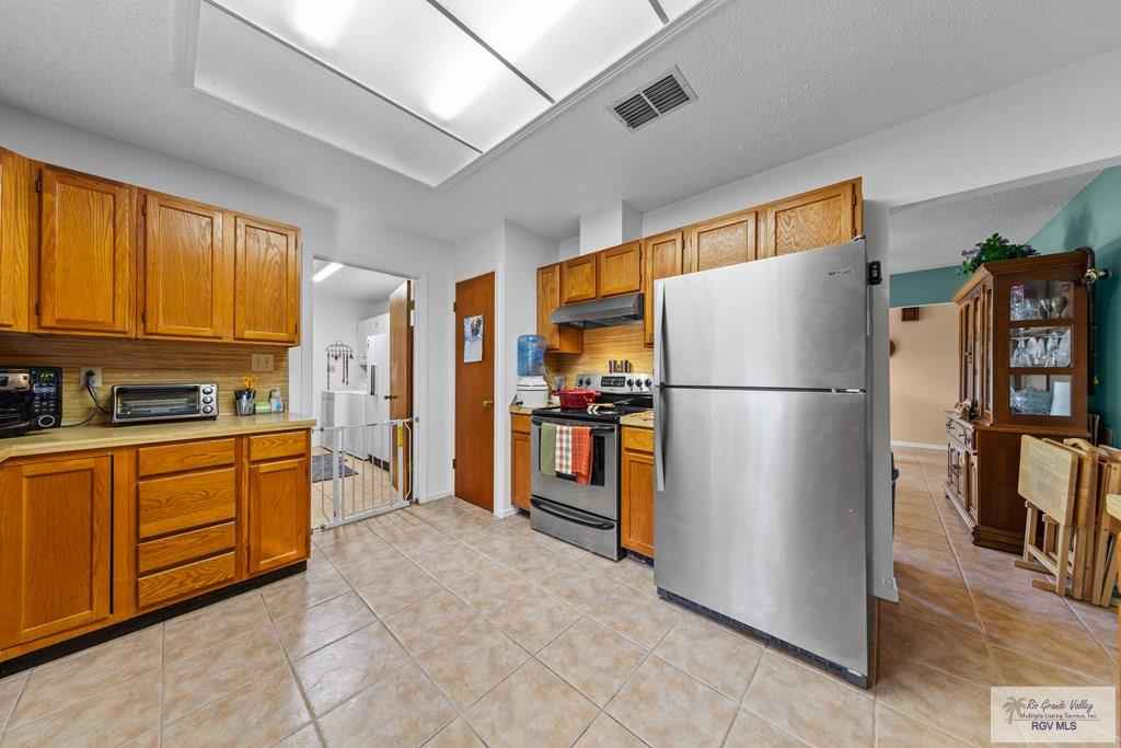 Discover your ideal retreat in this charming, cozy home, situated in a peaceful, established neighborhood with an active neighborhood watch. This delightful property offers three bedrooms, two full baths, and a half bath, along with convenient indoor laundry facilities and a spacious three-car garage. With 1,878 square feet of air-conditioned living space, it is set on a sprawling 1.5 acres. The landscape is enhanced by 38 majestic mesquite trees and two sturdy oak trees. A native garden, designed with drip irrigation and a reliable pump, attracts local wildlife. After a day of gardening, indulge in the serenity of the newly resurfaced sparkling pool. Enjoy peace of mind with a roof that's approximately three years old and a brand-new central air system installed in 2024. This home comes complete with all kitchen appliances, a second refrigerator and a washer and dryer. Make your appointment today