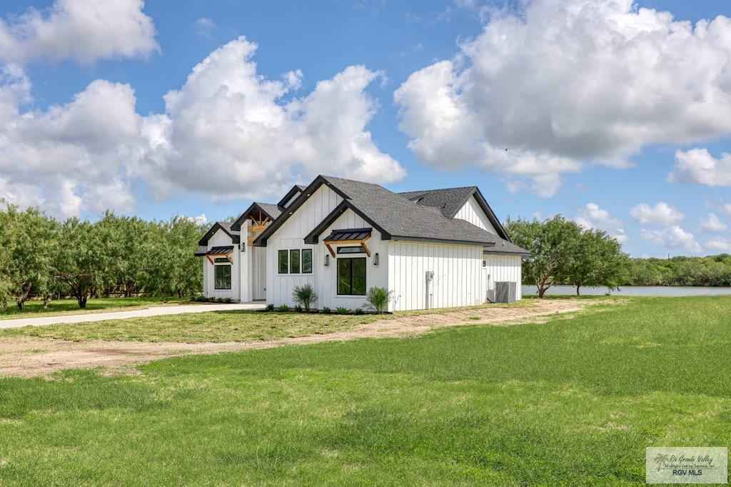 Gorgeous new waterfront home located in the prestigious Heron Cove Subdivision. This home will captivate you the moment you enter with spectacular water views from almost every room in the house. Its open floor plan is perfect for entertaining with a gourmet kitchen and large center island. The primary suite has a spacious walk in closet with many built-ins a luxurious bath with oversized shower and separate vanities. The other side of the home has two additional spacious bedrooms a full bath and a half bath for guests. The home sits on a half an acre lot and has enough water frontage to build a fishing pier/boat dock. Conveniently located near public boat ramp, restaurant and County Park. As per seller this property has approximately 80 feet of water frontage. Lot next door is also being sold MLS# 29771059.