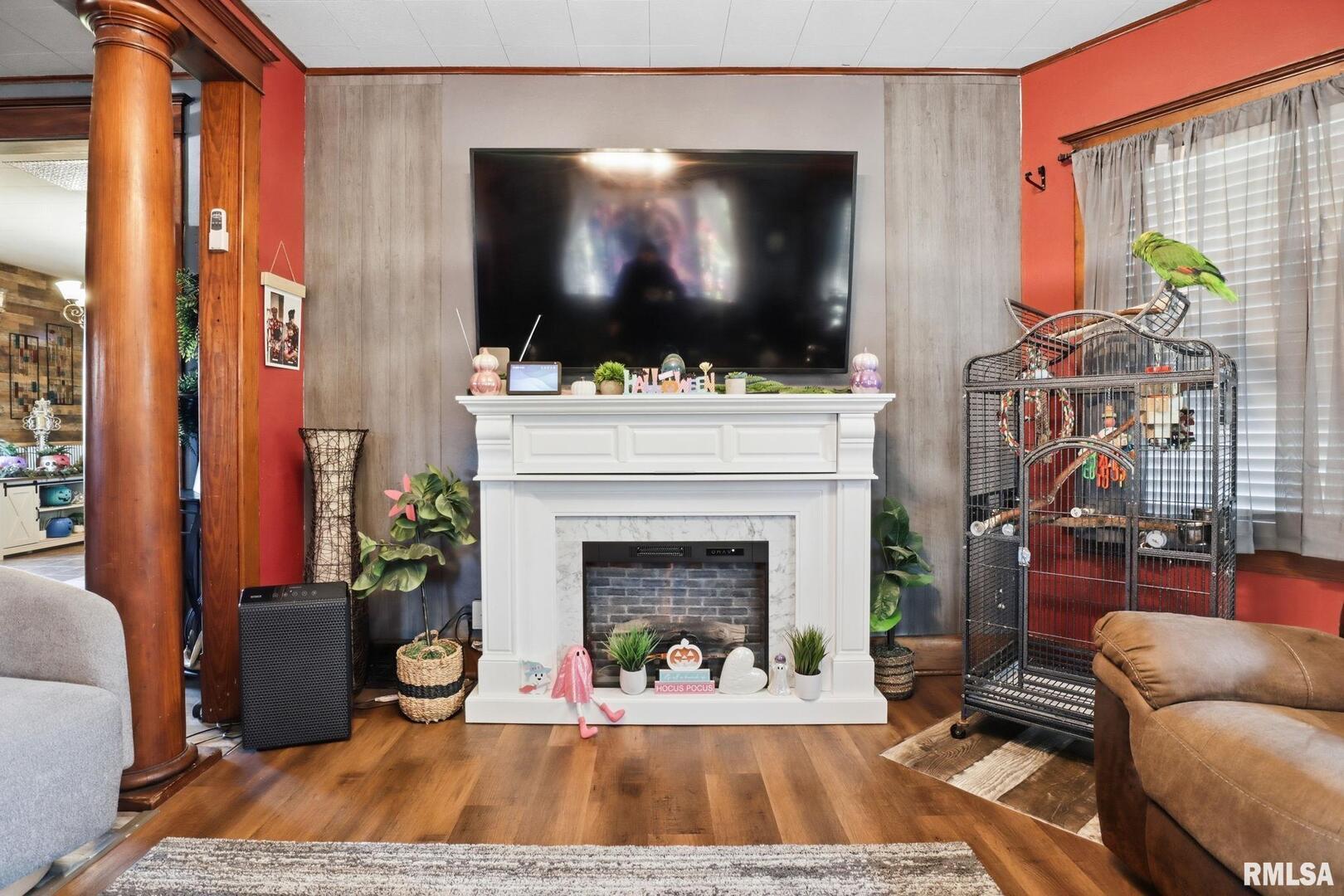 Charming 4-bedroom, 2-bath home in the heart of Woodhull featuring beautiful original woodwork, a grand staircase, and spacious living and dining areas. This 1920s home blends timeless character with modern updates, including newer windows, roof, siding, furnace, A/C, and a whole-house generator. A real wood-burning fireplace adds cozy appeal, while the landscaped yard showcases a tranquil pond, mature plantings, and an above-ground pool. Enjoy outdoor living on the open front porch or private paved rear patio, plus a convenient 2.5-car garage for extra storage. The basement includes a non-conforming room, offering additional flexible space.
