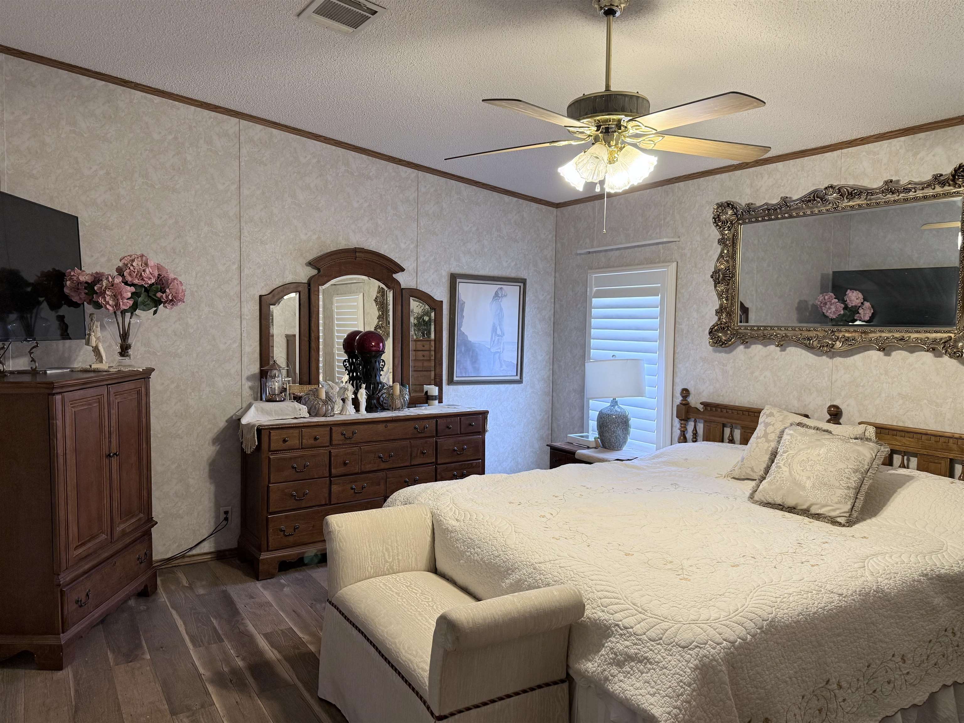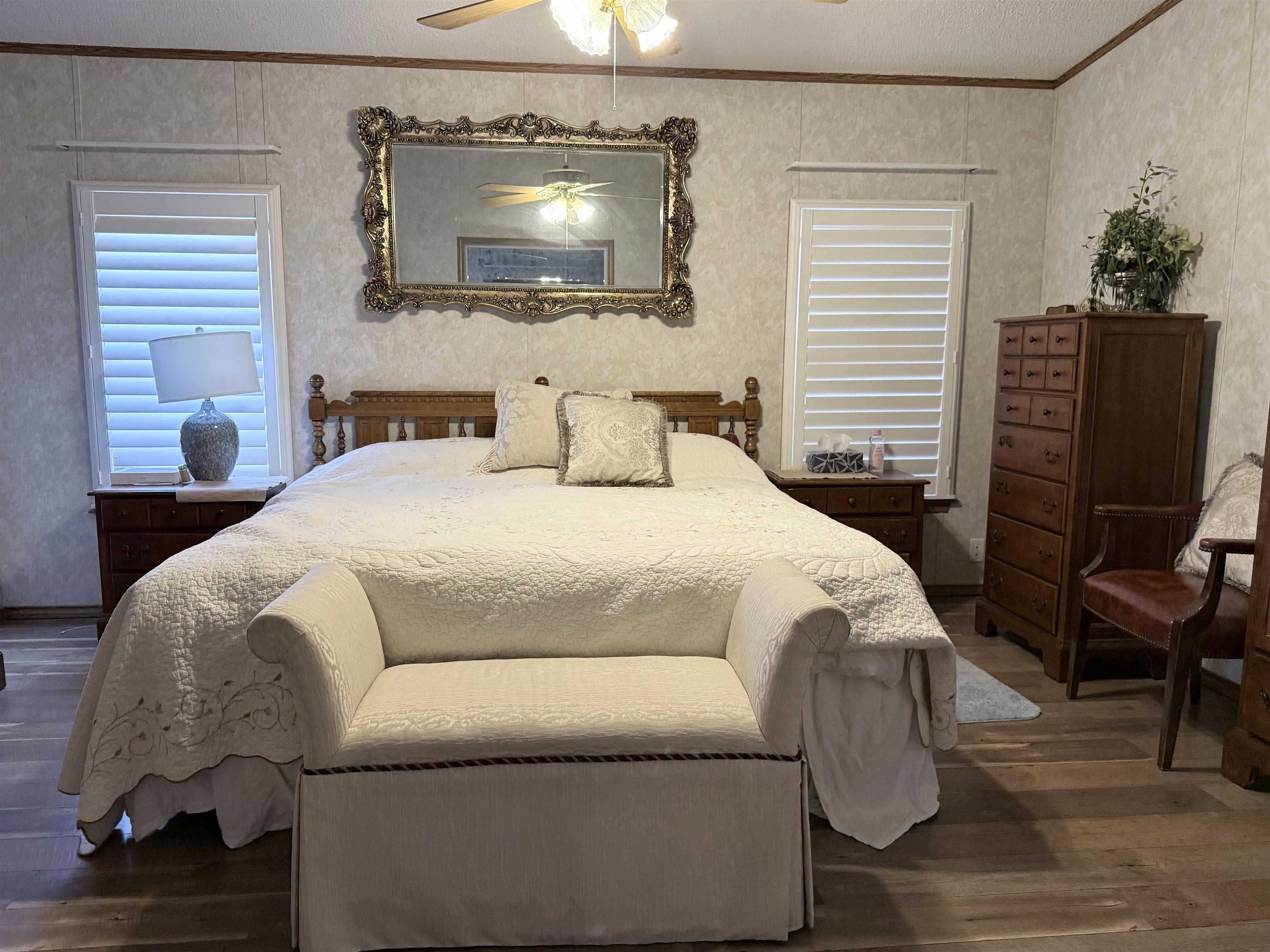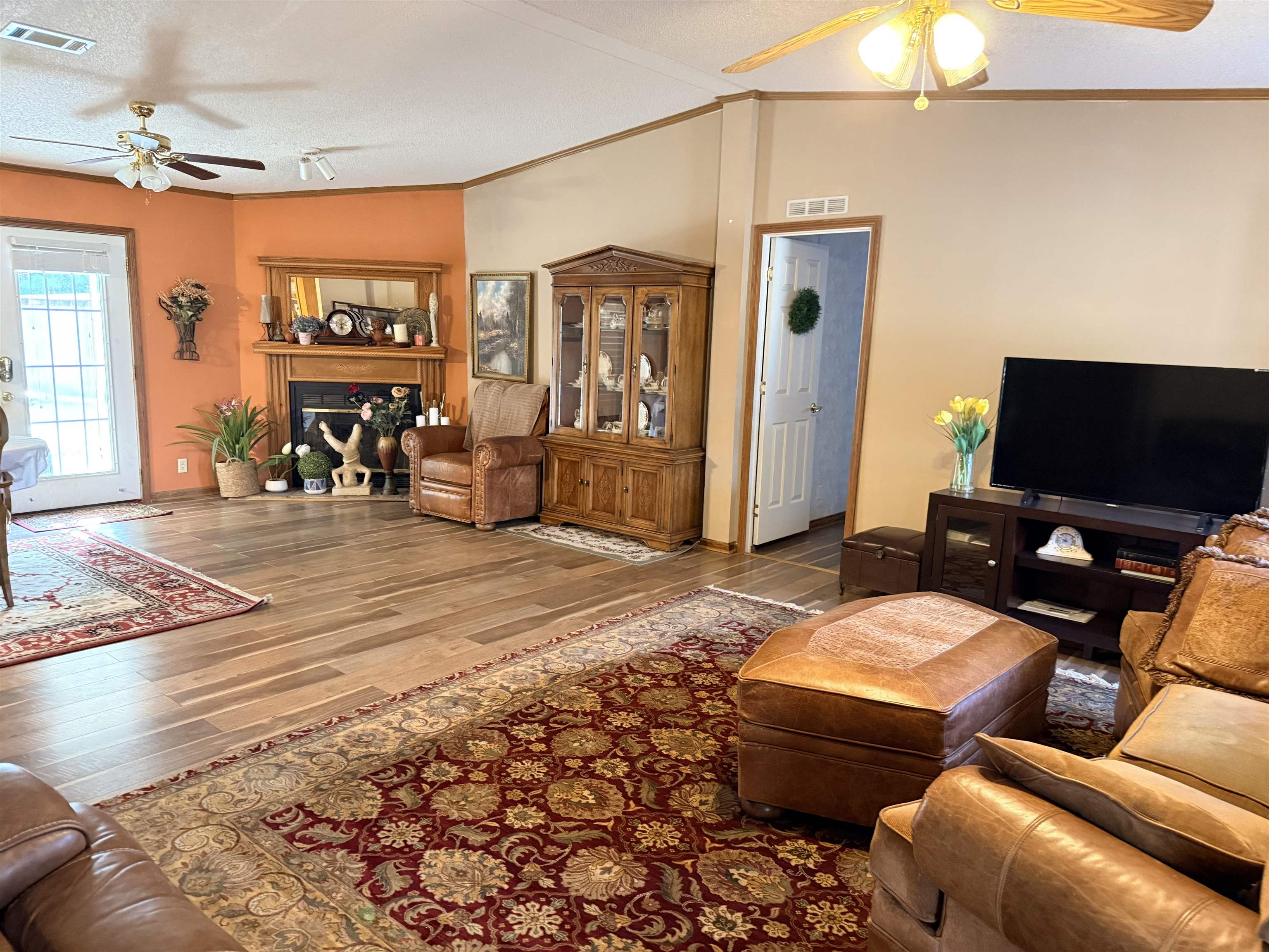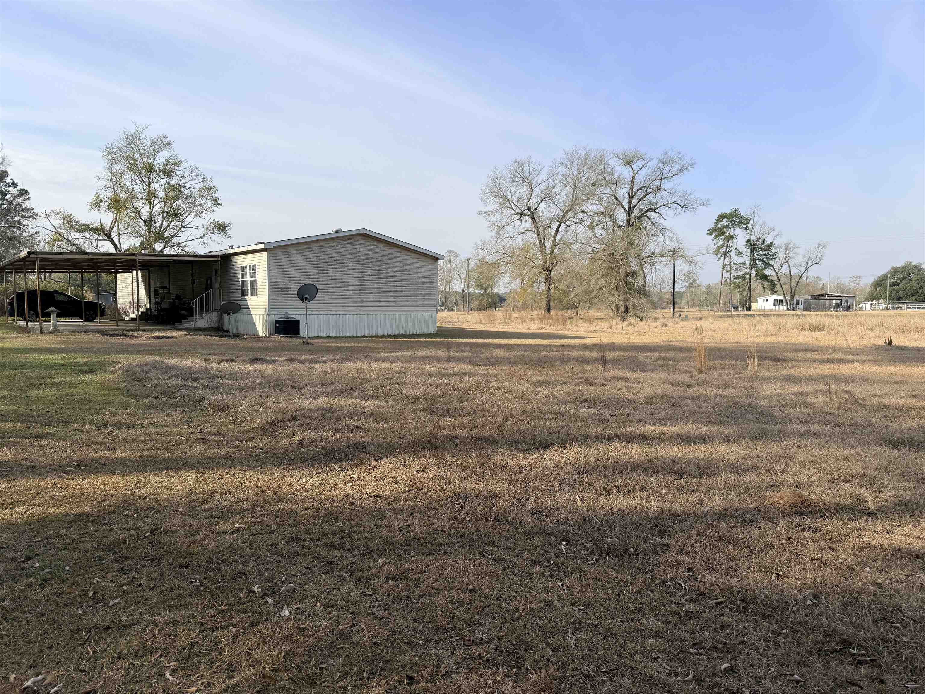 Welcome to this spacious 4-bedroom, 3 full-bath double-wide manufactured home, perfectly situated on approximately 3.43 peaceful acres. This home offers an open-concept layout designed for both comfort and entertaining, featuring a cozy fireplace that anchors the living space. The large kitchen and dining combo provides plenty of cabinetry for storage, along with a workable island ideal for meal prep and gathering. A generous walk-in pantry adds even more convenience. The well-designed floor plan offers ample bedroom space and full baths to accommodate family or guests with ease. Enjoy the privacy of a long driveway leading to the home, creating quiet a retreat away from the road. The property is serviced by a private well and offers plenty of room to enjoy outdoor living, gardening, or future expansion. This property combines space, functionality and country charm.