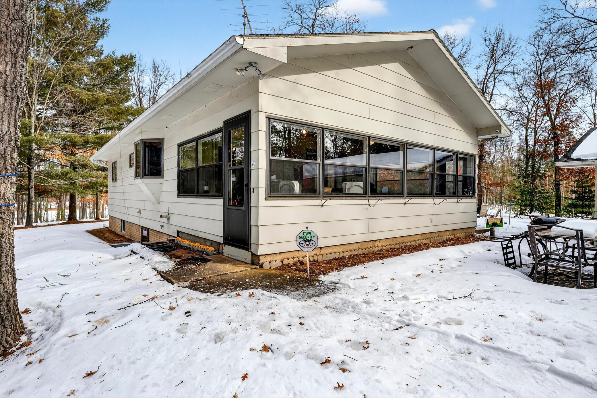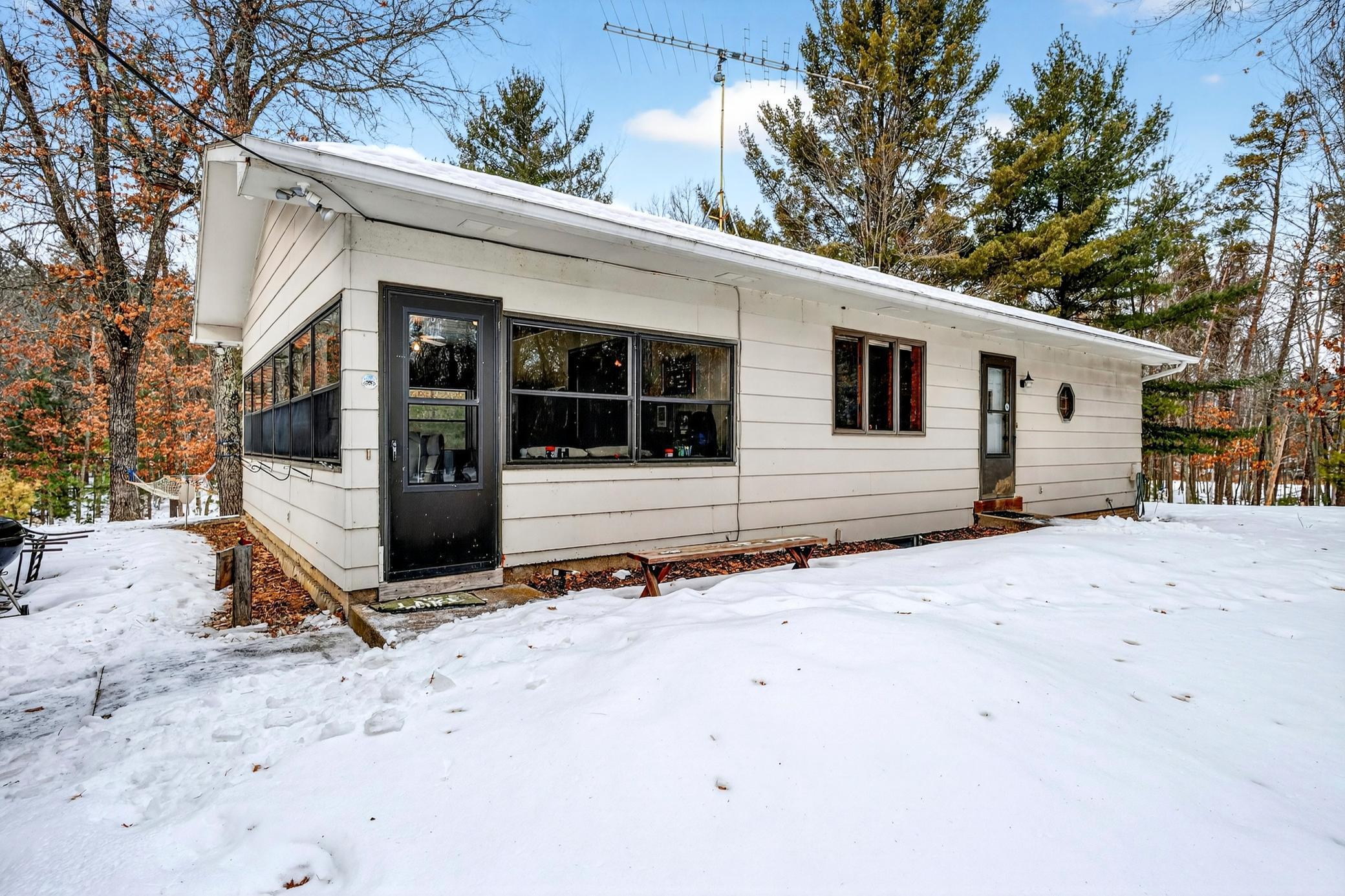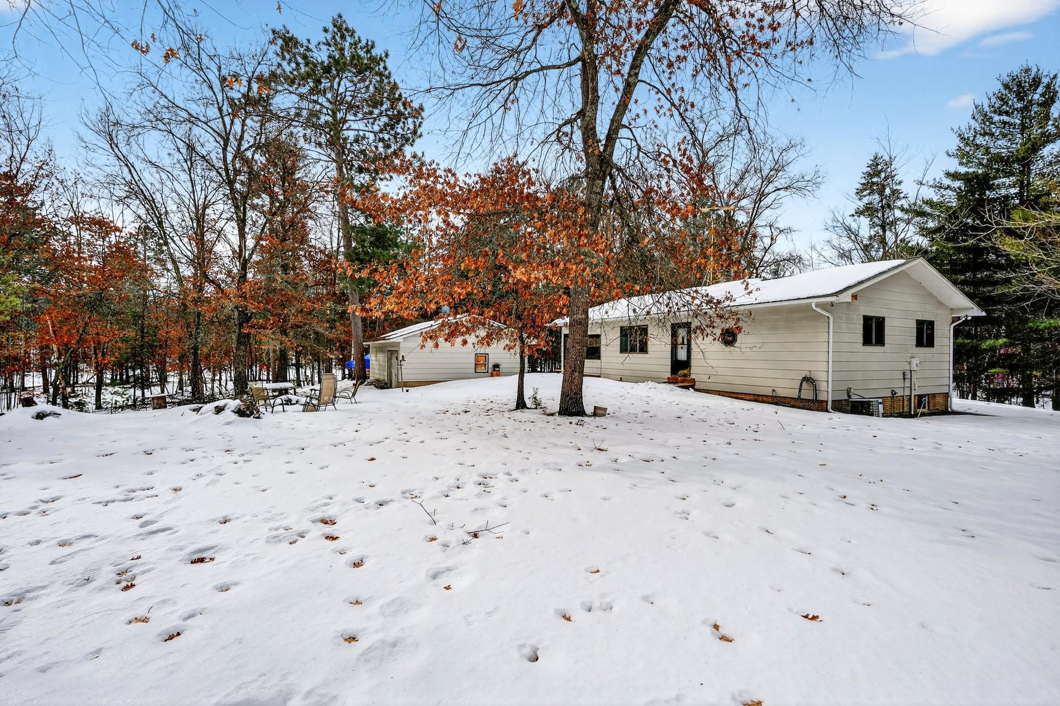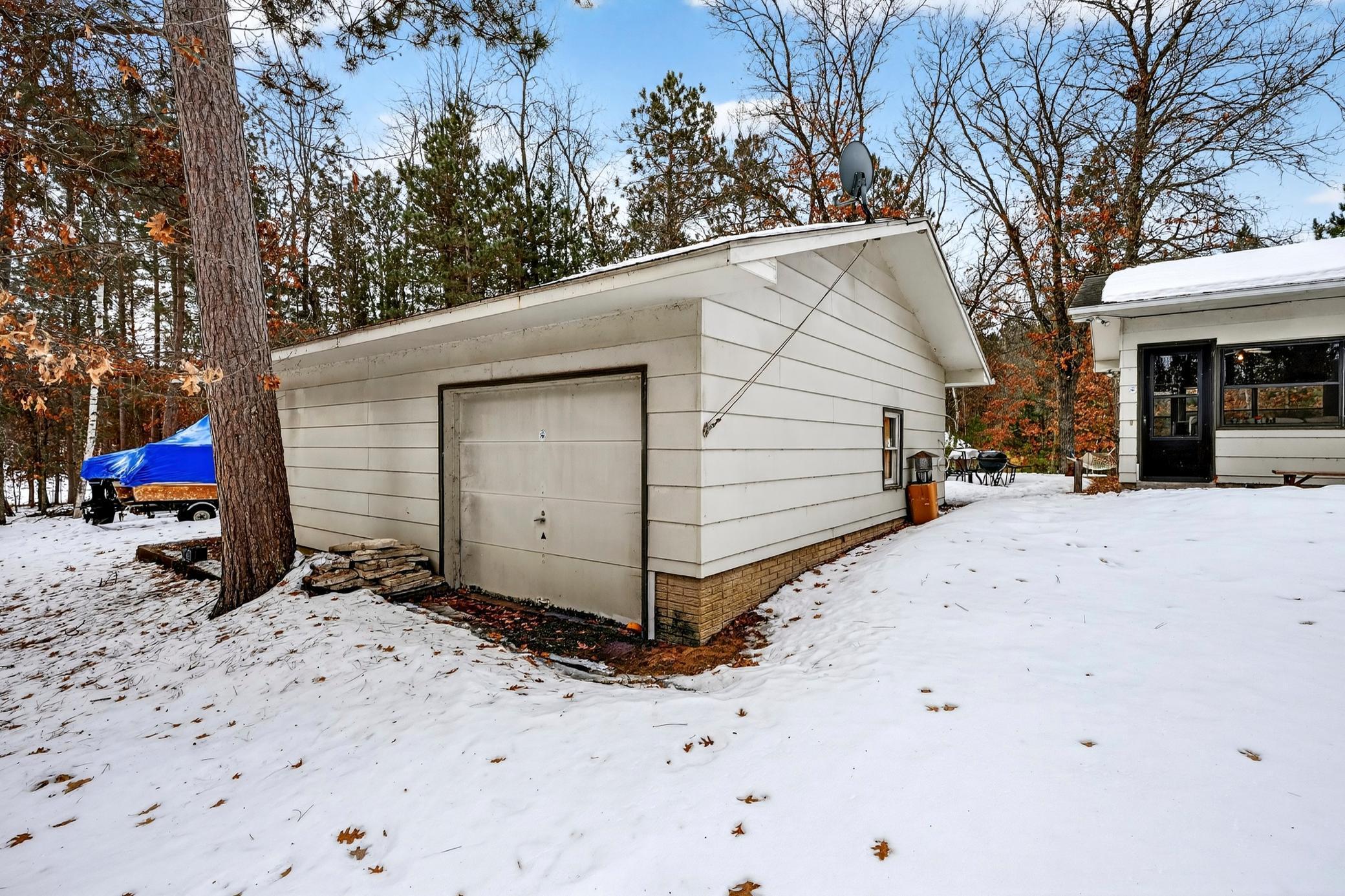 Lodged at the end of cul-de-sac on over an acre, centered within towering pines and mature oaks this enchanting four-season cabin/home is where rustic charm meets modern flair. Your personal haven awaits, with a remarkable remodel that whispers tranquility. As guests arrive, they are greeted by a window-to-window seasonal porchperfect for dining, card games, or lively storytelling sessions. Inside, the open kitchen with a breakfast bar flows into a living area where a cozy wood burner beckons. The main floor boasts two inviting bedrooms and a full bath with laundry options, while the lower level surprises with two family areas, an extra bedroom, and bath for visiting guests. Just a few steps away, the detached garage features dual overhead doors, capable of sheltering boats, UTV/ATV, golf vehicles or storing summer toys. Here, nature and nurture blend seamlessly, offering east Cadotte beach a couple miles away. storing canoe & kayaks on the lakeside racks or drop your boat at the launch. As a Voyager Village member enjoy an 18-hole golf course, tennis & Pickle ball, and full clubhouse featuring indoor swimming pool, sauna and exercise area. A great escape!