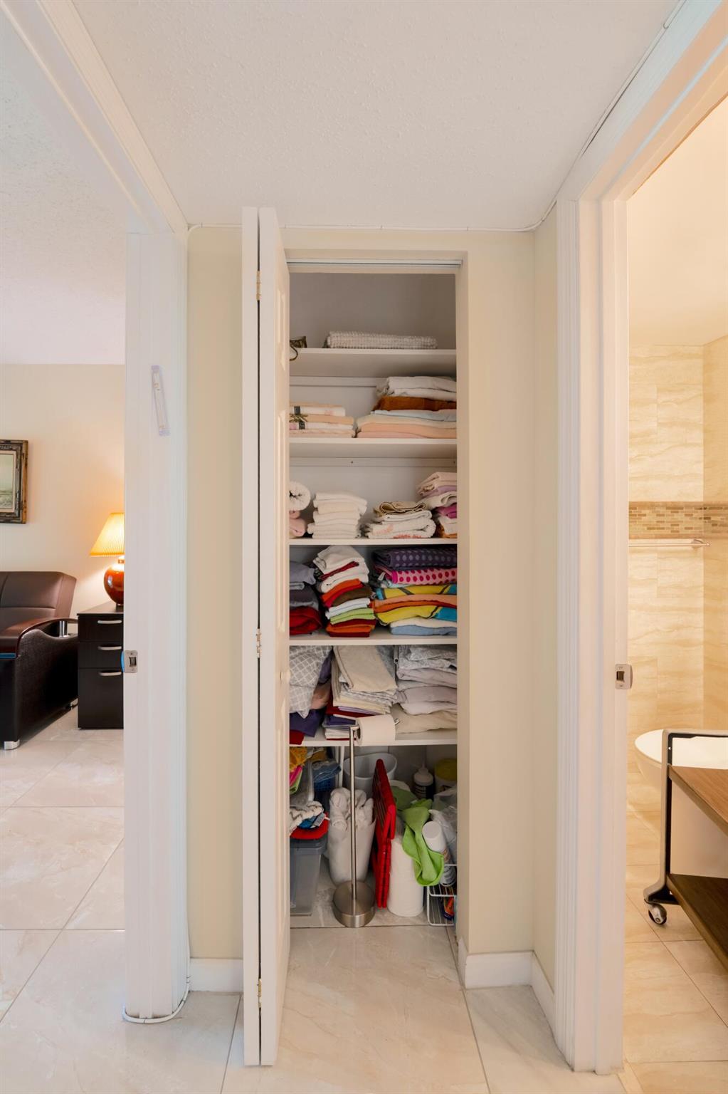 Welcome to resort style living with this Beautiful turnkey 2BR/2BA condo in Grantham E, a friendly 55+ community in Century Village. The kitchen boasts granite counters, tile backsplash, and stainless appliances that flow into the dining and living areas. Both bathrooms feature granite vanities and step-in showers.(water incl) Spacious bedrooms offer great storage, and the enclosed Florida room featuring a custom california closet for added storage space overlooks peaceful gardens. Tile flooring throughout, impact front door, and roll-down shutters add convenience and peace of mind. Steps from the elevator, laundry, and storage. Century Village provides 24-hour security plus pools, clubhouse, theater, fitness center, tennis, pickleball, and more--minutes from shopping, dining, & the beach!
