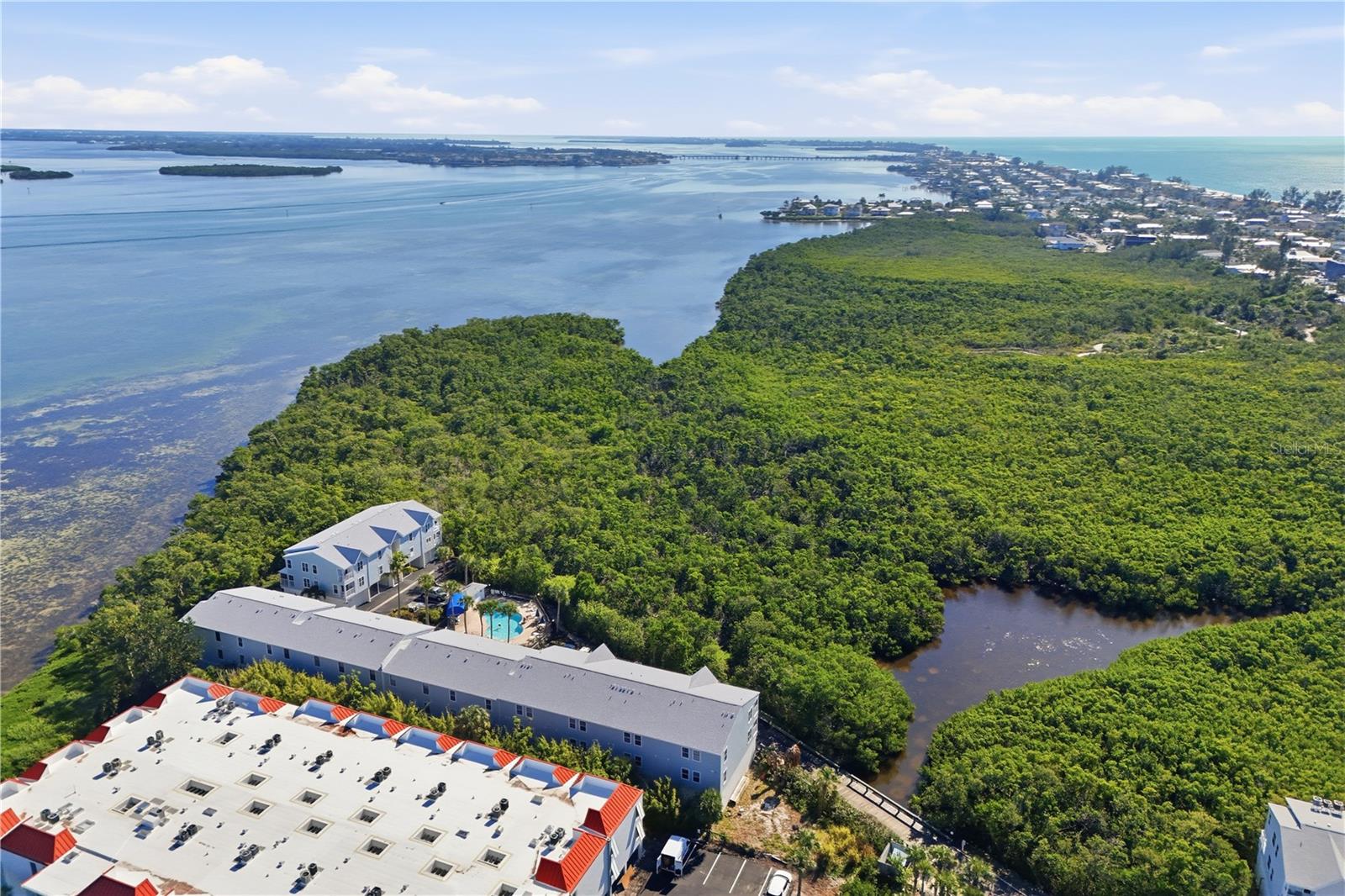 Step into effortless island living with this beautifully updated turnkey 2BD/2BA retreat in the heart of Sandy Pointe, a serene mangrove lined community. Tucked away just beyond a private wooden bridge, this elevated condo welcomes you with an open floor plan that seamlessly blends living and dining spaces. Recent updates add fresh style and comfort throughout, making it move in ready from day one. Interior laundry is added for comfort and convenience. Savor your morning coffee or evening breeze on the screened lanai overlooking the inviting heated pool and peaceful estuary. A 2 car tandem carport and extra storage make parking and stashing beach gear a breeze. The communitys weekly vacation rental policy adds income potential. Just a short stroll brings you to shopping, dining, and sandy beaches, and a nearby trolley stop makes exploring the island easy. This is island life at its best, vibrant, convenient, and fully refreshed for your enjoyment.