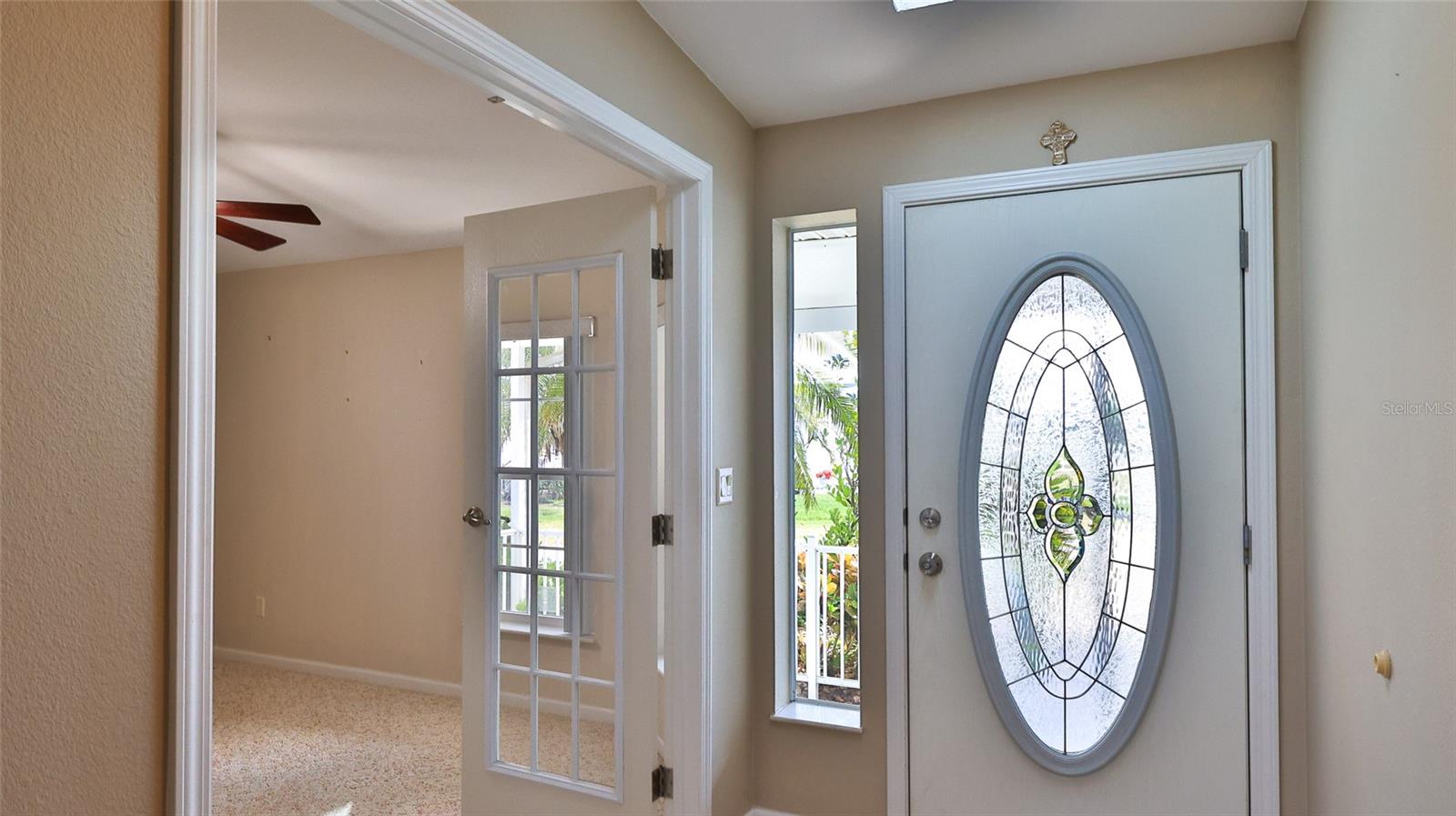 This direct waterfront hidden gem is located on the Indian River Intracoastal Waterway. Enjoy gorgeous sunrises, wonderful sea breezes and watch the boats cruise while sipping your morning coffee. Beautiful three-bedroom, two bath home has it all, an open floor plan, two car garage with an electric RV hookup, inside laundry room, large back screened patio with seasonal vinyl windows, vaulted ceilings and more. For those who love to cook, the kitchen has ample amount of counter space, recently updated appliances, and a spacious pantry. The primary bedroom opens onto the screened back porch and primary bath features a walk-in shower, jetted garden tub, double sinks and a large linen closet. Updates include hot water heater (2025), roof (2019), hvac unit (2020) and appliances (2024). Not a lot rental community, own your own land. Lighthouse Cove is a gated community where golf carts are a second means of transportation. Enjoy a large, heated swimming pool, recently renovated clubhouse, newly resurfaced pickleball courts, shuffleboard, boat launch for shallow water boats, recreational picnic area on the river and a fishing pier. It is a boating/fishing/shrimping paradise located a short distance from the Mosquito Lagoon. Watch the rockets launch from the fishing pier. Dont miss out on a great opportunity to live in Paradise. A must see! All measurements approximate! Information deemed accurate but not guaranteed.