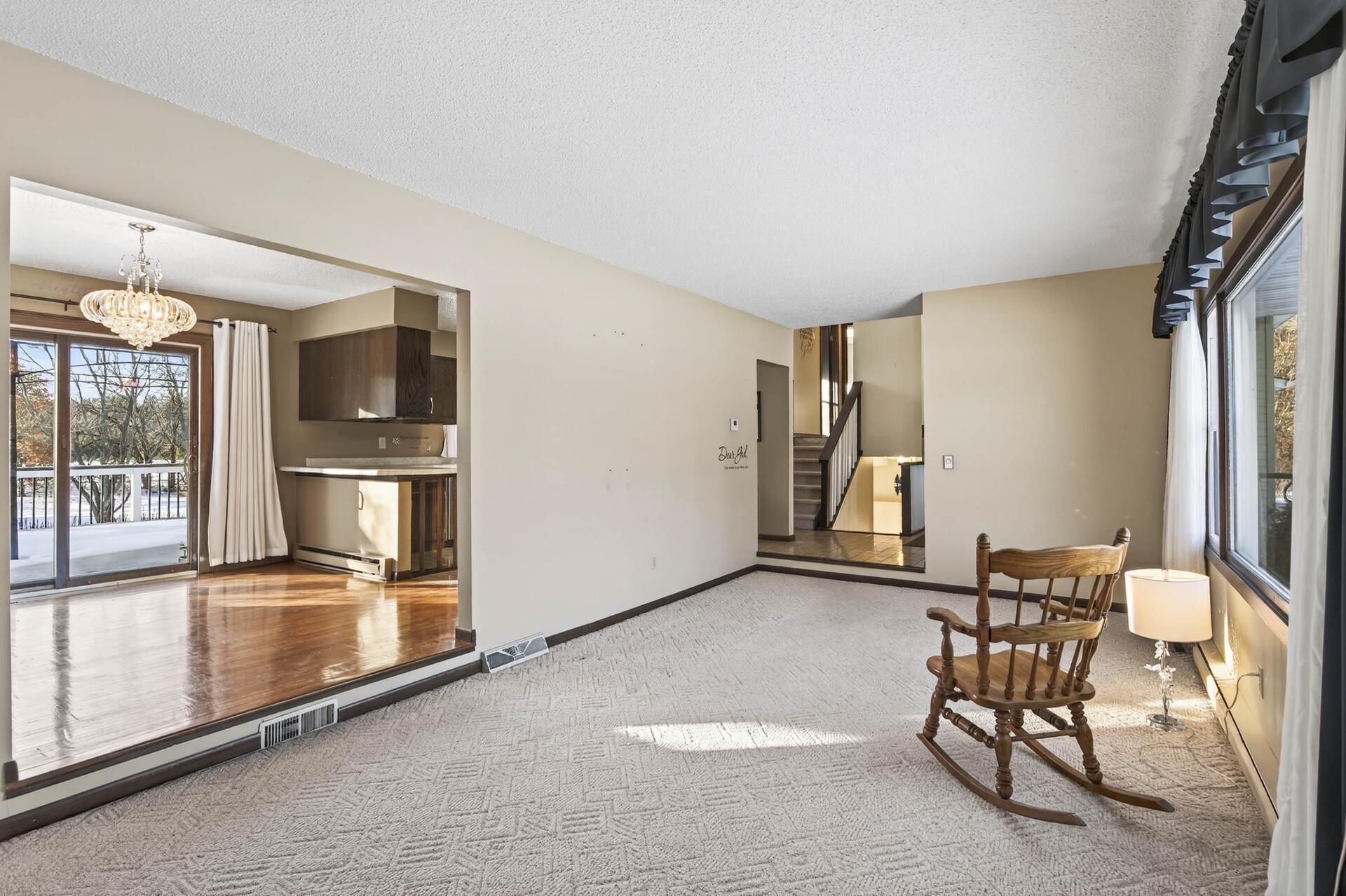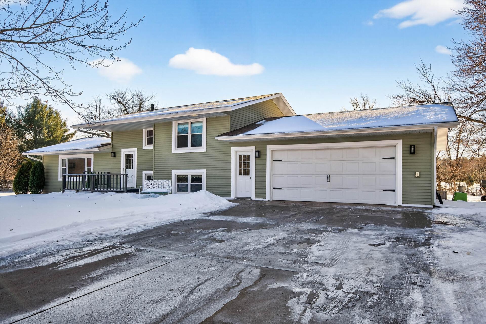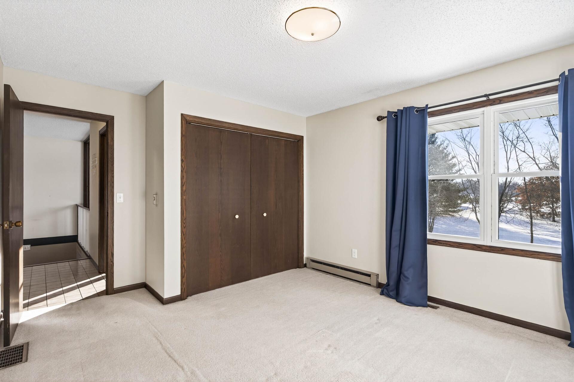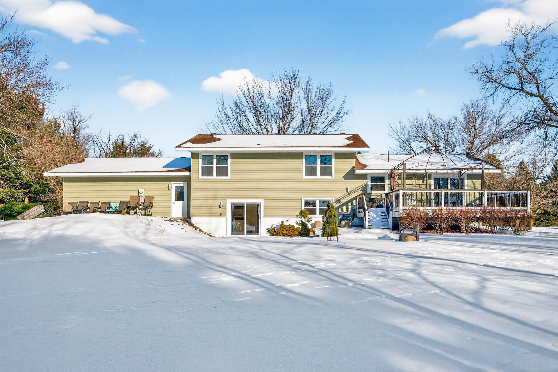 First time on the market, this well-maintained home offers space, privacy, and convenience on a scenic corner acreage lot backing to a tree farm nursery. The fully finished layout includes 4 bedrooms and 2 baths, starting with a spacious foyer and ample storage that opens to a bright living room with oversized windows. The kitchen features updated stainless steel appliances, generous counter space, and plenty of storageideal for everyday living. Three bedrooms and a full bath are located on the upper level. The walkout level includes a large family room, laundry room with utility sink, and a bathperfect for entertaining. The lower level provides an additional bedroom and abundant storage space. Enjoy peaceful mornings and relaxing evenings on the expansive deck overlooking serene views. Conveniently located with easy access to Hwy 65 and within walking distance to Lake George Regional Park and local amenities. Major updates include the furnace, AC, roof, and more. Add your personal touches, and youll be ready to call this home.