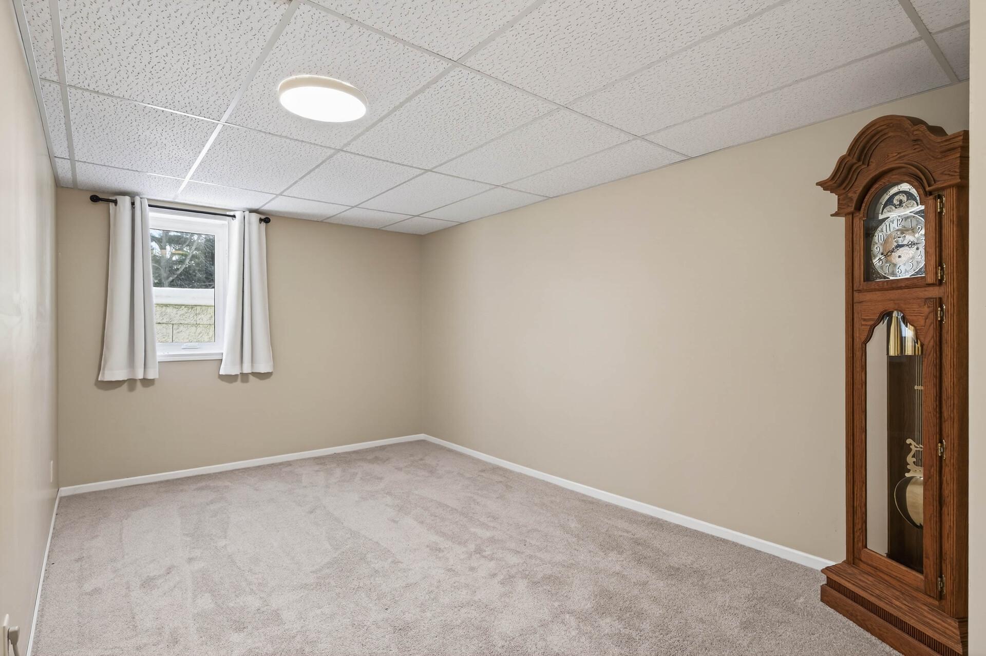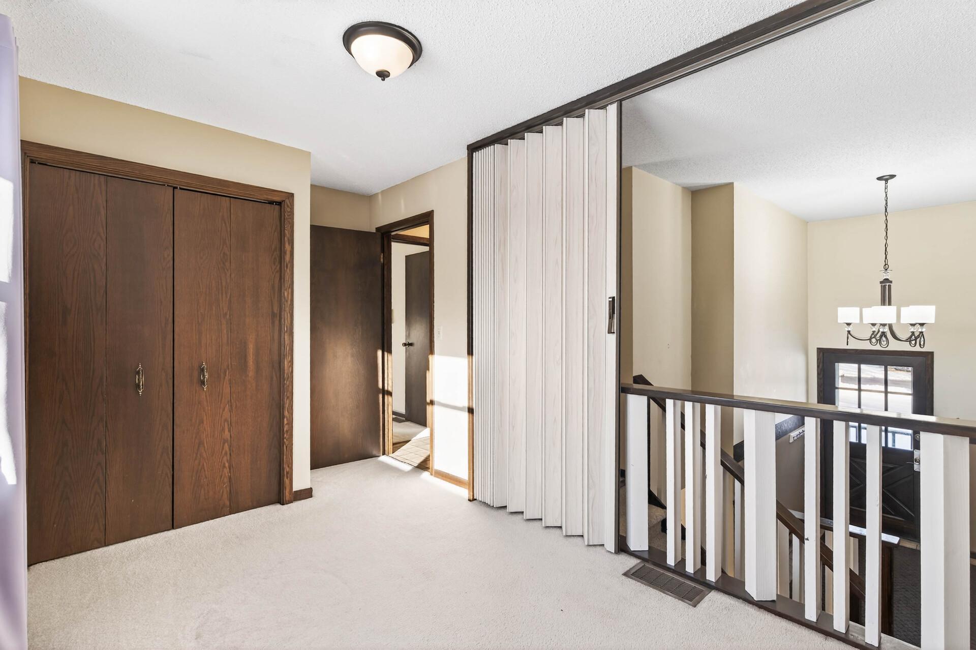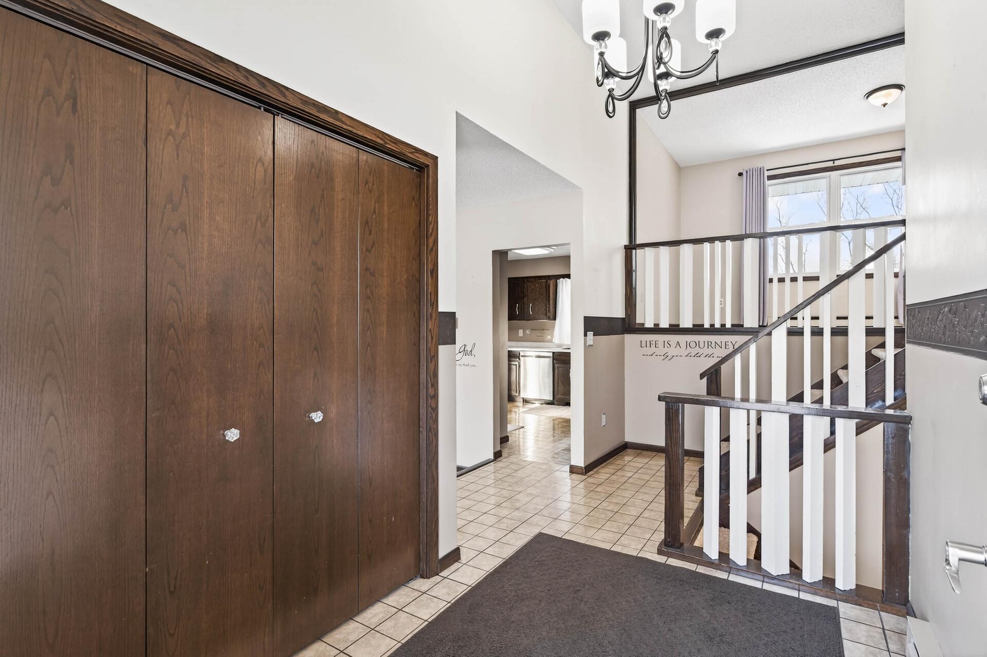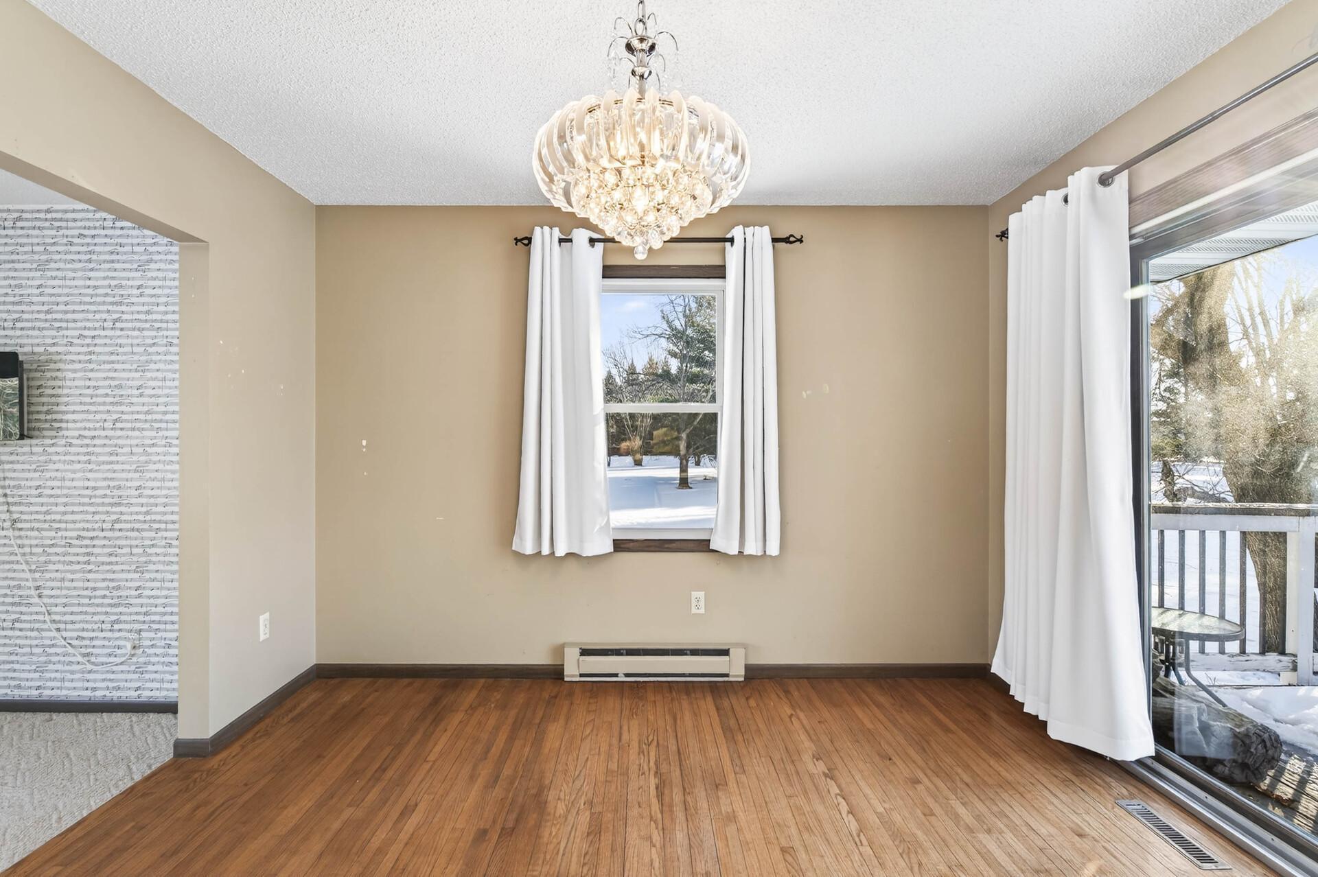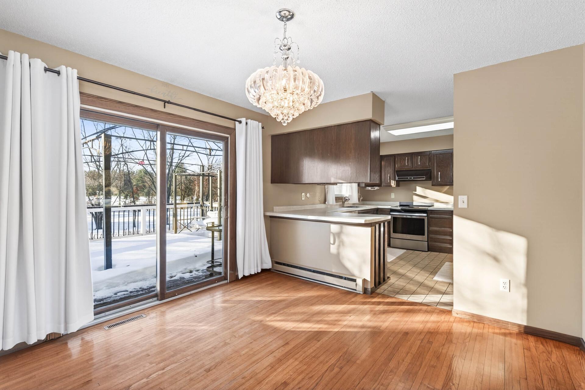 First time on the market, this well-maintained home offers space, privacy, and convenience on a scenic corner acreage lot backing to a tree farm nursery. The fully finished layout includes 4 bedrooms and 2 baths, starting with a spacious foyer and ample storage that opens to a bright living room with oversized windows. The kitchen features updated stainless steel appliances, generous counter space, and plenty of storageideal for everyday living. Three bedrooms and a full bath are located on the upper level. The walkout level includes a large family room, laundry room with utility sink, and a bathperfect for entertaining. The lower level provides an additional bedroom and abundant storage space. Enjoy peaceful mornings and relaxing evenings on the expansive deck overlooking serene views. Conveniently located with easy access to Hwy 65 and within walking distance to Lake George Regional Park and local amenities. Major updates include the furnace, AC, roof, and more. Add your personal touches, and youll be ready to call this home.
