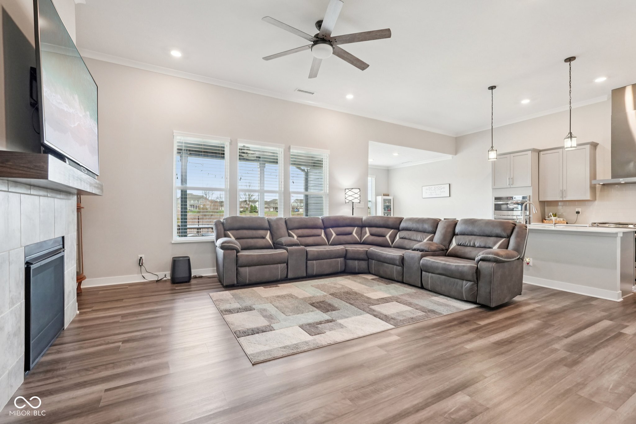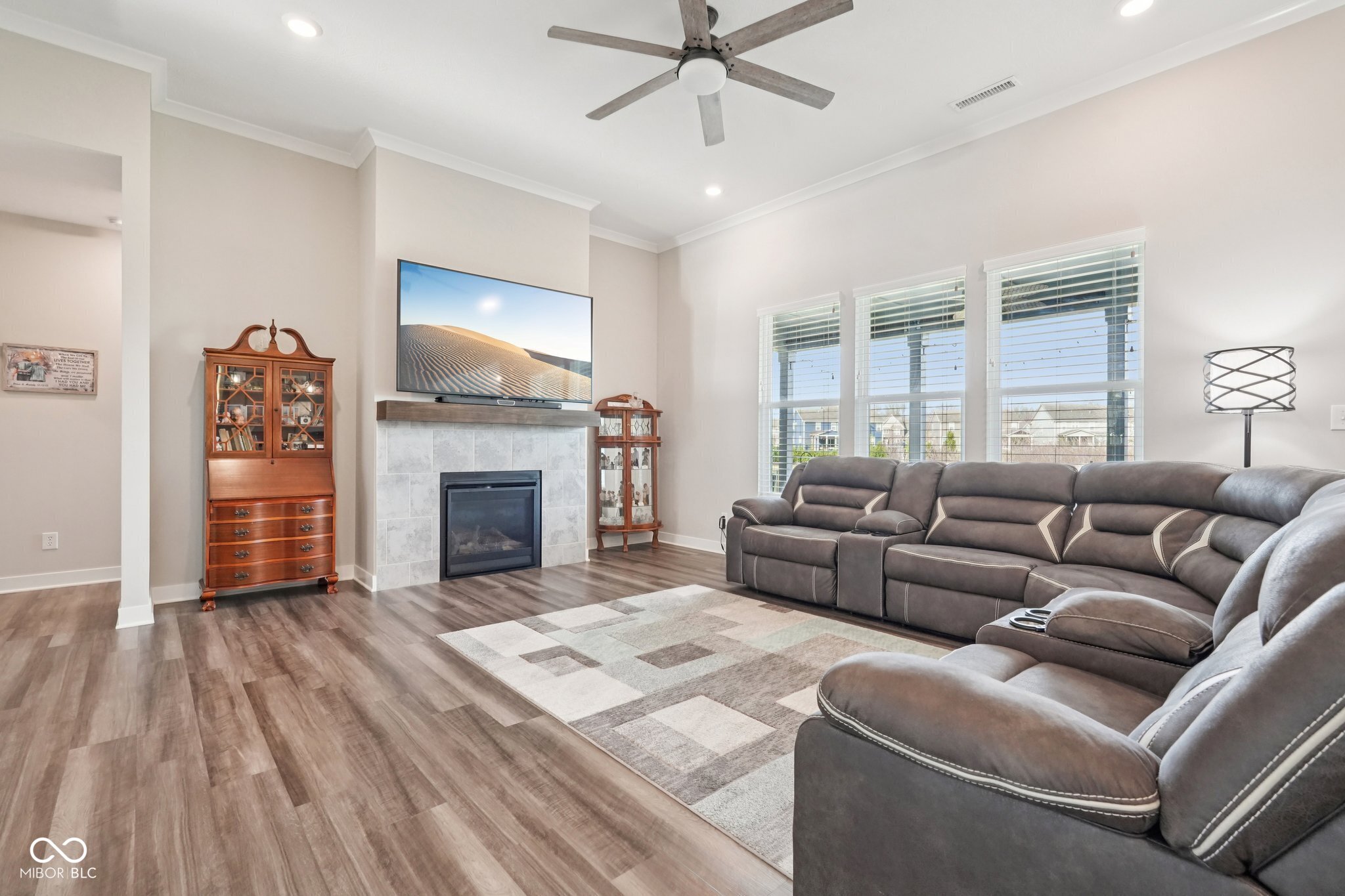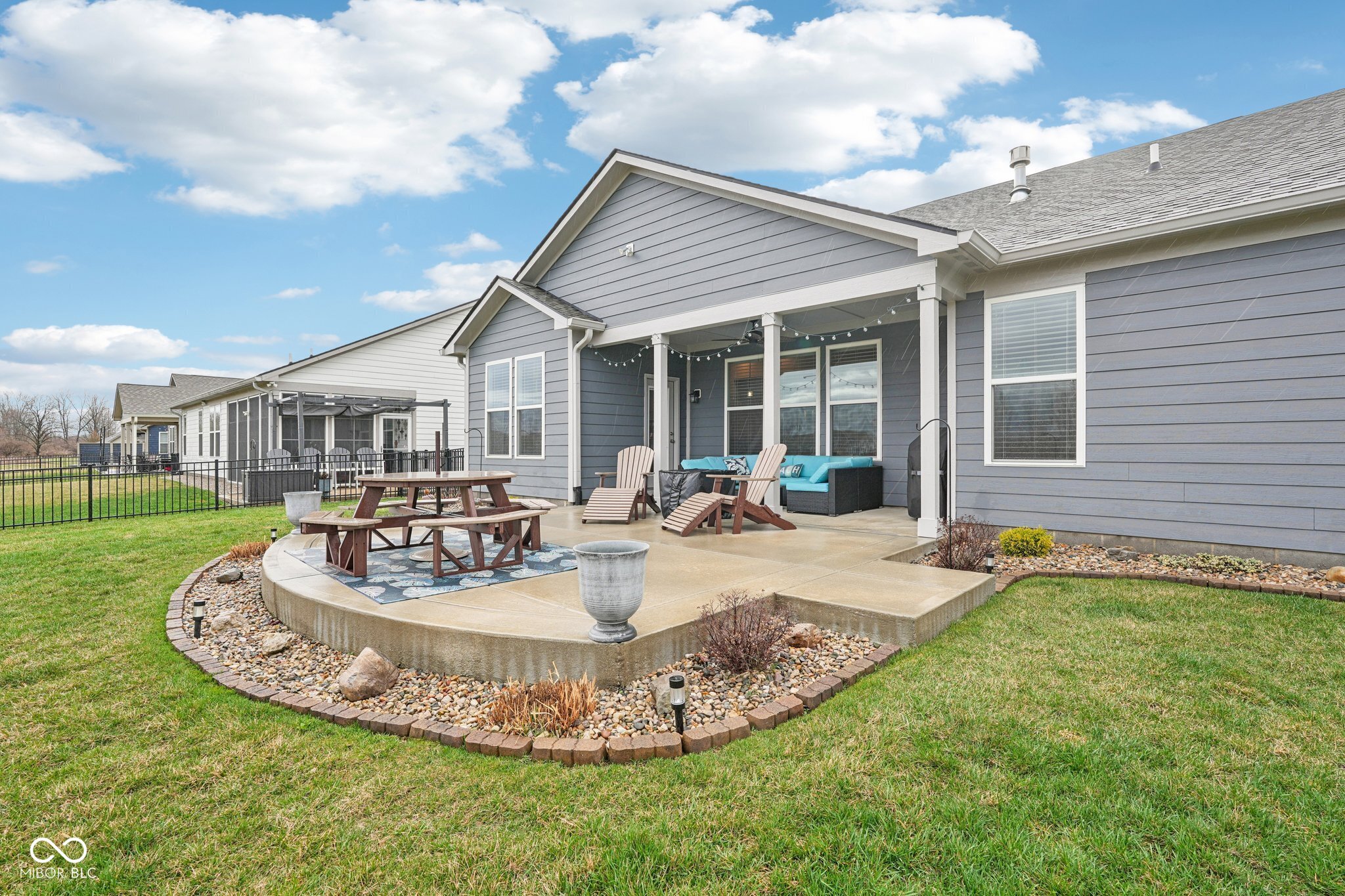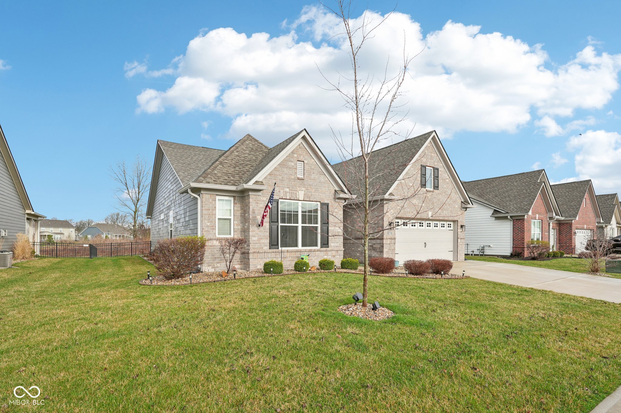 Welcome home to this beautifully upgraded 3-bedroom, 2-bath ranch located in a desirable low-maintenance Center Grove community. Perfectly positioned on a premium lot backing protected land, this home offers peaceful views and exceptional privacy with no rear neighbors. Inside, the open and inviting layout features abundant builder upgrades throughout. The spacious living area is highlighted by 11-foot ceilings with crown molding and a cozy gas fireplace, creating the perfect space to relax or entertain. The thoughtfully designed floor plan flows effortlessly into the gourmet kitchen and dining area, making everyday living both comfortable and functional. Step outside to your fully fenced backyard, where you'll find a large concrete patio ideal for outdoor dining, entertaining, or simply enjoying the tranquil natural surroundings and views. With three spacious bedrooms, two full bathrooms, and the ease of single-level living, this home combines style, convenience, and low-maintenance living in a highly desirable setting. Don't miss your opportunity to own a move-in-ready home with premium upgrades and one of the best lots in the community.