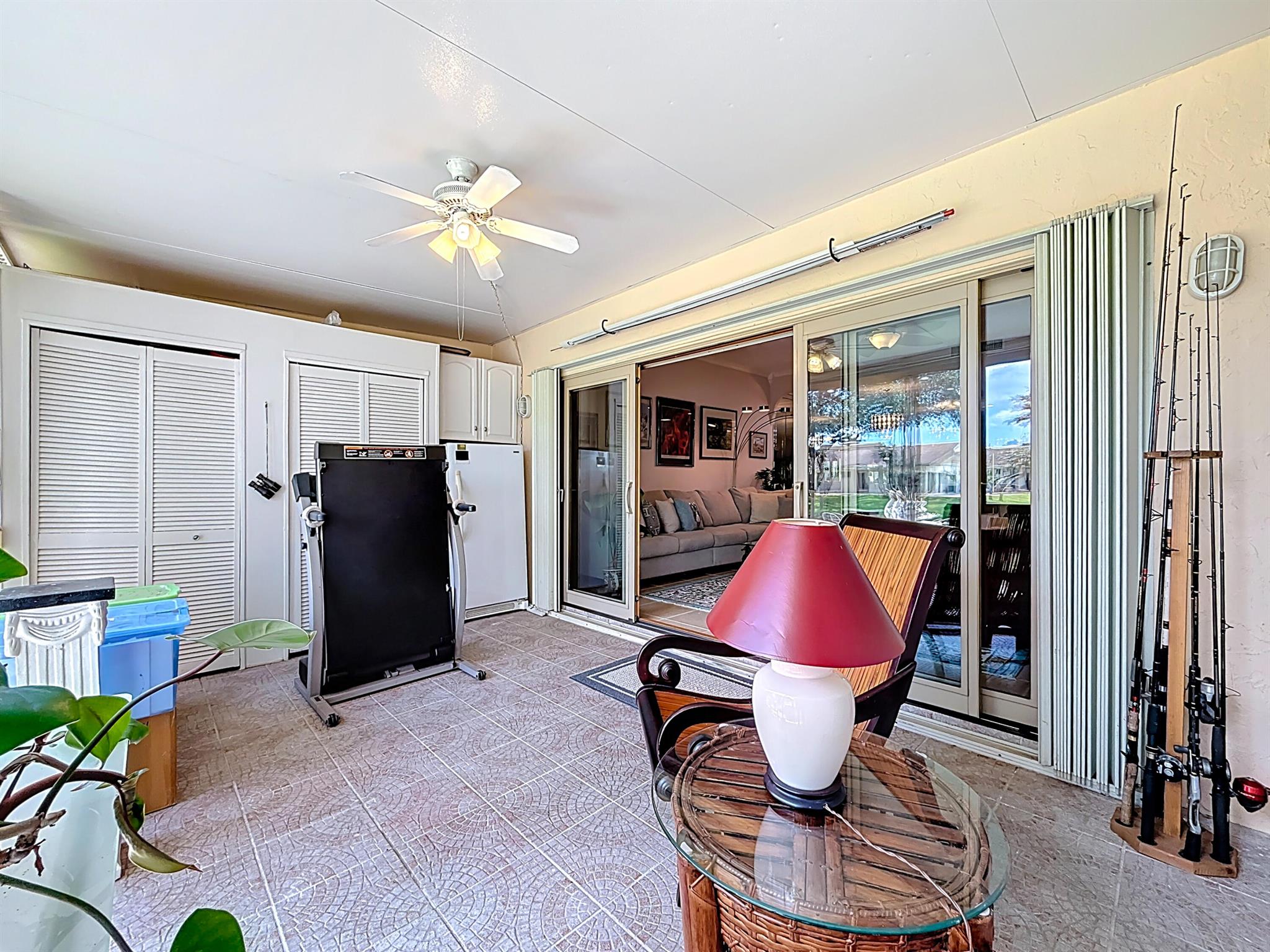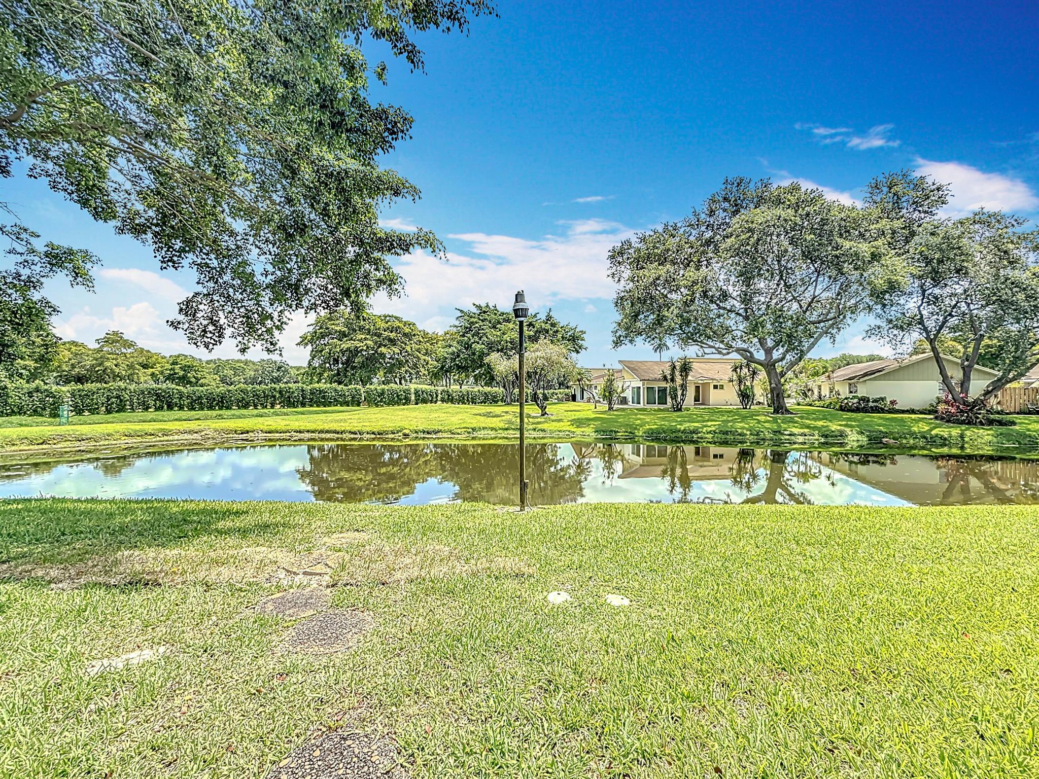 Rare opportunity! This beautifully upgraded 2 bed / 2.5 bath townhome offers over 1,470 sq ft of open living space and a one-of-a-kind feature: a glass-enclosed back patio overlooking the iconic golf course where *Caddyshack* was filmed -- a grandfathered addition no other unit has!Enjoy a private front courtyard, remodeled kitchen with granite counters, updated bathrooms, newer appliances, recessed lighting, and abundant storage including a walk-in pantry. Roof replaced in 2019, AC with UV filter installed in 2020, and accordion shutters for full storm protection.Located just across from Bamford Park, this move-in ready gem combines comfort, character, and an unbeatable golf course view. Don't miss it!