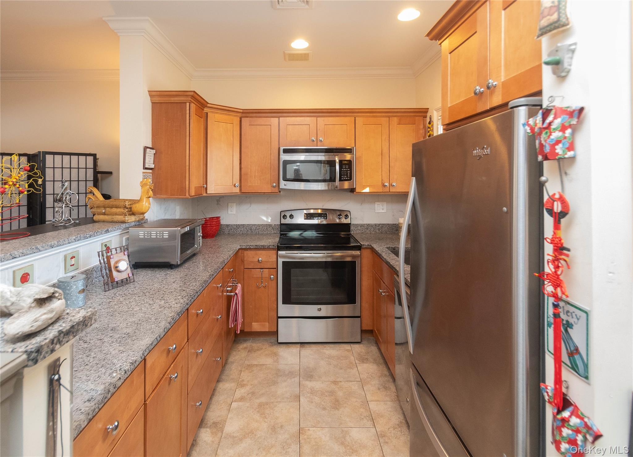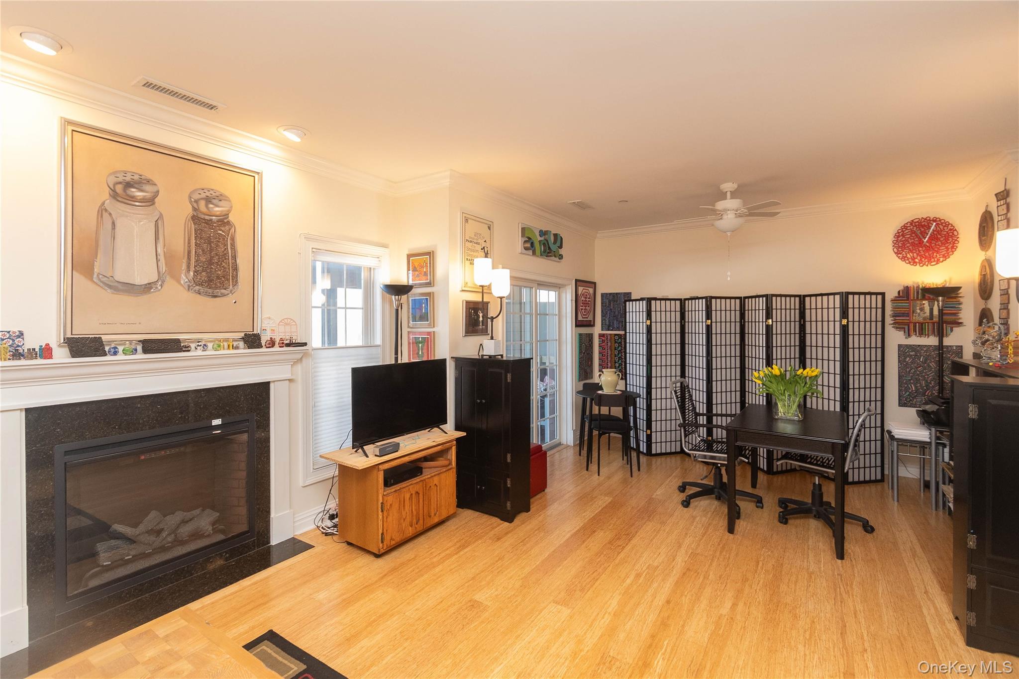 A wonderful opportunity to enjoy easy, low-maintenance living in the sought-after Gardens at Rhinebeck. This light-filled, two-story center unit offers excellent privacy and peaceful rear views, best enjoyed from the screened-in porch thoughtfully added by the ownera true extension of the living space and a special feature within the community. An attached one-car garage, along with an unusually long private driveway, provides excellent parking and storage and is ideal for hosting guests. Inside, the home offers a flexible and comfortable layout with one bedroom, a spacious den, and two full bathrooms. The kitchen features granite countertops, cherry cabinetry, stainless steel appliances, and a deep stainless-steel sink, and opens naturally to the living and dining areas, creating an easy, open flow well suited to everyday living and entertaining. The main level includes the kitchen, living and dining spaces, a coat closet, a full bathroom, and a conveniently located full-size washer and dryer. Upstairs, the primary bedroom adjoins a large den that works well as a guest room, office, or additional living space. The second-floor bathroom has been renovated with an updated tub/shower, vanity, and fixtures. Generous closet space throughout the home adds to its practicality. Additional features include ceiling fans in the dining area, den, and screened porch, along with a storm door and alarm system. The Gardens at Rhinebeck is beautifully maintained and spans three phases with walking trails and five scenic ponds throughout the grounds. Amenities include a clubhouse with a fitness room and common gathering space with kitchen, a swimming pool, and a tennis/pickleball court available for resident use. HOA services include landscaping, snow removalincluding shoveling right to the front doortrash removal, and use of community amenities. Conveniently located just minutes from Rhinebeck Village with its shops, restaurants, and cultural attractions, and close to the Rhinecliff Amtrak Station with direct service to Manhattan, this home offers a rare combination of privacy, convenience, and ease in one of Rhinebecks most desirable settings.