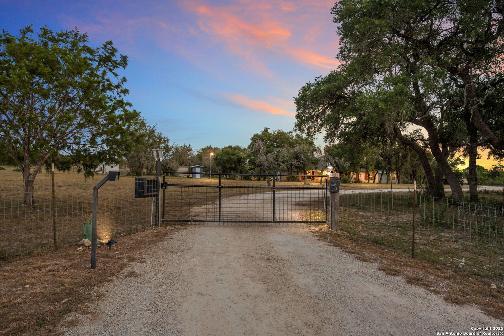 Scenic sunsets, peaceful morning strolls on private trails, and unforgettable gatherings under the expansive covered patio-this is the lifestyle you ve been waiting for. With built-in grills, outdoor speakers, and a dedicated freezer, your backyard is ready for entertaining year-round. Nestled behind a private electric gate, the road winds gently to your custom TILSON-built home, perfectly situated on over 6 acres of beautiful Texas land. Step inside to soaring ceilings and a spacious layout featuring 4 bedrooms and 3 full bathrooms. The kitchen is a dream with abundant counter space, generous cabinetry, and a designated dining room perfect for hosting. The private master suite is tucked away from the guest bedrooms, offering a peaceful retreat. Cozy up by the fireplace in the living room or enjoy outdoor adventures right on your property, which includes a chicken coop and a fenced area for livestock-horses welcome! Only 15 minutes from Medina Lake and just 4 minutes to the local little league field, this property combines serene country living with family-friendly convenience. Come experience the charm, space, and freedom of true Texas living!