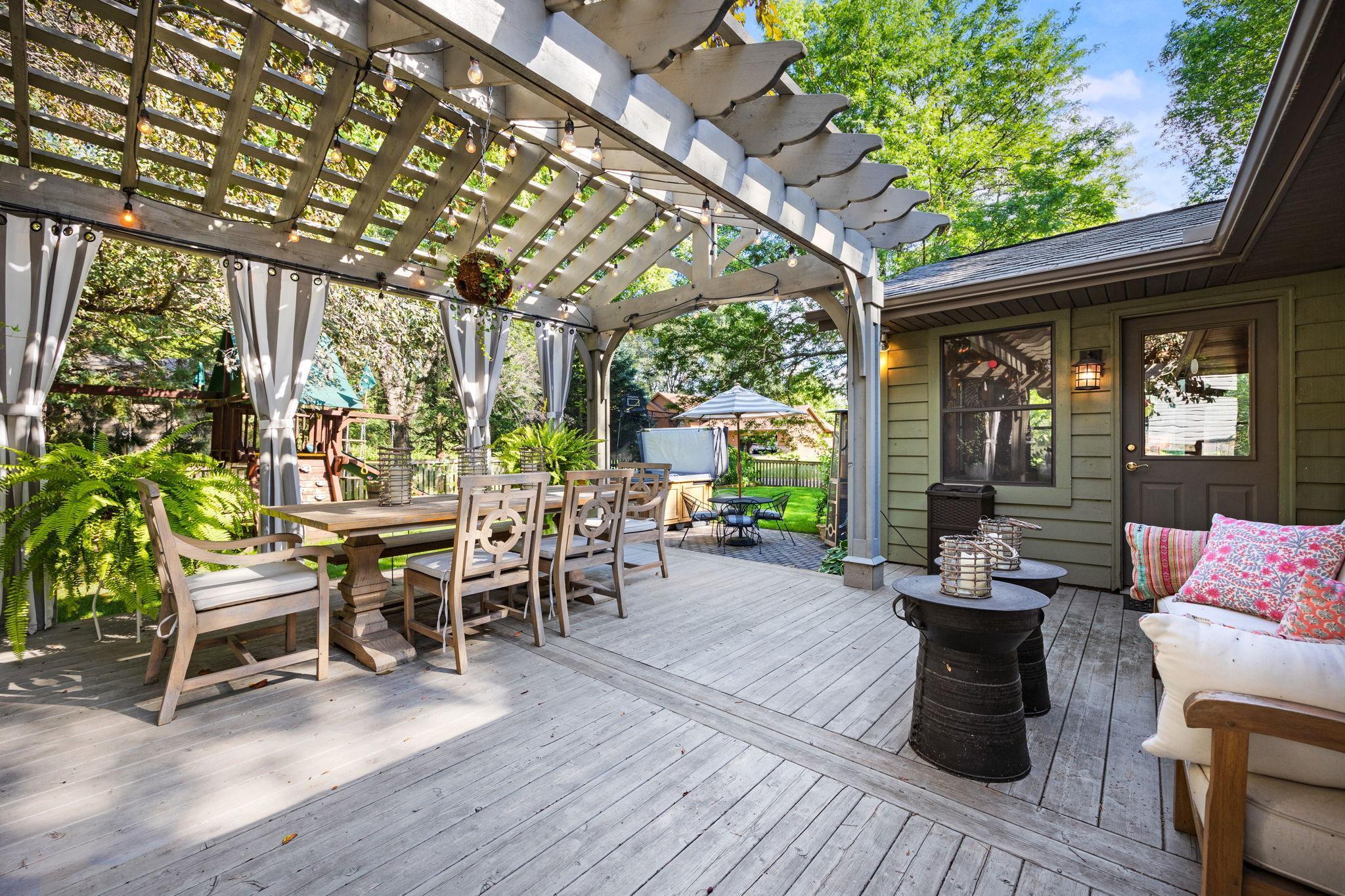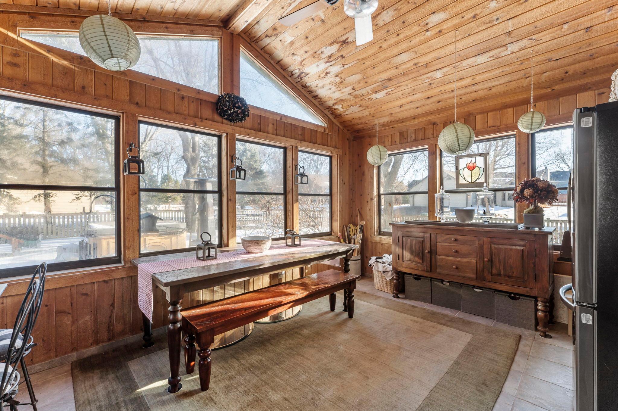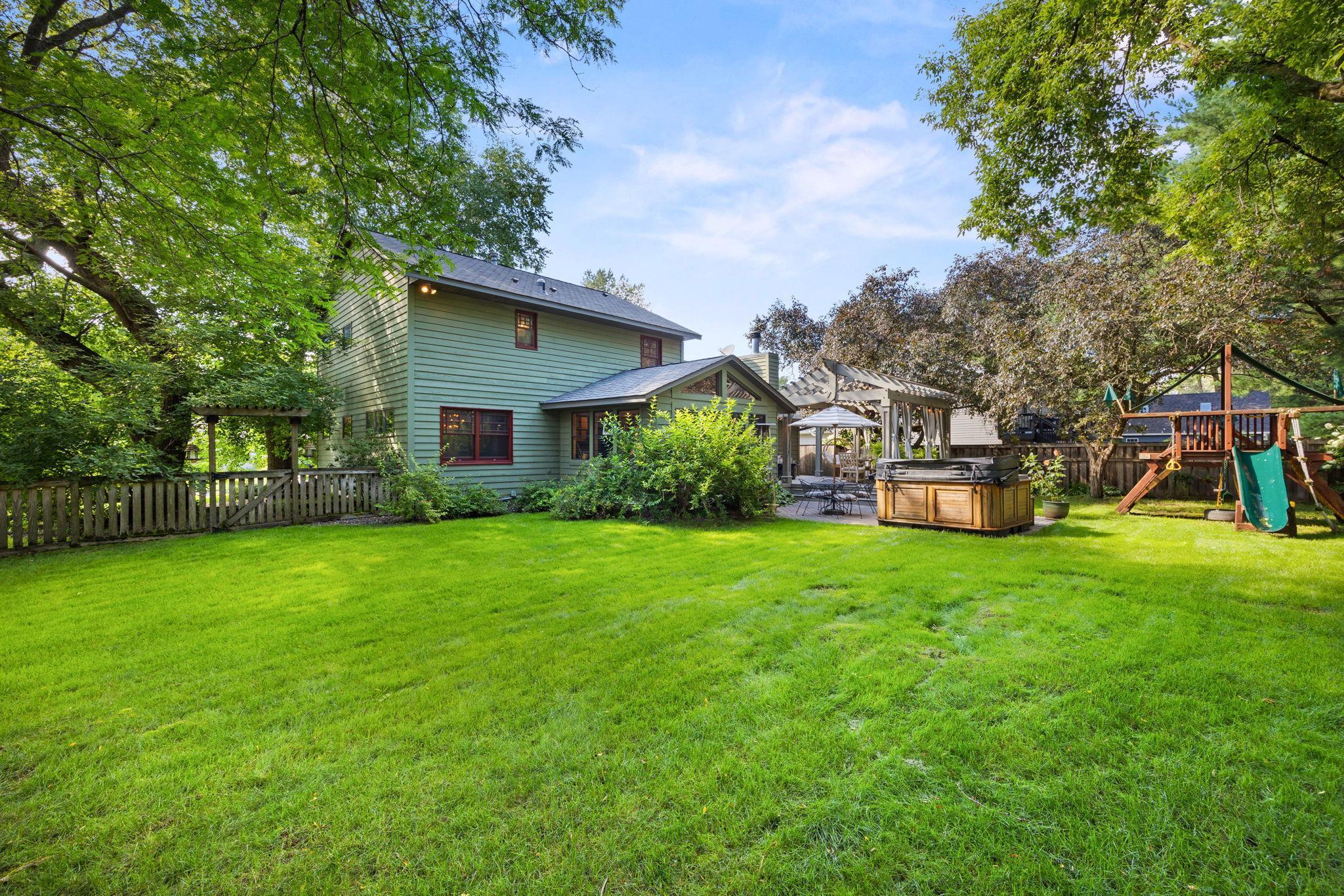 This beautifully updated four-bedroom, four-bath home offers refined living in a peaceful, wooded Vadnais Heights neighborhood near Vadnais Lake, scenic parks, walking trails, and everyday conveniences.Thoughtfully maintained and designed with both comfort and entertaining in mind, the home blends timeless elegance with modern updates throughout.Inside, light-filled living spacescreate an inviting and elevated atmosphere, highlighted by soaring ceilings, rich wood flooring, and warm architectural details.The flowing layout connects themain living, dining, and kitchen areas seamlessly, making it ideal for gatherings of any size. Multiple living spaces provide flexibility for hosting, relaxing, and everyday use.The home extends naturally outdoors with spaces designed to entertain and unwind. A three-season sunroom leads to a designer deck with custom pergola, expansive patio area with hot tub, and a fully fenced backyard surrounded by lush trees, offering privacy, beauty, and room to enjoy every season. From casual evenings outdoors to larger celebrations, the setting is both functional and serene.Upper and lower-level spaces offer comfortable retreats and versatile living options, including a finished lower level that adds valuable additional space. Countless updates have been completed over the years, enhancing style and peace of mind.Meticulously cared for and ideally located, this home offers exceptional space, elegance, and a lifestyle designed to be enjoyed.