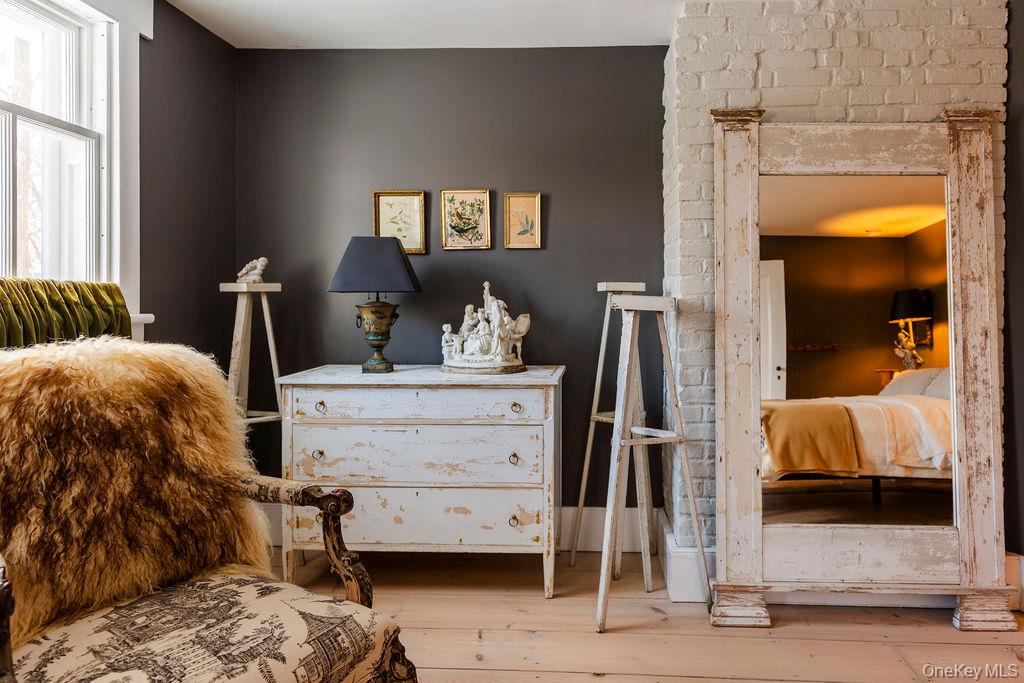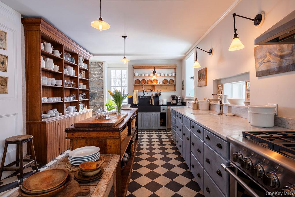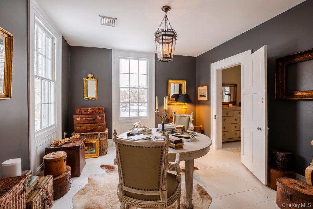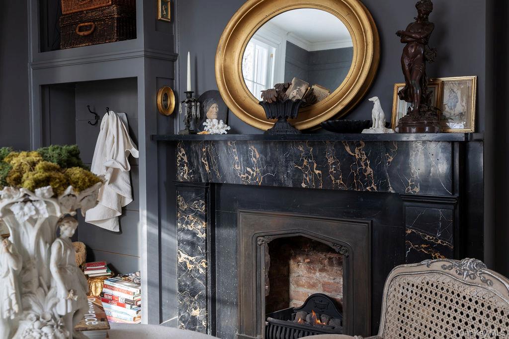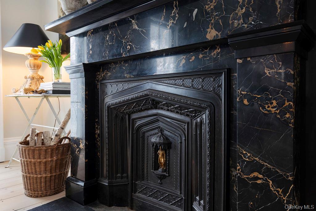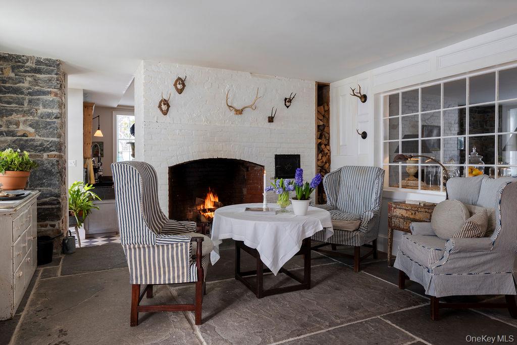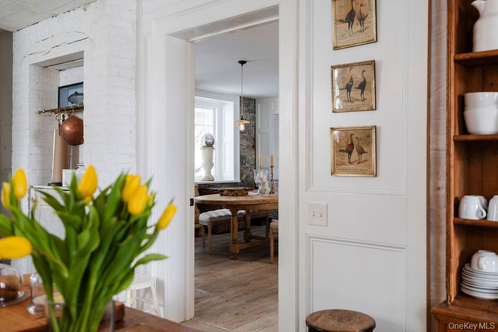 Maple Lawn, a landmark Greek Revival home in the heart of Stone Ridge, offers a rare combination of architectural pedigree and village-scale livability. Built in 1843 as both home and workplace for Dr. Jacob Louis Hasbrouck, the house remains one of the clearest expressions of classical Greek Revival design in the Hudson Valley, distinguished by its six Ionic columns and balanced proportions. Set on almost an acre within the charming hamlet, the property overlooks conservation-protected land, providing open views despite its central location. Inside, Maple Lawn features five bedrooms and four fully renovated bathrooms arranged across three levels, each floor incorporating sleeping quarters and baths. Three working fireplaces anchor the interiors, adding warmth and historical continuity to spaces that have otherwise been modernized. On the walk-out ground-floor level are a bluestone-floored gourmet kitchen and two gracious keeping rooms, each with its own working fireplace, plus a bedroom and bath. The main ''piano nobile'' living level features 11-foot ceilings, wide-board hardwood floors and pocket doors, with symmetrical front and back parlors adjoining a bedroom and an oversized bathroom. Upstairs are 2 additional large bedrooms and another fully renovated bathroom. Verandas span both the front and rear façades, extending the living space outdoors and reinforcing the home's formal symmetry. The multi-year restoration yielded a long list of impeccable improvements, including upgraded electrical service, zoned HVAC systems, a standing-seam metal roof, historically accurate clapboard replacement and sound-proofing storm windows. To the rear of the property, a raftered barn and carriage house provide flexible additional space--suitable for storage, studio use, or future pool house --while maintaining the estate-like feel that distinguishes Maple Lawn from other walk-able village homes.