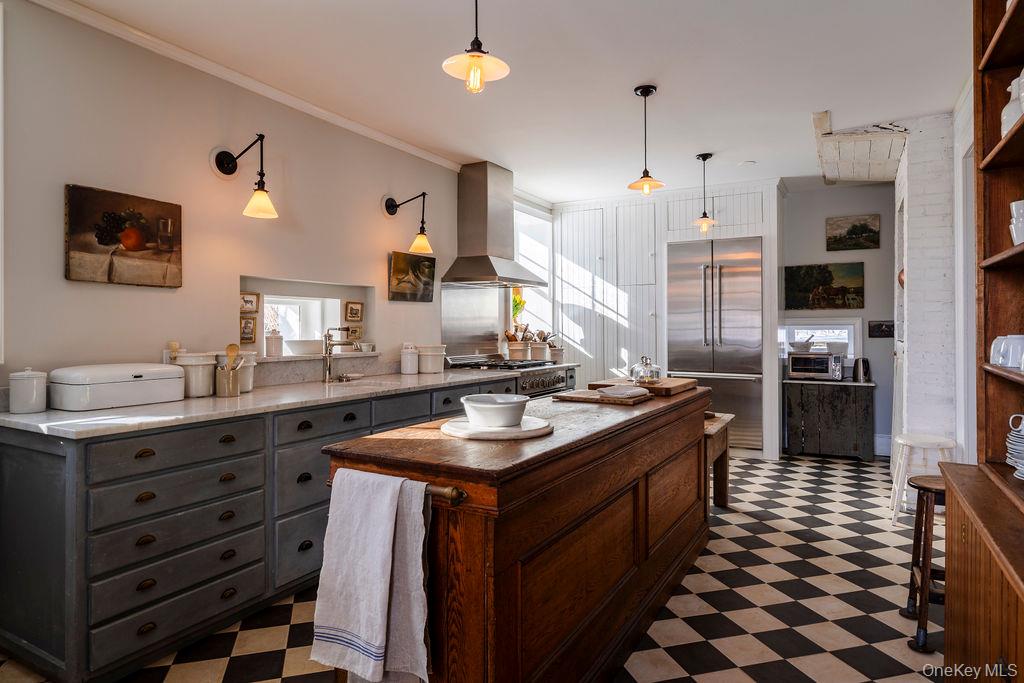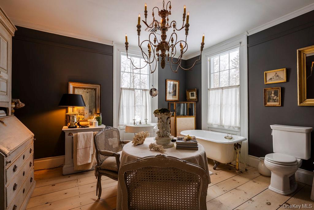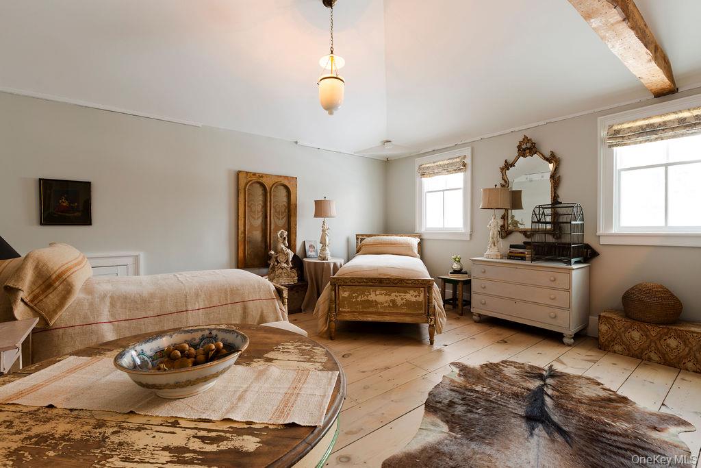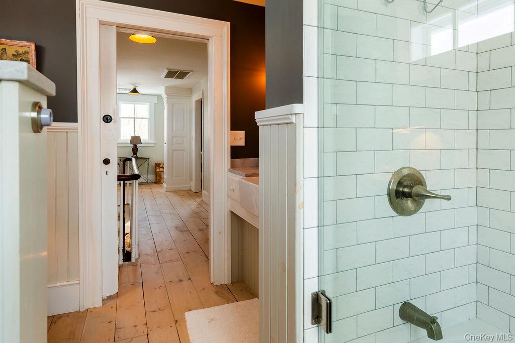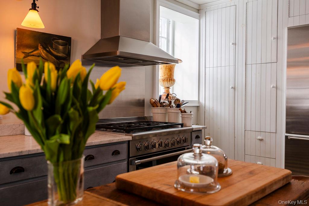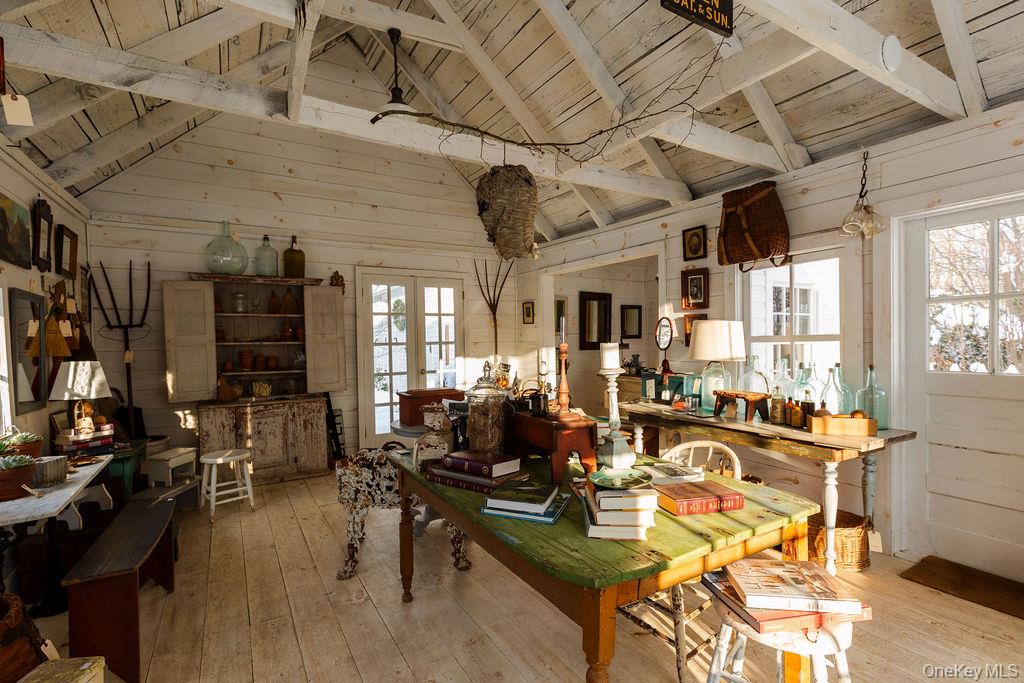 Maple Lawn, a landmark Greek Revival home in the heart of Stone Ridge, offers a rare combination of architectural pedigree and village-scale livability. Built in 1843 as both home and workplace for Dr. Jacob Louis Hasbrouck, the house remains one of the clearest expressions of classical Greek Revival design in the Hudson Valley, distinguished by its six Ionic columns and balanced proportions. Set on almost an acre within the charming hamlet, the property overlooks conservation-protected land, providing open views despite its central location. Inside, Maple Lawn features five bedrooms and four fully renovated bathrooms arranged across three levels, each floor incorporating sleeping quarters and baths. Three working fireplaces anchor the interiors, adding warmth and historical continuity to spaces that have otherwise been modernized. On the walk-out ground-floor level are a bluestone-floored gourmet kitchen and two gracious keeping rooms, each with its own working fireplace, plus a bedroom and bath. The main ''piano nobile'' living level features 11-foot ceilings, wide-board hardwood floors and pocket doors, with symmetrical front and back parlors adjoining a bedroom and an oversized bathroom. Upstairs are 2 additional large bedrooms and another fully renovated bathroom. Verandas span both the front and rear façades, extending the living space outdoors and reinforcing the home's formal symmetry. The multi-year restoration yielded a long list of impeccable improvements, including upgraded electrical service, zoned HVAC systems, a standing-seam metal roof, historically accurate clapboard replacement and sound-proofing storm windows. To the rear of the property, a raftered barn and carriage house provide flexible additional space--suitable for storage, studio use, or future pool house --while maintaining the estate-like feel that distinguishes Maple Lawn from other walk-able village homes.