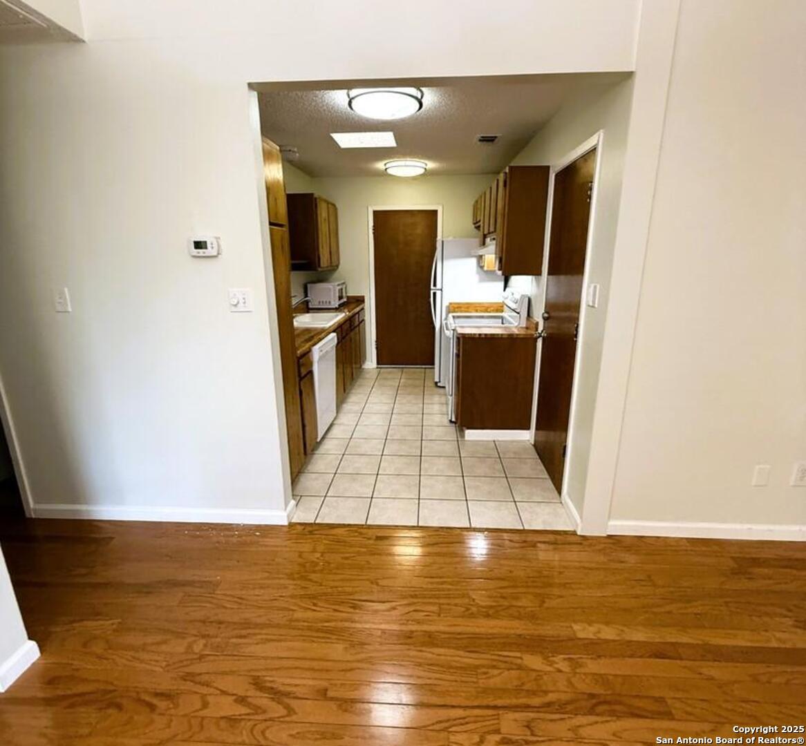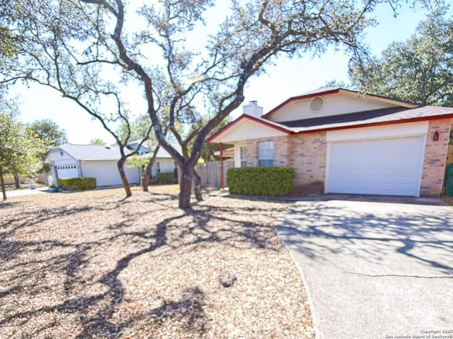 Charming 2-bedroom, 1-bath brick home ideally located close to schools, shopping, and everyday conveniences. This inviting home features a spacious open-concept living and dining area-perfect for relaxing or entertaining. Living room has vaulted ceilings, inviting fireplace and built ins. The convenient kitchen offers plenty of cabinet space and easy access to the utility room and double garage. Both bedrooms are bright and large, ample closet space with one bedroom featuring a full wall of built in shelving. Outdoors, enjoy a large fenced yard with a covered patio, providing the perfect spot for barbecues, play, or simply unwinding. With its comfortable layout and convenient location, this home offers both comfort and practicality.