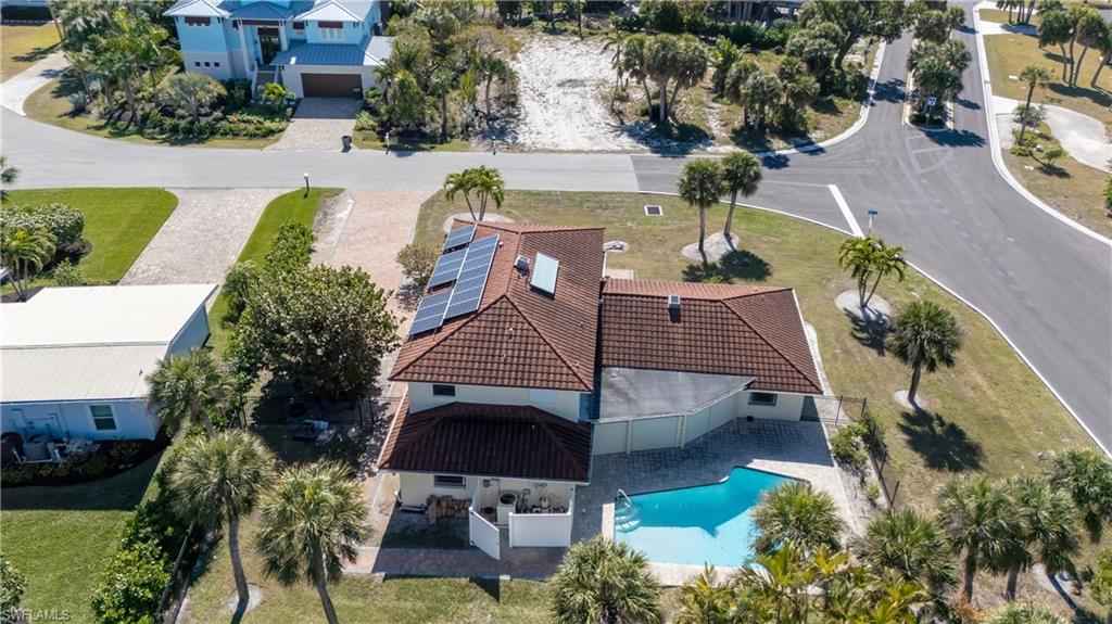 Set within a highly desirable Sanibel Island community, this oversized corner homesite is only a short 5-minute walk to beach access! Updates have already begun on the lower level including new LVT flooring, offering the perfect opportunity to complete your dream home with your own custom vision. This over 2800sqft home includes 4 bedrooms and 3 full bathrooms, with 3 bedrooms and 2 baths conveniently located on the main floor while the upper level provides a private bedroom retreat with its own full bath and large walk-in closet. New brick pavers enhance the driveway and walkway extending to the backyard, while the pool area boasts a resurfaced pool and spa, updated equipment, new brick pavers, and a new fenced rear yard. The exterior features a long-lasting metal roof designed to replicate the classic look of tile. Also includes 2 Newer HVAC systems, a home solar water heater and storm shutters on all windows. With ample interior storage, 2 car garage and a generous number of bedrooms, this home is ideal as a full-time residence, second home or seasonal rental property!
