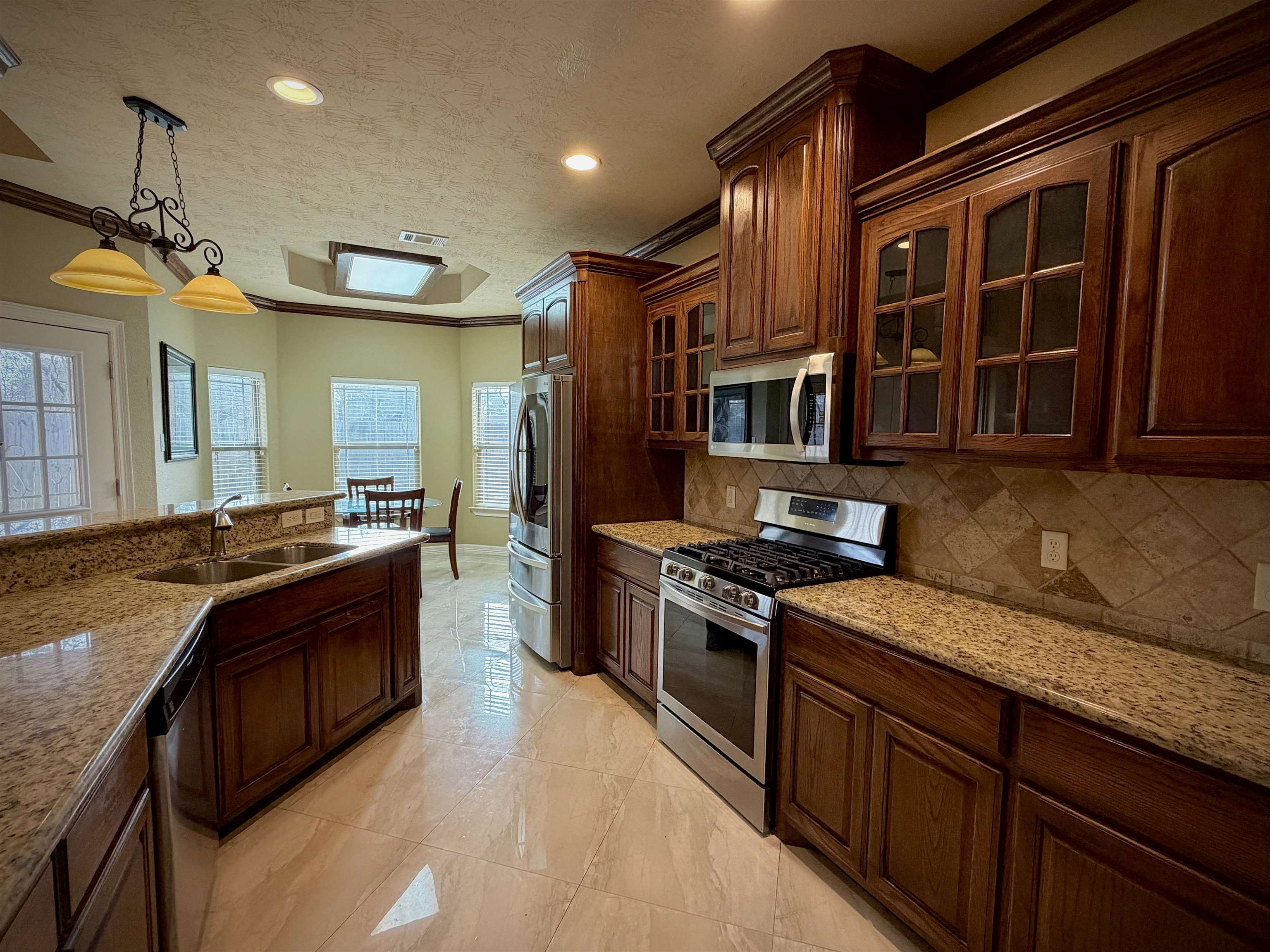 This well maintained 3 bedroom, 2 bath home offers comfort and style in a desirable Groves location. Built just 14 years ago, the home features an open layout with high ceilings, crown molding, and a cozy fireplace. The kitchen includes granite countertops, rich wood cabinetry, stainless steel appliances, and a bright breakfast area. The spacious primary suite offers a soaking tub, separate shower, and walk-in closet. Enjoy relaxing outdoors under the covered patio in the fully fenced backyard. Features: * 3 Bedrooms / 2 Bathrooms * 2-Car Garage * Fireplace * Granite Counters & Stainless Appliances * Covered Patio & Fenced Yard * Located in PNG-ISD $2600 a month available fully furnished Move-in ready and perfect for comfortable living.