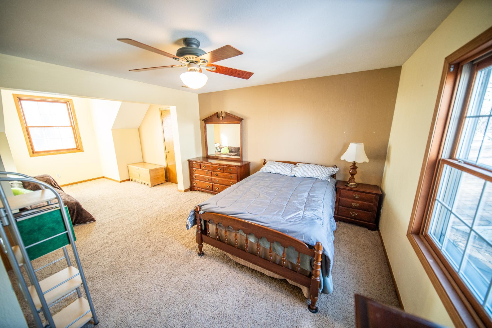 Experience the perfect blend of comfort, accessibility, and space in this exceptional 6-bedroom, 4-bath, over 5,000 sq ft two-story home set on 5 scenic acres just 15 minutes from Rochester. A wheelchair-accessible ramp leads to the front door, offering convenient, step-free entry and thoughtful design from the moment you arrive. Designed for both everyday living and effortless entertaining, the main level welcomes you with LVP flooring, a spacious living room anchored by a charming wood-burning fireplace, and an expansive kitchen offering abundant cabinetry, a generous center island, and stainless steel appliances. The primary suite serves as a serene retreat with its walk-in closet, electric fireplace, and beautifully tiled walk-in shower. A conveniently located half bath and a well-appointed laundry room with a washer and dryer complete the main level. One of the homes most captivating features is the stunning 26x26 sunrooman inviting sanctuary filled with natural light. With double doors, a gas fireplace, a wood-beamed ceiling, and a patio walkout, this space creates a seamless transition to the outdoors and offers year-round comfort. Upstairs, three spacious bedrooms provide a peaceful escape, complemented by a full bathroom and exceptional storage in the bedrooms as well as two oversized hallway closets. The lower level enhances the homes versatility, featuring epoxy flooring, an electric fireplace, and a home theater setup complete with a movie projector. A full kitchenette with cherry and walnut cabinetry adds flexibility for hosting or multigenerational living. This level also includes a spa-like full bathroom with a two-person sauna and Sun Splash stand-up tanning booth, as well as valuable mechanical updates such as an on-demand water system (2024) and a new 50-gallon water heater (2025). Two additional bedrooms complete this functional and inviting space. An attached 1,044 sq ft garage with a large workbench provides exceptional storage and workspace. Outside, enjoy a beautiful deck with ramp access, a large garden area with 250 gal IBC (Intermediate Bulk Container) tanks, and the peaceful setting only acreage living can provide. This remarkable property offers space, luxury, and flexibilityan ideal retreat in a private, picturesque setting. Schedule your showing today!