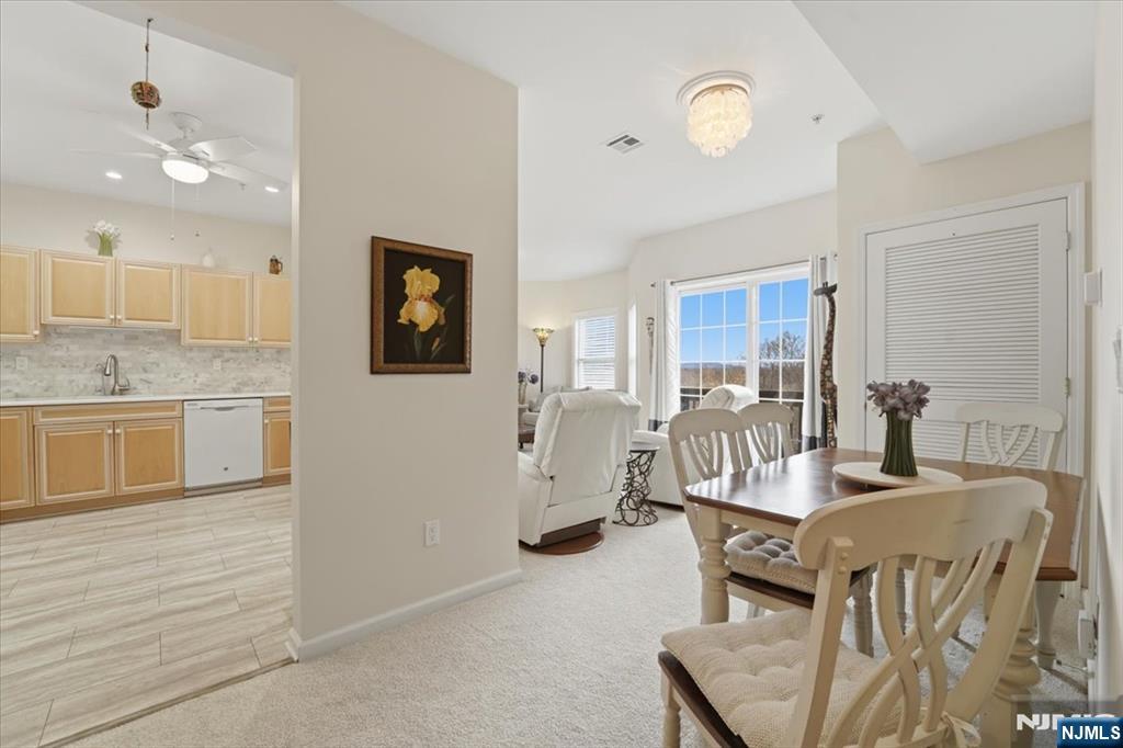 Welcome to Mountain Ridge Towers! Nestled on top of Garret Mountain, this updated 1st floor END UNIT has breathtaking views of the skyline from its private balcony! This 55+ building has ample parking, a library, an exercise room, a billiard room, & an activity room. The pinnacle of this Buckingham model is its tall ceilings, wide foyer entry & open balcony where you can breathe in the crisp, mountain air. This unit has an updated primary bath, vanity with 2 sinks & linen closet. Offering an ample eat in kitchen, pantry, with all appliances included and separate dining. The primary ensuite harmonizes the personal space of the primary bedroom while guests will enjoy the privacy of their own full bathroom directly across the hall from the 2nd bedroom. EXPANSIVE kitchen is the epicenter of culinary entertainment, as it opens to the dining and living rooms. Laundry Room with washer/dryer and large coat closet. Elevators for ease of mobility - no fussing over stairs! Plenty of on-site parking. Commuting, shopping, and dining a breeze! Minutes to NYC, Giant stadium, American Dream mall, golf courses, downtown Montclair restaurants and more. Move right in to this handicap accessible complex. This will not last, so let's connect today!