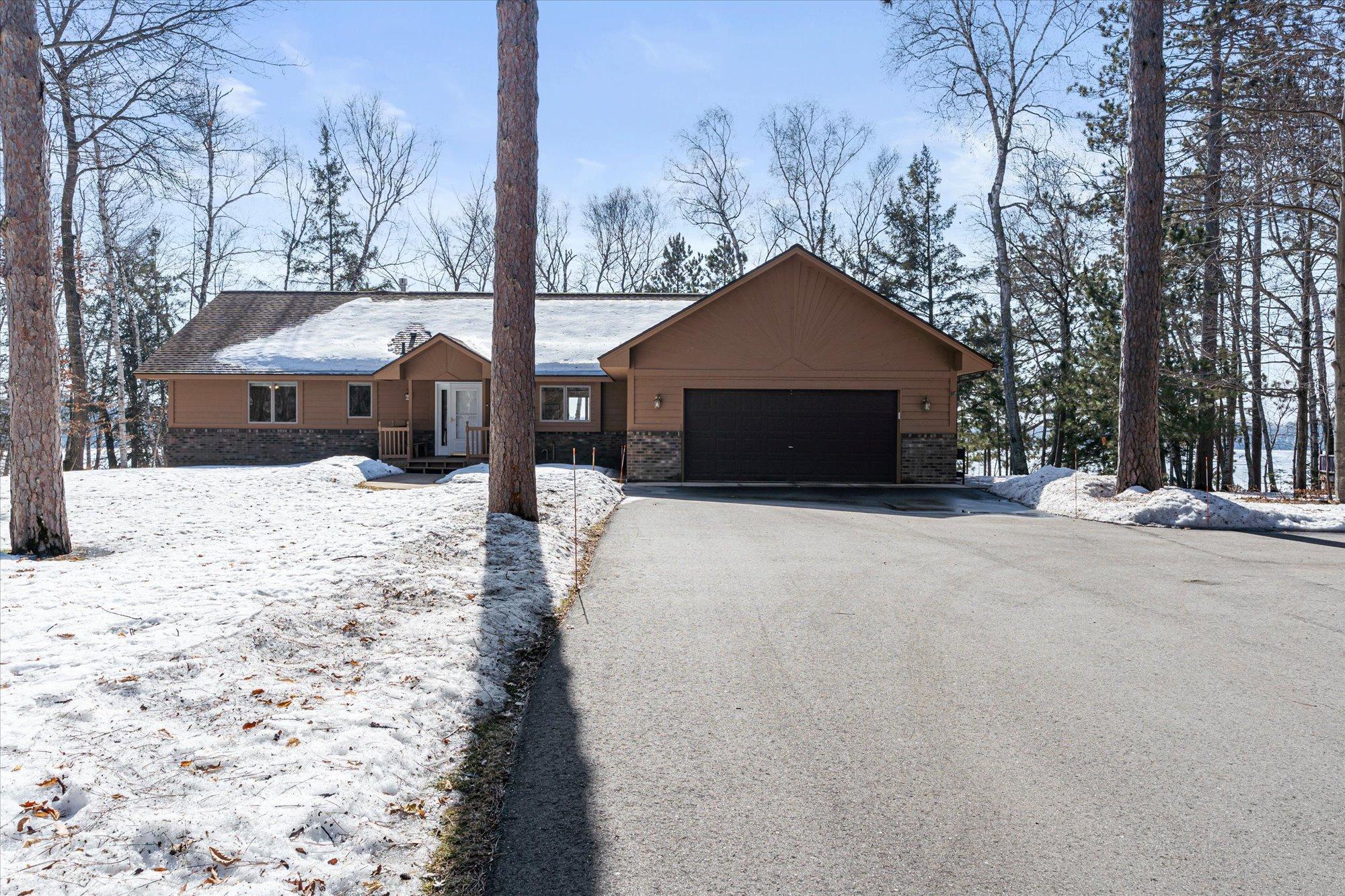 Enjoy exceptional lake living at this updated 3-plus bedroom, 3-bath Goodrich Lake home, offering 130 feet of prime sandy frontage. The beautifully wooded lot, featuring mature trees, is complemented by a new driveway. The spacious main level boasts an alder-vaulted ceiling, a new stone natural gas fireplace in the lakeside living room, a lakeside dining area, a four-season room with access to the lakeside deck, a beautifully renovated kitchen with plenty of storage, and a lakeside main-floor bedroom complete with a walk-in closet. The finished walkout lower level features a cozy lakeside family room with a brick fireplace, a stunningly renovated bathroom, an additional bedroom without an egress window, and a large utility room with a washer and dryer. The attached 2-plus-stall garage and the lakeside tuck-under garage provide ample space to store your lake toys. The property has seen several updates since 2021. Inside, a new water softener was installed. In 2025, a new roof and exterior paint were added, along with a new Kohler generator outside. The dock was also replaced, and eight new windows were installed. Host memorable gatherings on the lakeside deck while taking in breathtaking lake views. Enjoy exhilarating days of boating, fishing, or swimming on Goodrich Lake. Located minutes from all Crosslake amenities, including great restaurants, a variety of retail establishments, and premier golf courses. Dont miss the chance to start enjoying lake life this summer on Goodrich Lake!