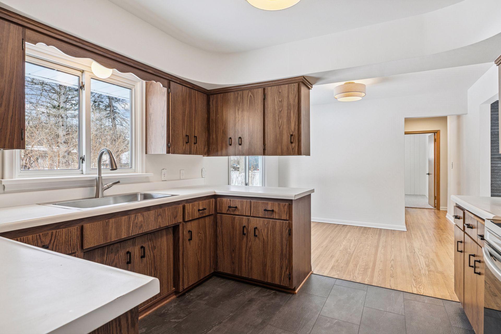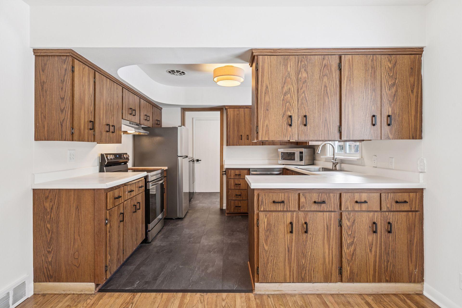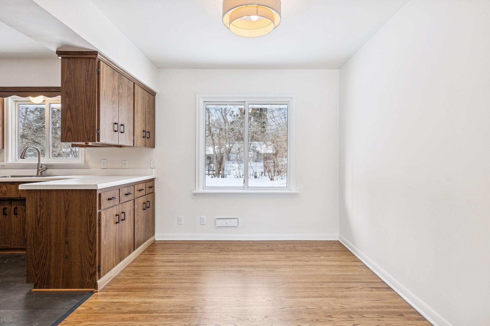 Nestled on a large, private lot with a peaceful backyard, this beautifully refreshed single-family home offers the perfect blend of charm and modern updates. The exterior features newer roof and fresh paint, while the interior shines with newly painted walls, refinished hardwood floors, and classic enameled woodwork throughout. A cozy brick fireplace anchors the living space, complemented by matte black hardware and stylish new light fixtures. The updated kitchen boasts brand-new appliances, a new sink and faucet. Enjoy the convenience of a new washer and dryer. The bathroom has been thoughtfully refreshed with a new quartz top vanity and brushed nickel hardware. Bedrooms feature plush new carpeting, creating comfortable, inviting retreats. This home is truly move-in ready and everything is on one level!
