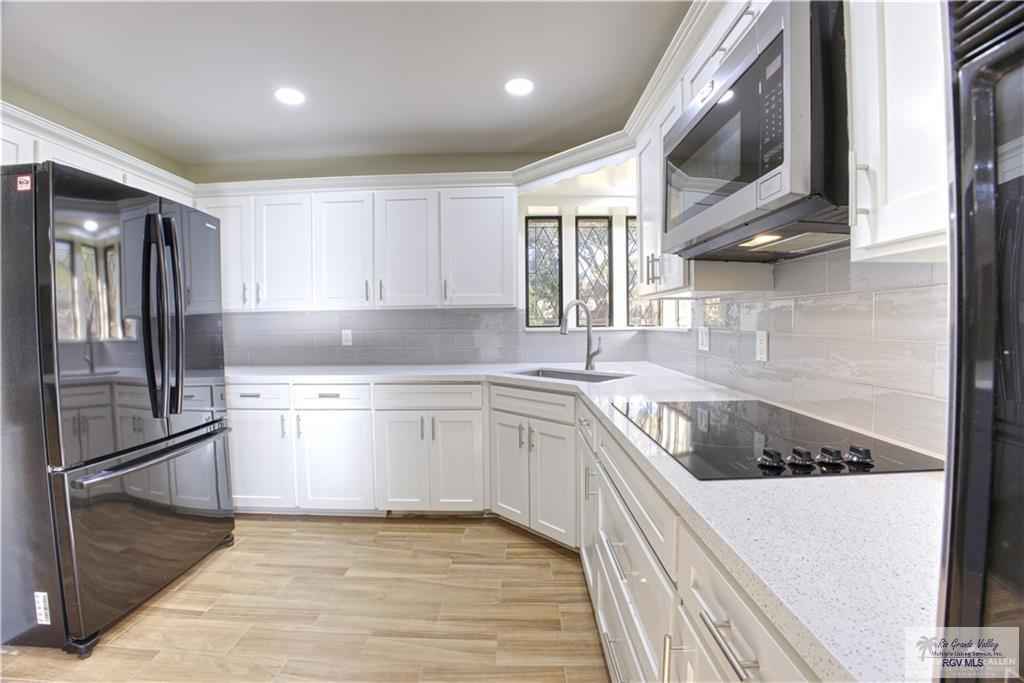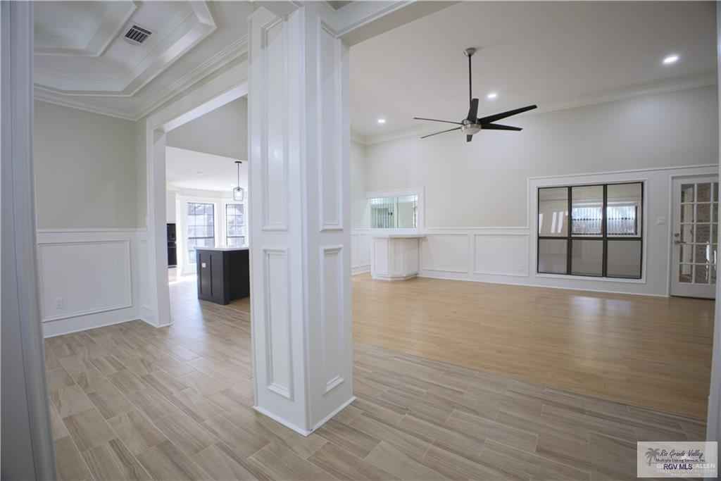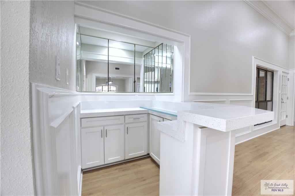 Gorgeous Renovated Home in the Heart of McAllen in an established neighborhood with Alley Access! This Home features 4 Bedrooms and 3 Bathrooms plus a Bonus Room with a total living square feet of 2,464 (Seller), A spacious 2 car garage (506 sq. ft. per HCAD), sitting on a lot of 8,360 square feet (HCAD). The home has an open concept and split bedroom floor plan. The countertops are a combination of Quartz in the kitchen and bar, plus ceramic in the bathrooms. The stove top, refrigerator, microwave will be conveying. It has high decorative ceilings with fans and built-ins. The flooring has a combination of laminate wood and tile. The Master bedroom has his and hers closet, double separate sinks, garden tub and separate shower. Beautiful area with mature trees, close to Shopping, Banking, Restaurants and Expressway 281 (69 C), Nolana and 1st Street.