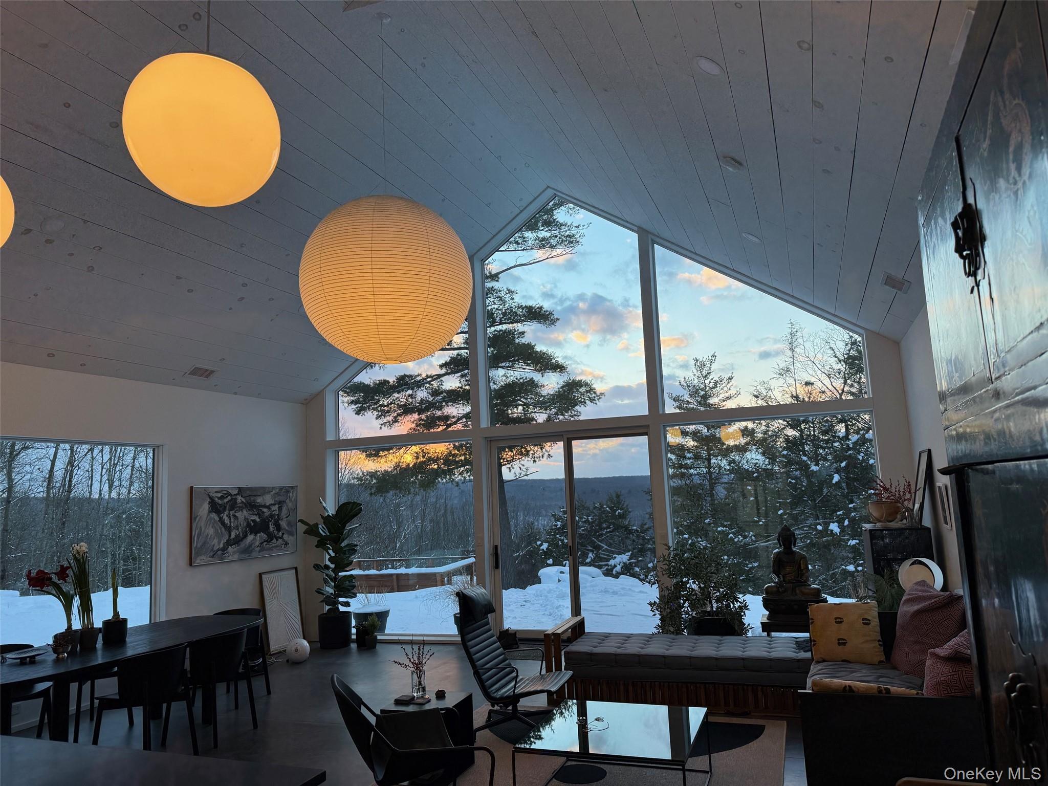 Modern design meets responsible living, with efficiency of space and energy use at the forefront of this 2-bedroom, 1.5-bath residence delivering design, location, and quality. Built in the Catskills just minutes to the Delaware River and village of Narrowsburg, enter the private 5.78 acres of mature trees on a paved driveway circling in front of the house for easy access. Upon entering, the dramatic living area is anchored by a soaring 24-foot ceiling and a striking wall of western facing windows that flood the interior with natural light. The open-concept kitchen flows seamlessly into the living space, blurring the line between indoors and out and making the landscape part of the daily experience all heated by radiant heated concrete floors. Set to capture beautiful west-facing distant views, the home is thoughtfully positioned with a designated gravel firepitperfect for sunset gatherings and quiet evenings under the stars or while soaking outside, unwinding in the heated cedar hot tubyour own private spa with distant views. Refined yet relaxed, modern yet timeless, this is Catskills living done right. Quality like this doesnt come along oftenand when it does, it doesnt stay long. Just over 2 hr to NYC.