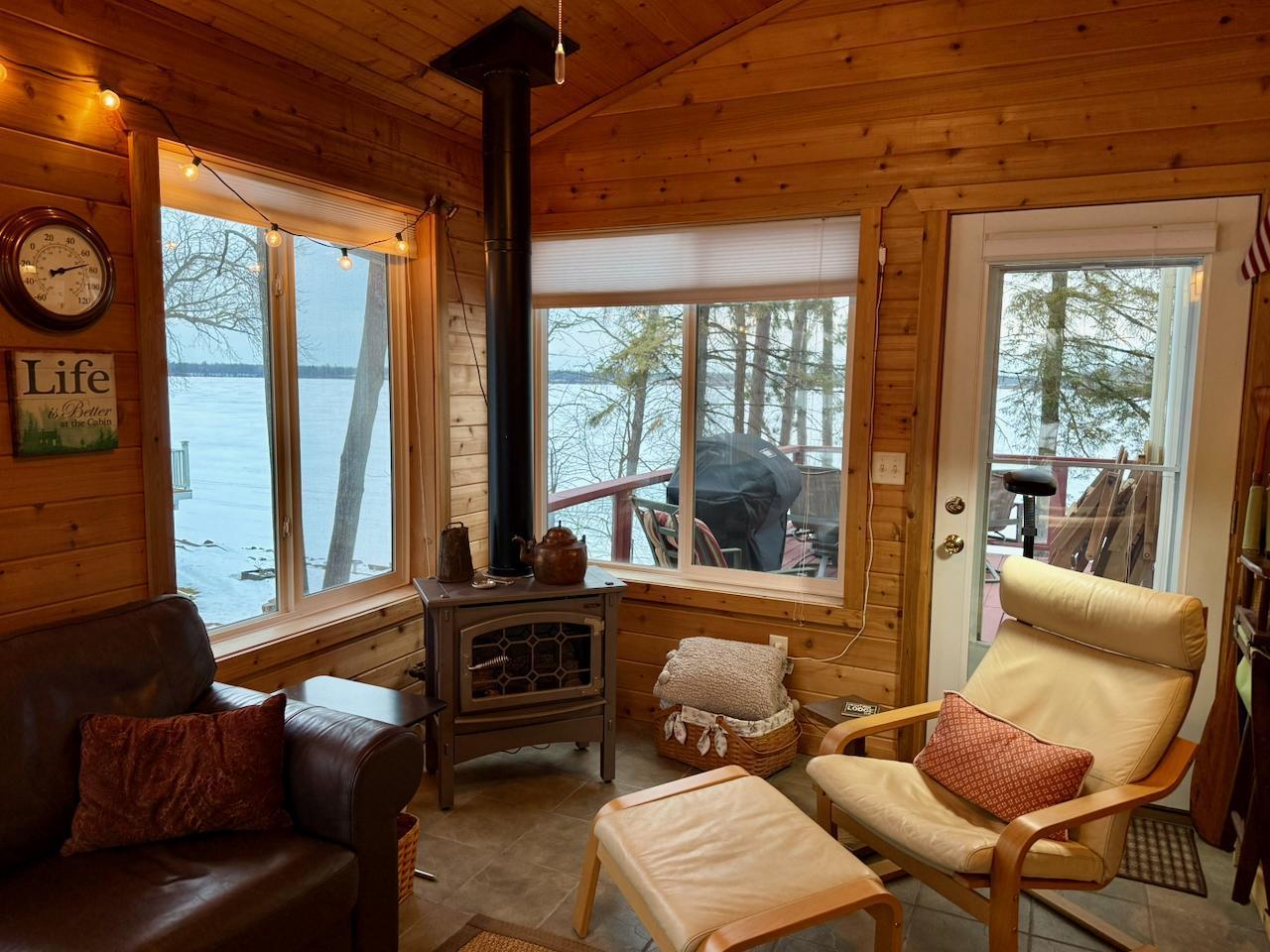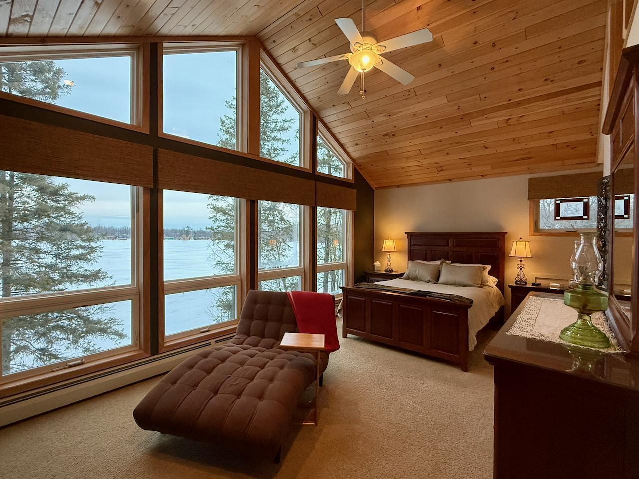 Situated on the shores of Sturgeon Lake in the esteemed Sunset Bay, this well-built home offers six bedrooms and three bathrooms. The main level features a gourmet kitchen and an open-concept living/dining area that leads directly to a lakeside deck. This floor also includes two bedrooms, a bathroom, and a four-season sunroom with a gas fireplace. The lower level provides two additional bedrooms, a living area with walkout lake access, a bathroom, a laundry/utility room, and plentiful storage. On the upper level, there is a sitting room, a bathroom, and two more bedrooms, including a master suite equipped with a gas fireplace, floor-to-ceiling windows, and impressive views of Sturgeon Lake and the Historic Sturgeon Island Covered Bridge. The property has been meticulously maintained. Additional amenities include a two-car heated garage and a small shed near the water. The gently sloping lot leads to one of the area's finest sand beaches. The property offers excellent fishing, recreation opportunities, clean and clear water, and striking sunsets, making it a comprehensive Sturgeon Lake offering.