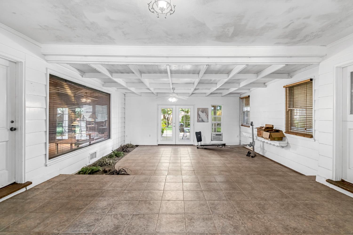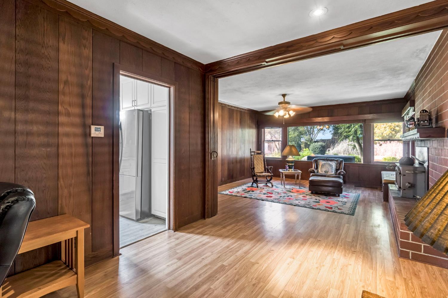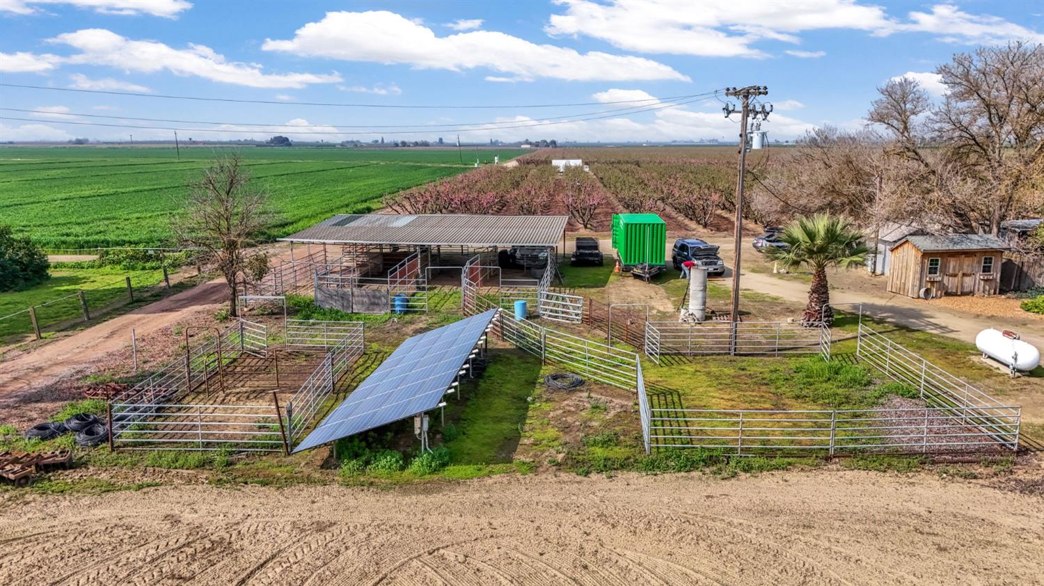 New listing in Dinuba! Situated on 1.8 acres, this lovingly cared-for 2,493 sq ft home offers space, character, and functionality. This 3 bedroom, 2 bath home features a recently renovated kitchen with updated cabinetry, abundant storage, and a bright window overlooking the property. The home offers multiple living areas including a separate den with rich wood paneling and a large picture window overlooking the backyard. Additional features include a formal living room, dining area, office workstation, and indoor laundry. A spacious enclosed patio with exposed beam ceiling and French doors creates an ideal indoor-outdoor entertaining space and opens to a covered patio and beautifully maintained backyard. The backyard is park-like with mature landscaping, a pergola seating area, and a decorative pond with a cascading rock waterfall. The property is thoughtfully laid out with mature landscaping surrounding the home and open, usable acreage ideal for animals, equipment, or future improvements. Improvements include a 45x45 pole barn with additional covered storage, separate power meter, horse corrals, ground-mounted 28-panel solar system, newer well, and a brand new roof to be installed prior to close of escrow.