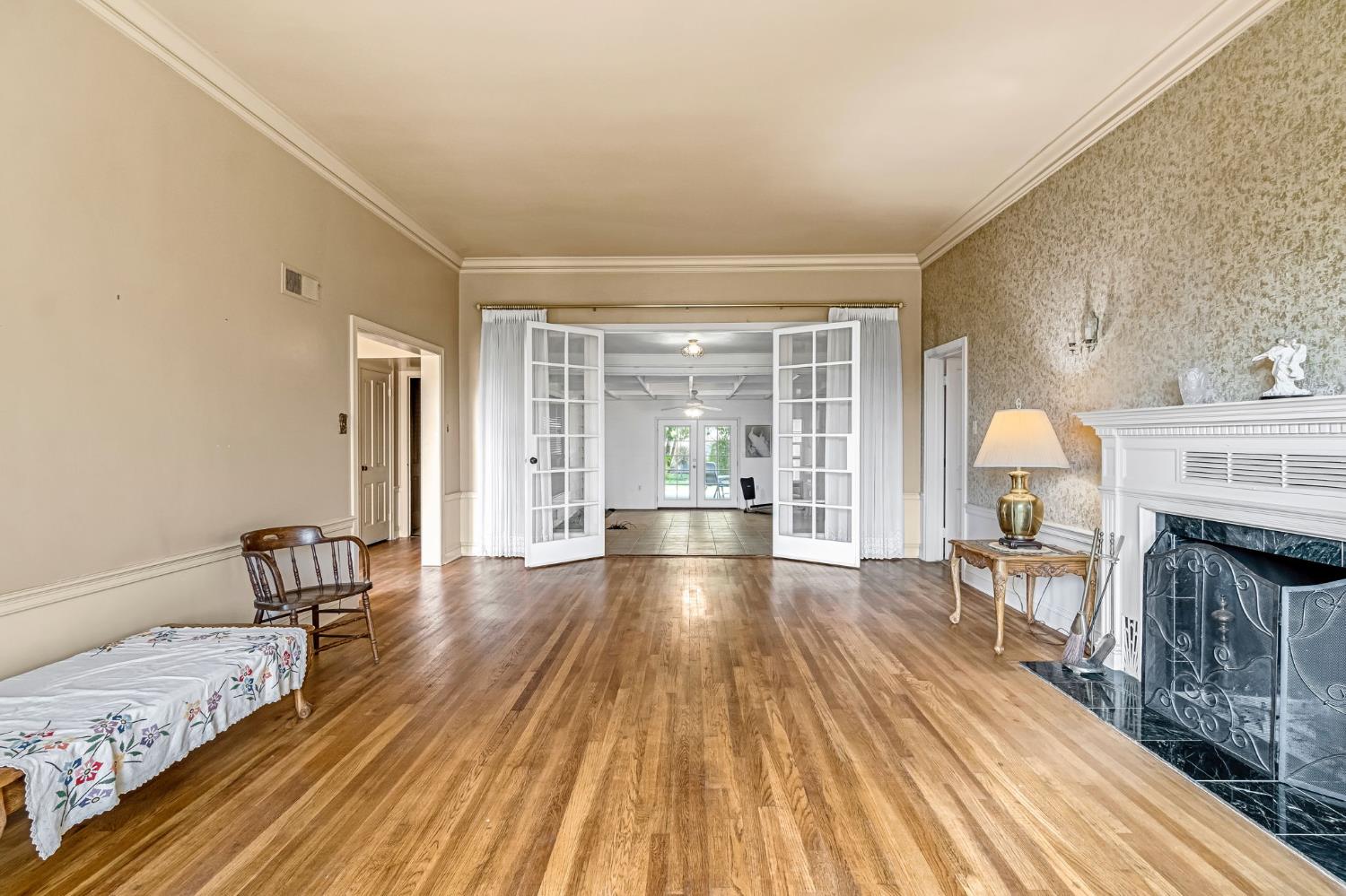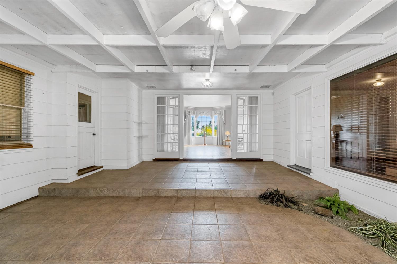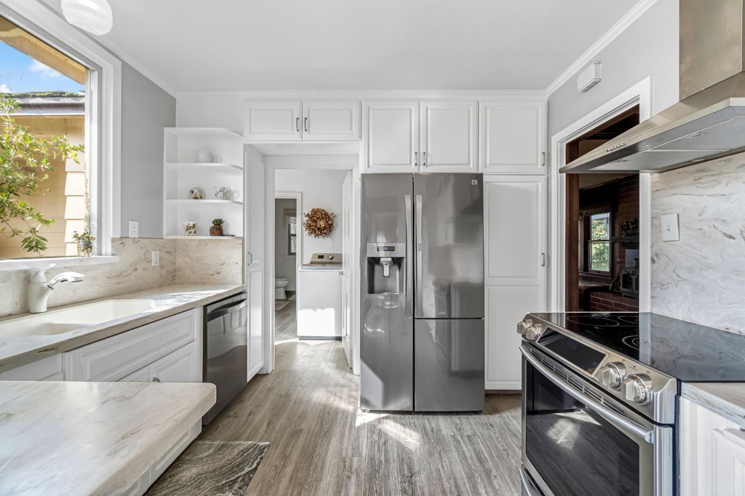 New listing in Dinuba! Situated on 1.8 acres, this lovingly cared-for 2,493 sq ft home offers space, character, and functionality. This 3 bedroom, 2 bath home features a recently renovated kitchen with updated cabinetry, abundant storage, and a bright window overlooking the property. The home offers multiple living areas including a separate den with rich wood paneling and a large picture window overlooking the backyard. Additional features include a formal living room, dining area, office workstation, and indoor laundry. A spacious enclosed patio with exposed beam ceiling and French doors creates an ideal indoor-outdoor entertaining space and opens to a covered patio and beautifully maintained backyard. The backyard is park-like with mature landscaping, a pergola seating area, and a decorative pond with a cascading rock waterfall. The property is thoughtfully laid out with mature landscaping surrounding the home and open, usable acreage ideal for animals, equipment, or future improvements. Improvements include a 45x45 pole barn with additional covered storage, separate power meter, horse corrals, ground-mounted 28-panel solar system, newer well, and a brand new roof to be installed prior to close of escrow.