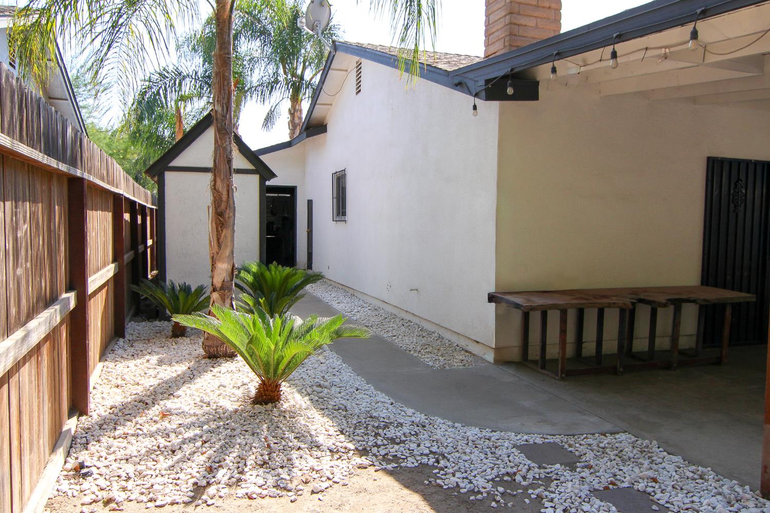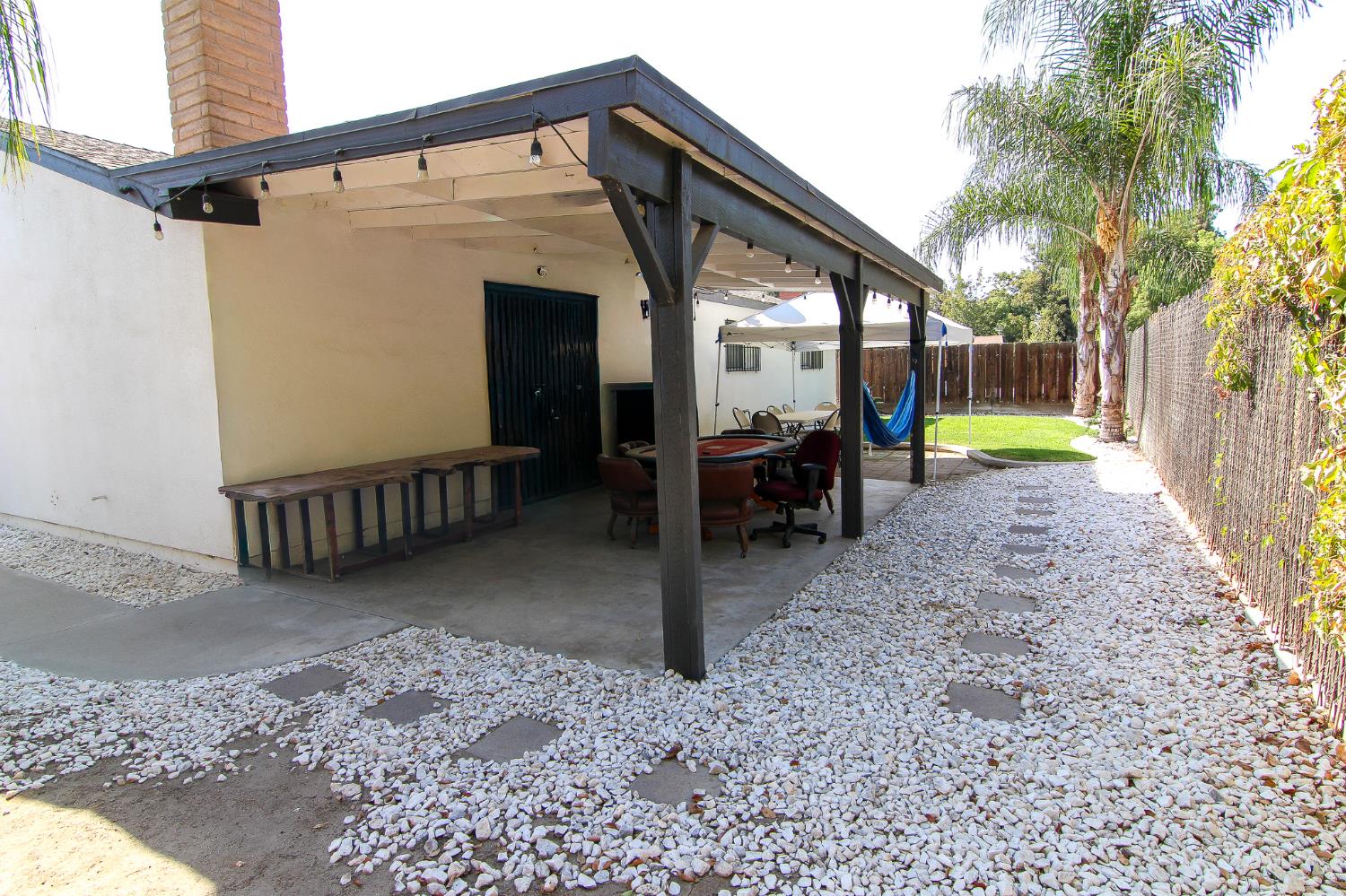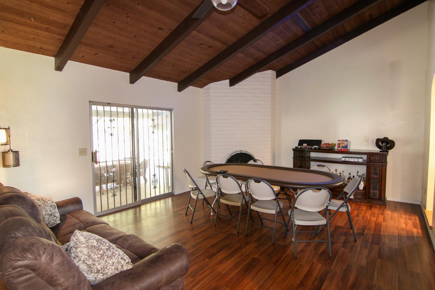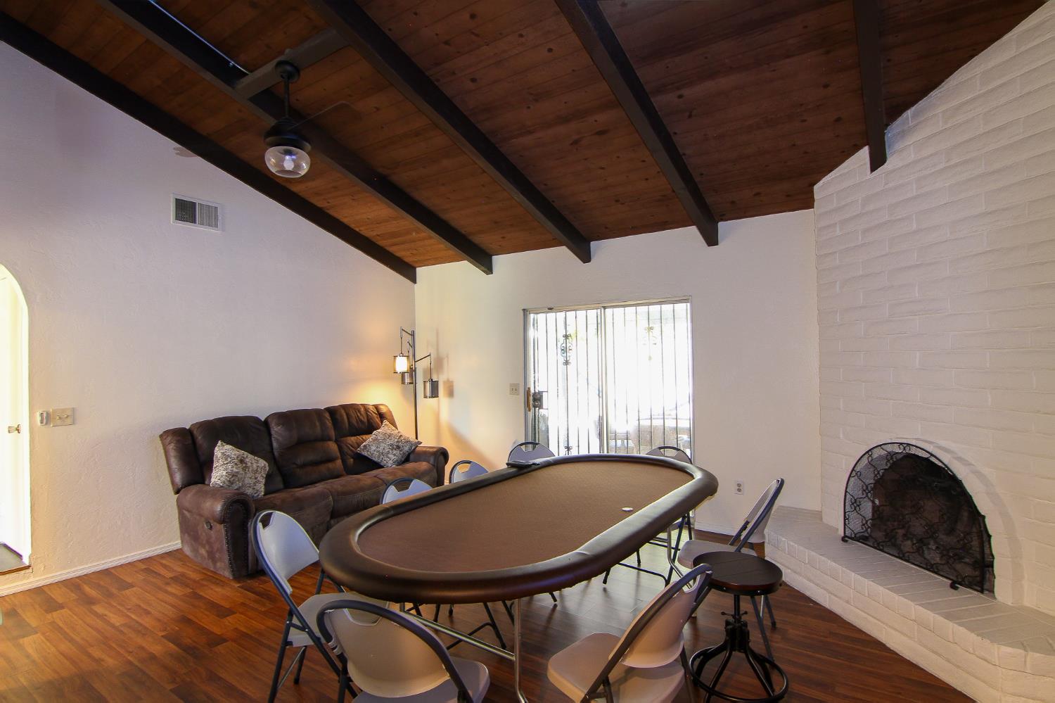 This is a bright and airy home with a geat layout. The living room features vaulted ceilings that create a sense of spaciousness, while large windows fill the room with natural light. The home has three bedrooms and two full bathrooms, including a primary suite with its own private bath. Step outside to a beautiful backyard patio, perfect for relaxing or entertaining. The expansive space is an ideal spot for outdoor dining, surrounded by a peaceful and private landscape.