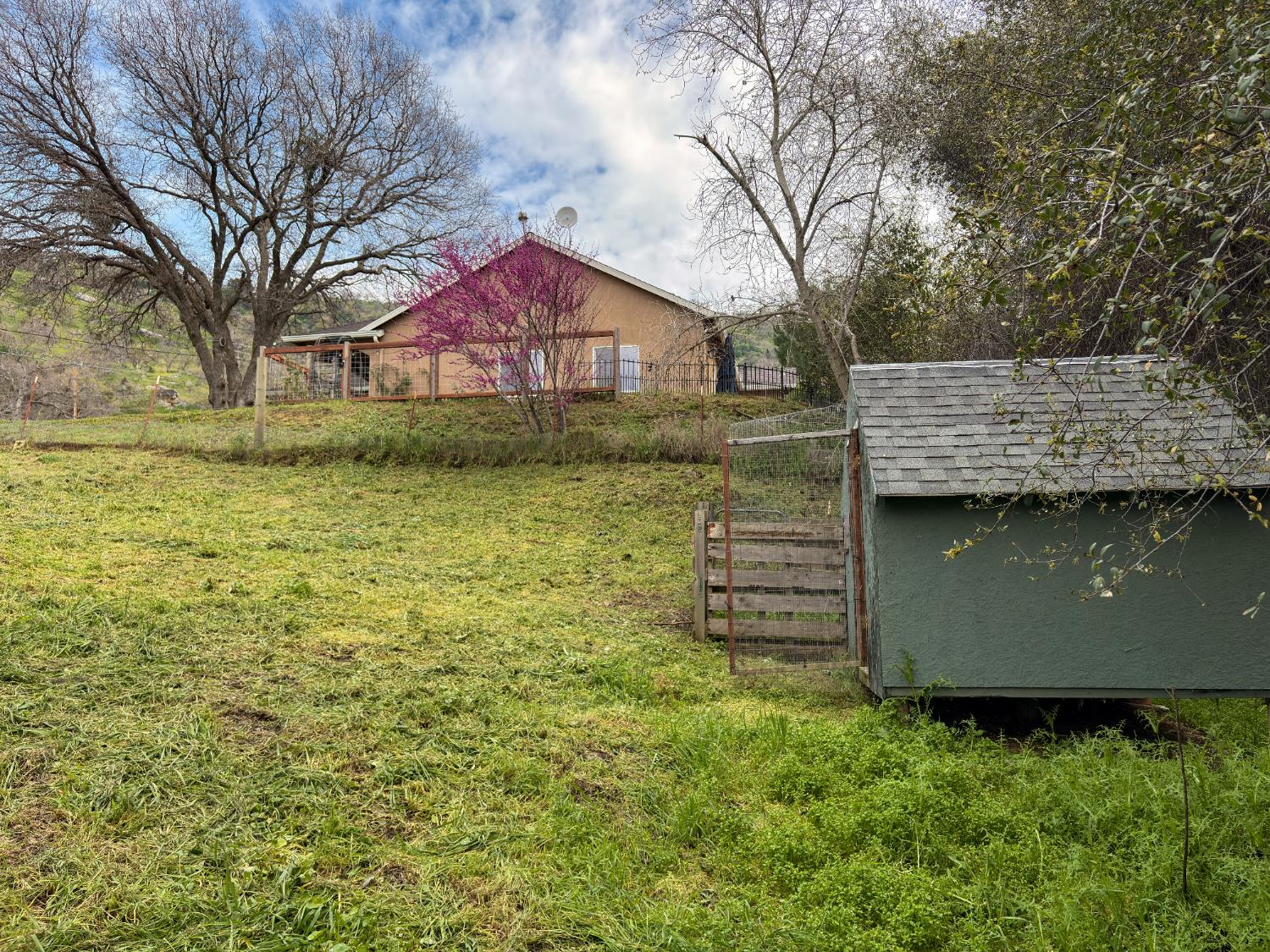 Welcome to this charming 3-bedroom, 2-bathroom home built in 2006, perfectly situated on a 2.3+/- acre corner lot in the heart of Squaw Valley. This property is a nature lover's dream, filled with mature towering oaks, buckeyes, redbuds, and ferns that line a peaceful creek. The exterior is a true retreat featuring a welcoming covered front porch and a spacious back open patio designed to take full advantage of the natural beauty and sound of the creek. The primary bedroom offers its own private access to the back patio, creating a perfect space for morning coffee or evening relaxation. For those looking for the full homestead experience, there is an established chicken coop and plenty of usable space to expand.<br><div>The interior offers a modern, open-concept layout with tall, vaulted ceilings, LED can lighting, and durable laminate wood flooring. Elegant granite countertops are found throughout the home, and the kitchen is equipped with stainless steel appliances, including a gas stove and dishwasher. The home features a durable stucco exterior and easy access from the main road. Practical utility features include dual-pane windows, steel gutters, a tankless propane water heater, and an energy-efficient HVAC system. The 2-car attached garage offers convenient outside access from both sides. Enjoy the peace and quiet of foothill living while being just minutes from the local Country Store and Dunlap School, while Central Valley shopping & Kings Canyon/Sequoia National Parks are under an hour away. Whether you are looking for a full-time residence or a mountain getaway, this property offers the perfect blend of comfort and natural beauty.</div>