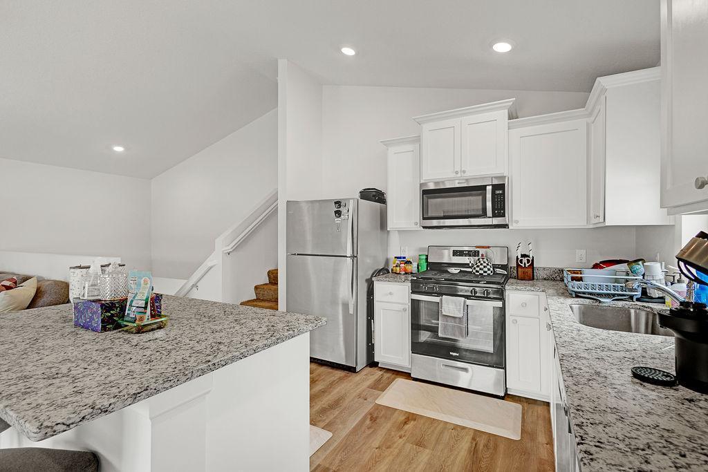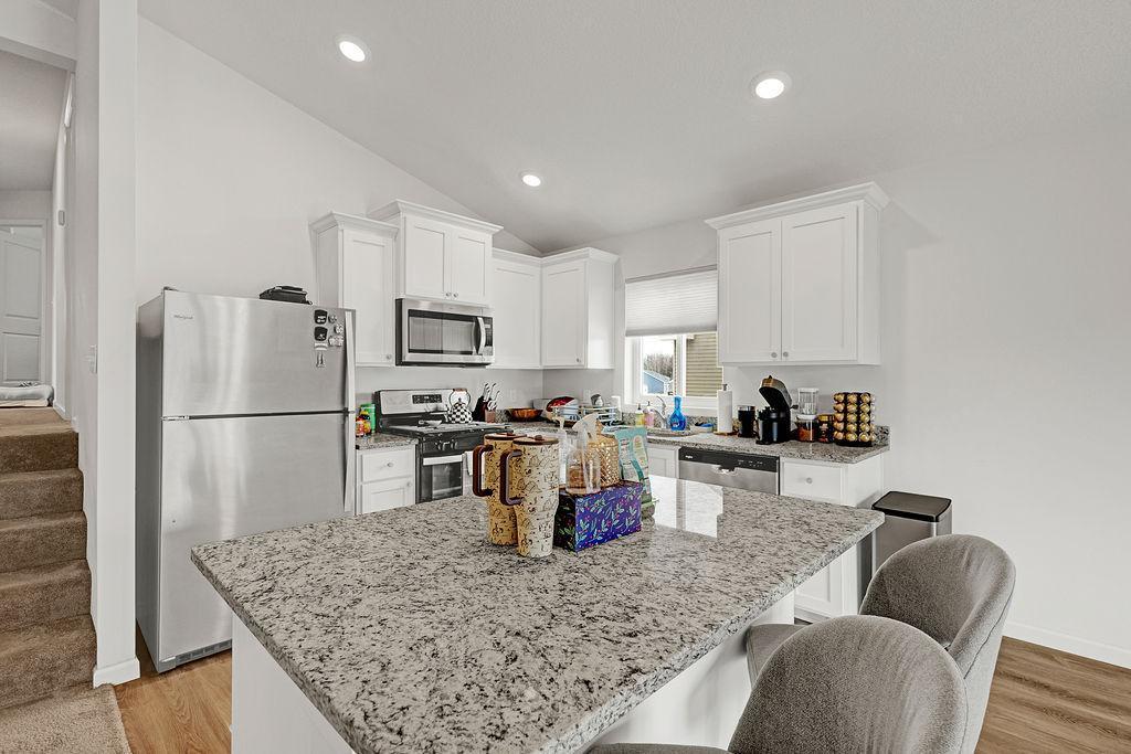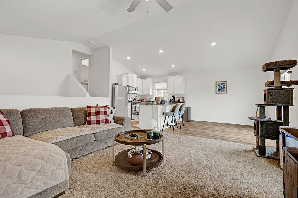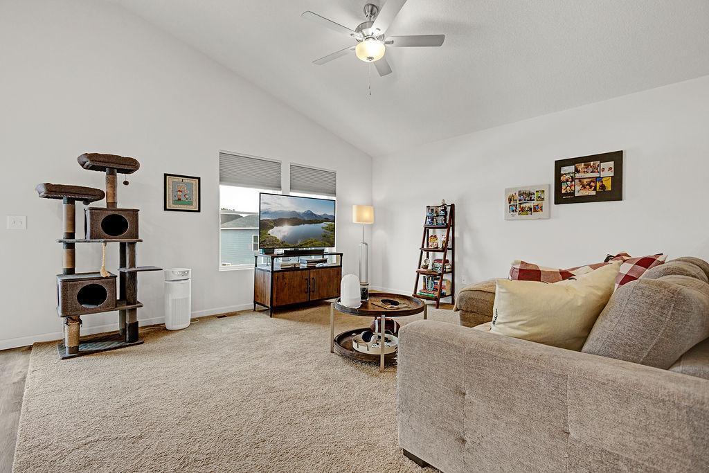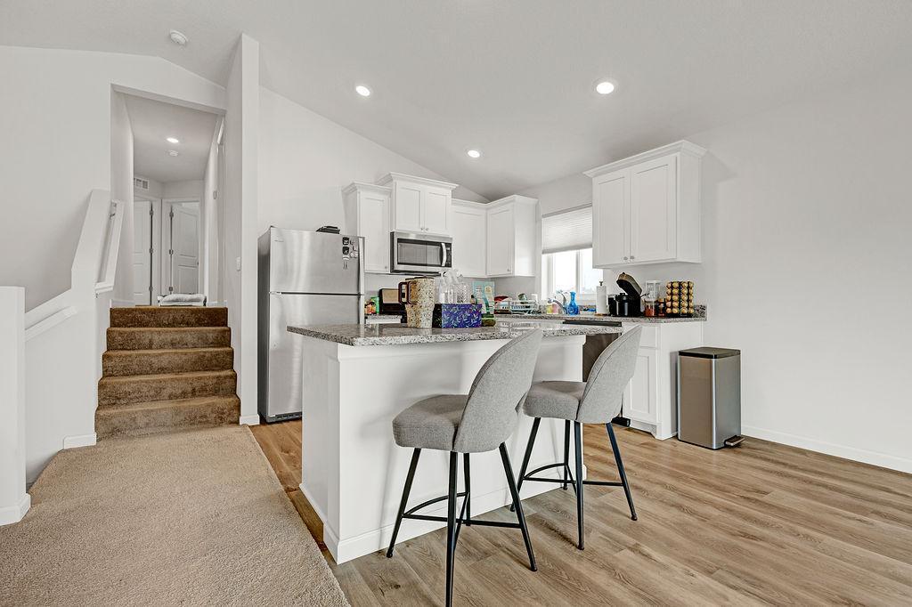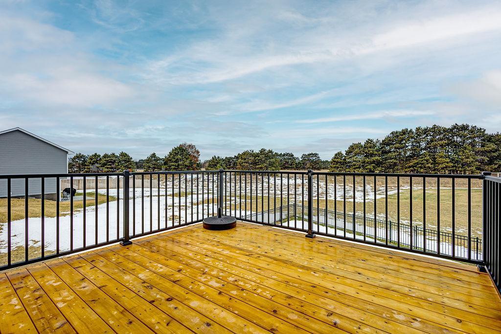 Located in Meadows North, this home shows pride in ownership, well-maintained, with endless possibilities for the lower level. Three bedrooms on upper level. Open concept main level. Kitchen Island, Inground sprinkler system, and finished garage. Improvements include deck, fenced backyard, gutters, window treatments, cabinet hardware, washer and dryer. Sale includes snowblower, lawn mower, weed whip, and shelving. See it today!