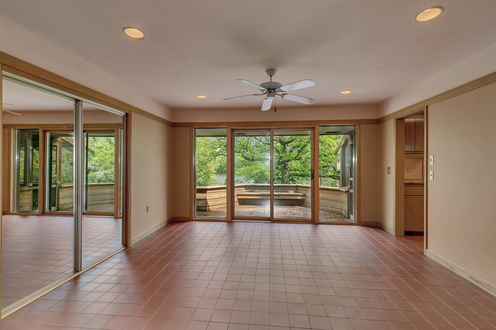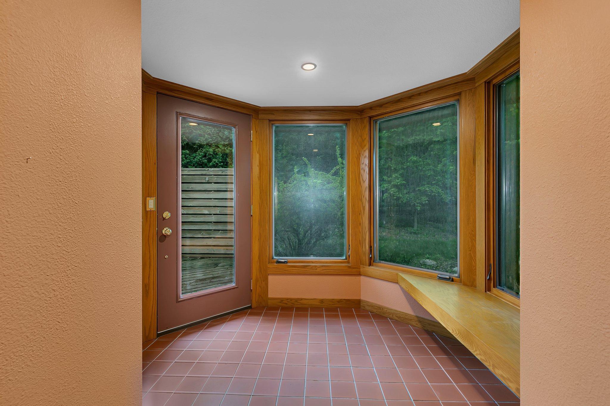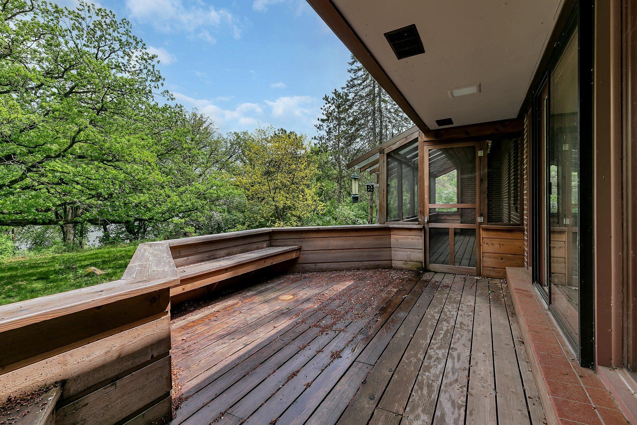 Welcome to this beautiful 1950's home with a Frank Lloyd Wright-Inspired Design on the Mississippi River. This architectural gem is truly one-of-a-kindand unlike anything else on the market. With 5 bedrooms, 4 bathrooms, and jaw-dropping views of the Mississippi River, this home offers a rare opportunity to own a piece of living art. Step inside to discover soaring floor-to-ceiling windows that frame the river, built-in seating by a cozy wood-burning fireplace, and a kitchen outfitted with granite countertops, a gas stove, and unique storage solutions. The main floor also features a stunning entryway, main level laundry, and a living space that invites relaxation. Upstairs, youll find two bedrooms full of character and architectural detail. The walk-out lower level boasts three additional bedrooms, two bathrooms, and a full Mother-In-Law suite with a private entrance, kitchen, and living area. The primary suite downstairs features its own fireplace and custom built-ins you wont see anywhere else. Outside, the backyard is centered around a magnificent, centuries-old oak treeoffering shade, beauty, and a timeless presence that anchors the natural surroundings. Enjoy panoramic views from the expansive deck, unwind in the screened-in porch, or simply soak in the peace and privacy of the riverfront setting. The home includes a one-car garage and a second tuck-under garage in the back. If you appreciate extraordinary architecture, nature, and unbeatable riverfront livingthis home is a must-see.
