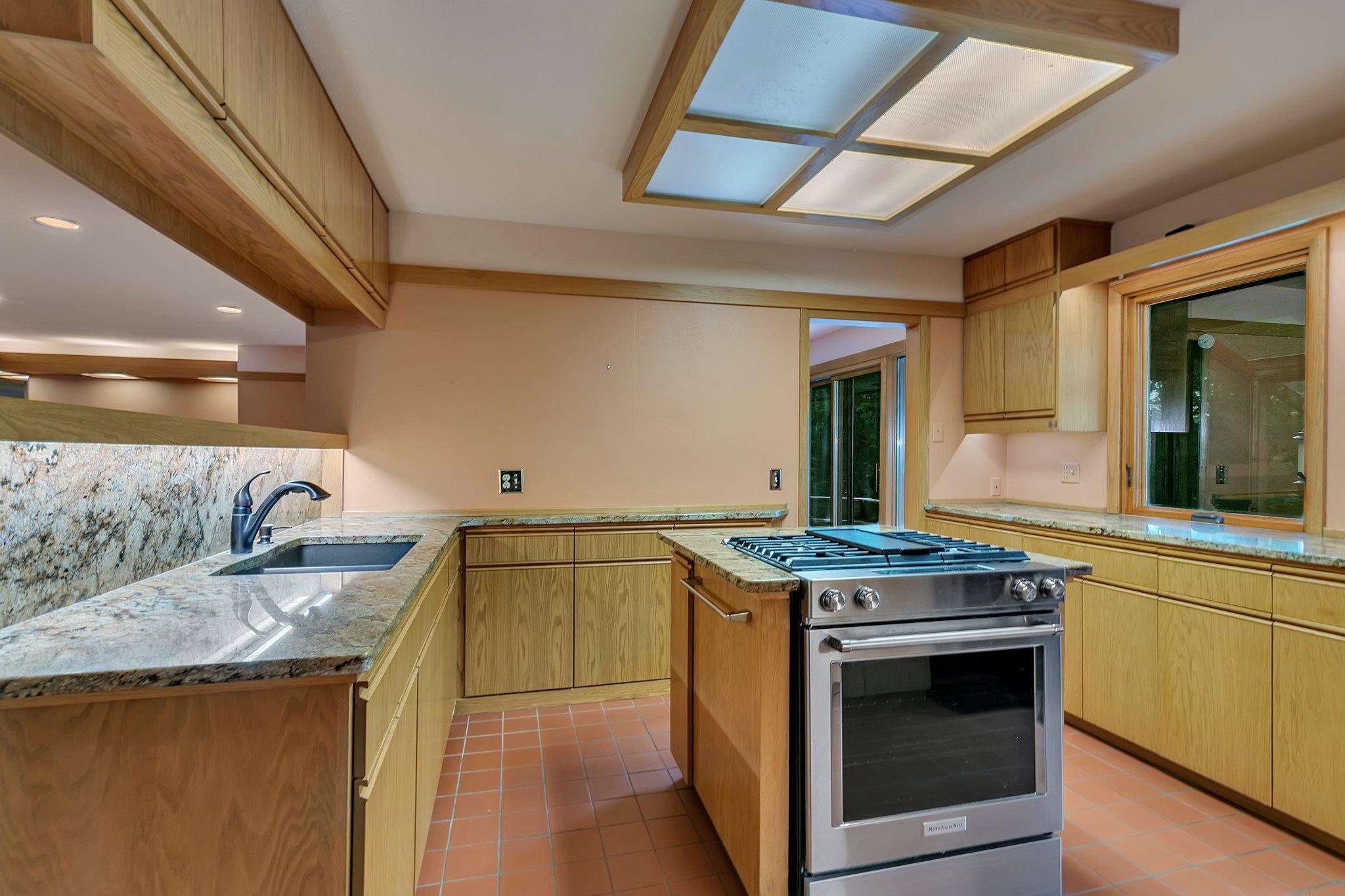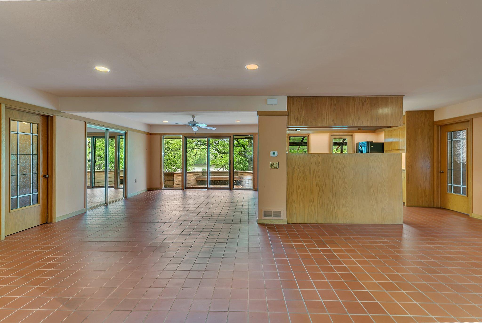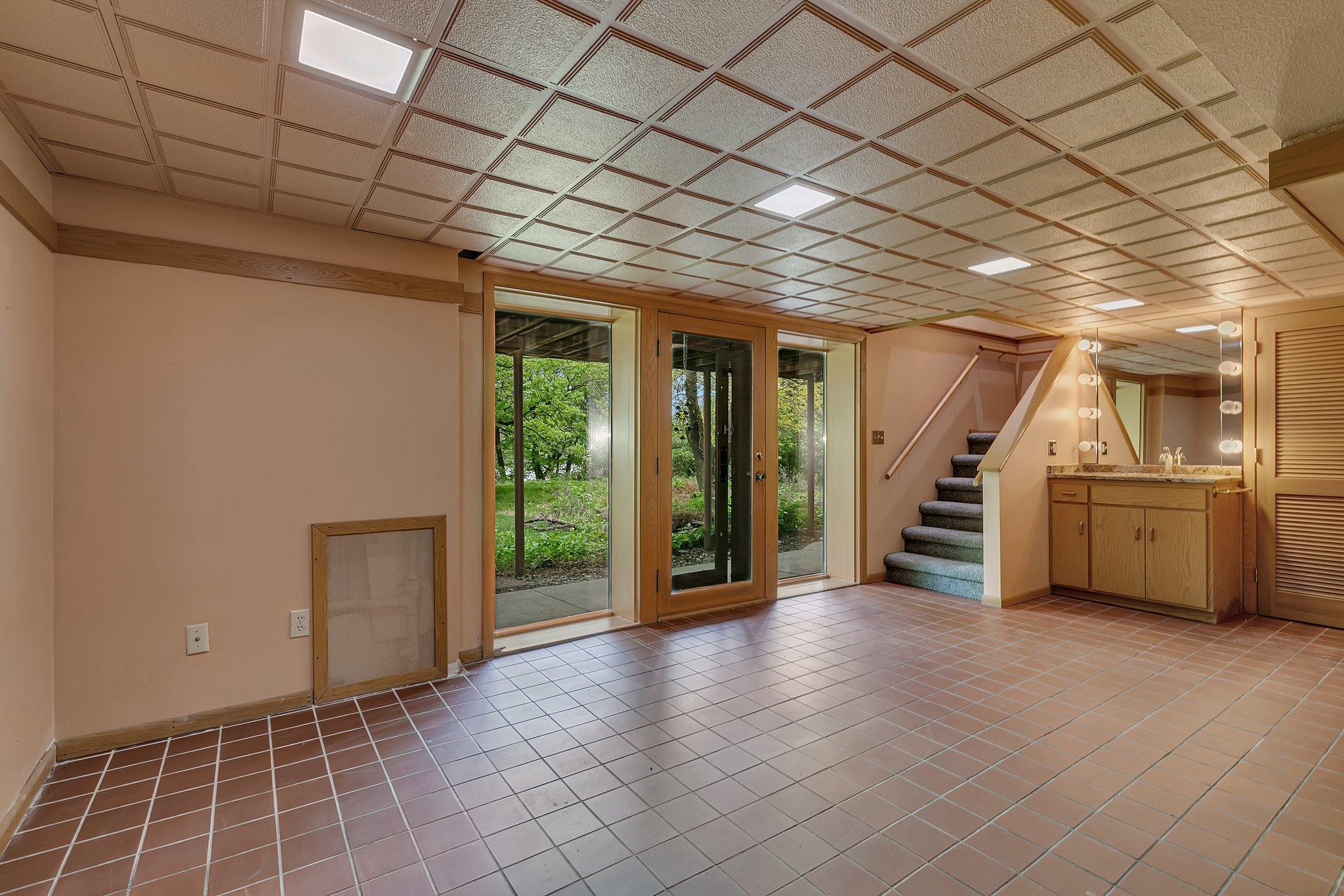 Welcome to this beautiful 1950's home with a Frank Lloyd Wright-Inspired Design on the Mississippi River. This architectural gem is truly one-of-a-kindand unlike anything else on the market. With 5 bedrooms, 4 bathrooms, and jaw-dropping views of the Mississippi River, this home offers a rare opportunity to own a piece of living art. Step inside to discover soaring floor-to-ceiling windows that frame the river, built-in seating by a cozy wood-burning fireplace, and a kitchen outfitted with granite countertops, a gas stove, and unique storage solutions. The main floor also features a stunning entryway, main level laundry, and a living space that invites relaxation. Upstairs, youll find two bedrooms full of character and architectural detail. The walk-out lower level boasts three additional bedrooms, two bathrooms, and a full Mother-In-Law suite with a private entrance, kitchen, and living area. The primary suite downstairs features its own fireplace and custom built-ins you wont see anywhere else. Outside, the backyard is centered around a magnificent, centuries-old oak treeoffering shade, beauty, and a timeless presence that anchors the natural surroundings. Enjoy panoramic views from the expansive deck, unwind in the screened-in porch, or simply soak in the peace and privacy of the riverfront setting. The home includes a one-car garage and a second tuck-under garage in the back. If you appreciate extraordinary architecture, nature, and unbeatable riverfront livingthis home is a must-see.