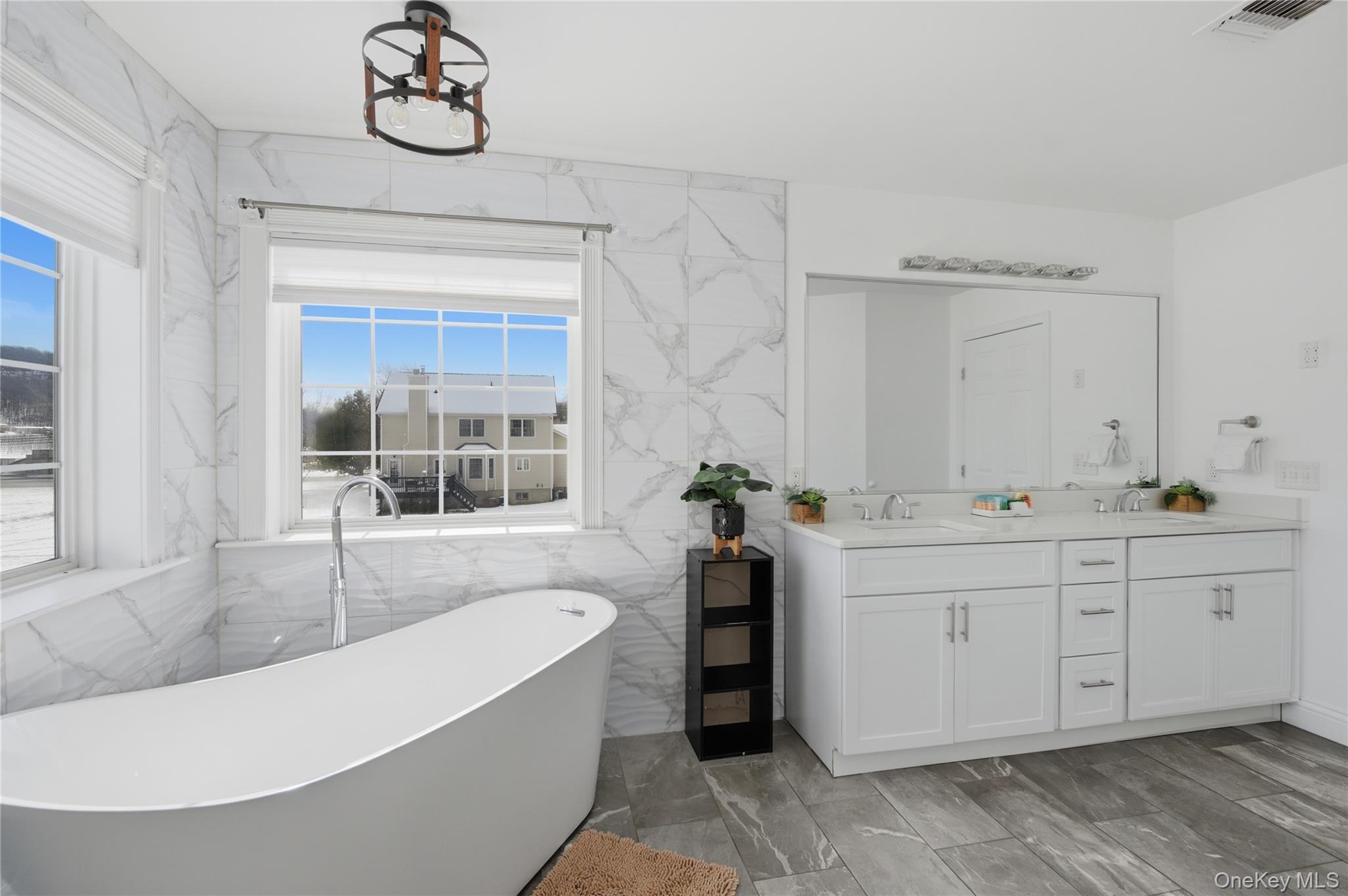 Welcome to 4 Picnic Woods Road a stunning 4-bedroom, 2.5-bath Colonial residence perfectly positioned on 1.05 acres in scenic Clintondale. With over 3,000 square feet of beautifully designed living space, this home offers elegance, space, and comfort for both everyday living and entertaining.From the moment you arrive, the striking stone-accented façade, classic symmetry, and snow-covered grounds set a picture-perfect tone. Step inside to be greeted by gleaming hardwood floors, a sun-drenched formal dining room with tray ceiling, and arched entryways that evoke timeless charm.The heart of the home is the fully renovated kitchen a chefs dream outfitted with crisp white cabinetry, stainless steel appliances, sleek quartz countertops, and a bold chevron tile backsplash. A thoughtful open layout flows into spacious living areas, offering plenty of room for connection and relaxation.Retreat to the spa-inspired primary suite featuring a soaking tub set beneath wraparound windows, dual vanities, and luxurious marble-style tile work. Three additional bedrooms provide flexibility for guests, home office, or play space.Outside, a large raised deck overlooks the expansive backyard perfect for summer BBQs, lounging by the in-ground pool, or playing in the snow-covered yard during winter. The bonus? A private indoor hot tub oasis tucked inside a cedar-clad room with skylight ideal for year-round wellness and relaxation.This property is nestled in a peaceful cul-de-sac neighborhood surrounded by nature and rolling Hudson Valley hills, yet offers quick access to New Paltz, Gardiner, and the NYS Thruway. Whether you're looking for a full-time residence or weekend retreat, this home offers an exceptional lifestyle in a coveted location.