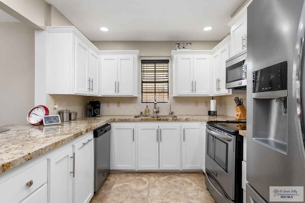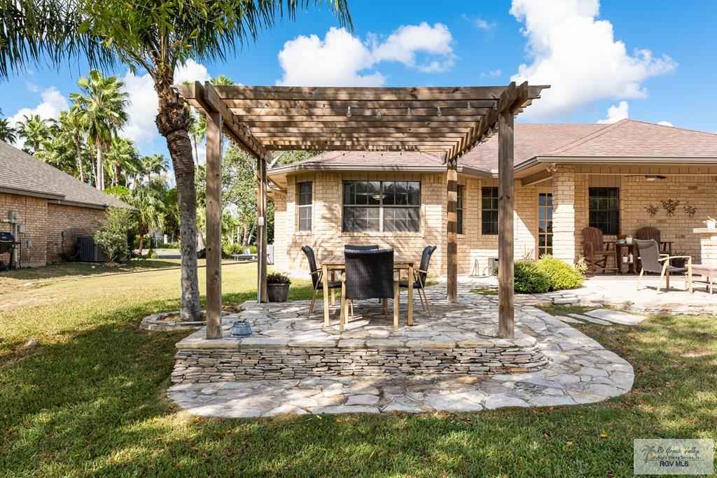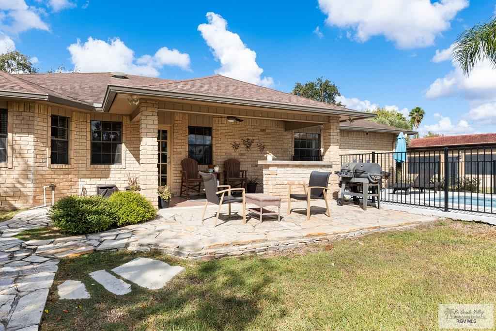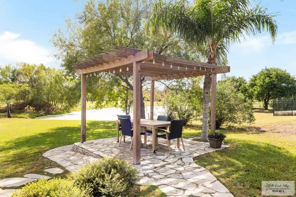 Immaculate 3BR/3BA home in Rancho Viejo with pond & fairway views. Beautiful and impeccably maintained home featuring a spacious living room, dining area, and a kitchen with island eating bar, stainless steel appliances, and granite countertops. Split-bedroom layout with wood and tile floors throughout. The primary suite offers a double-sink vanity and shower-only bath. Enjoy pond views from the backyard overlooking the 12th fairway. Outdoor features include a covered tiled patio, pergola sitting area, fenced lounge pool, and sprinkler system. Home also offers a laundry room and a two-car garage with golf cart slot. Move-in ready and in excellent condition.