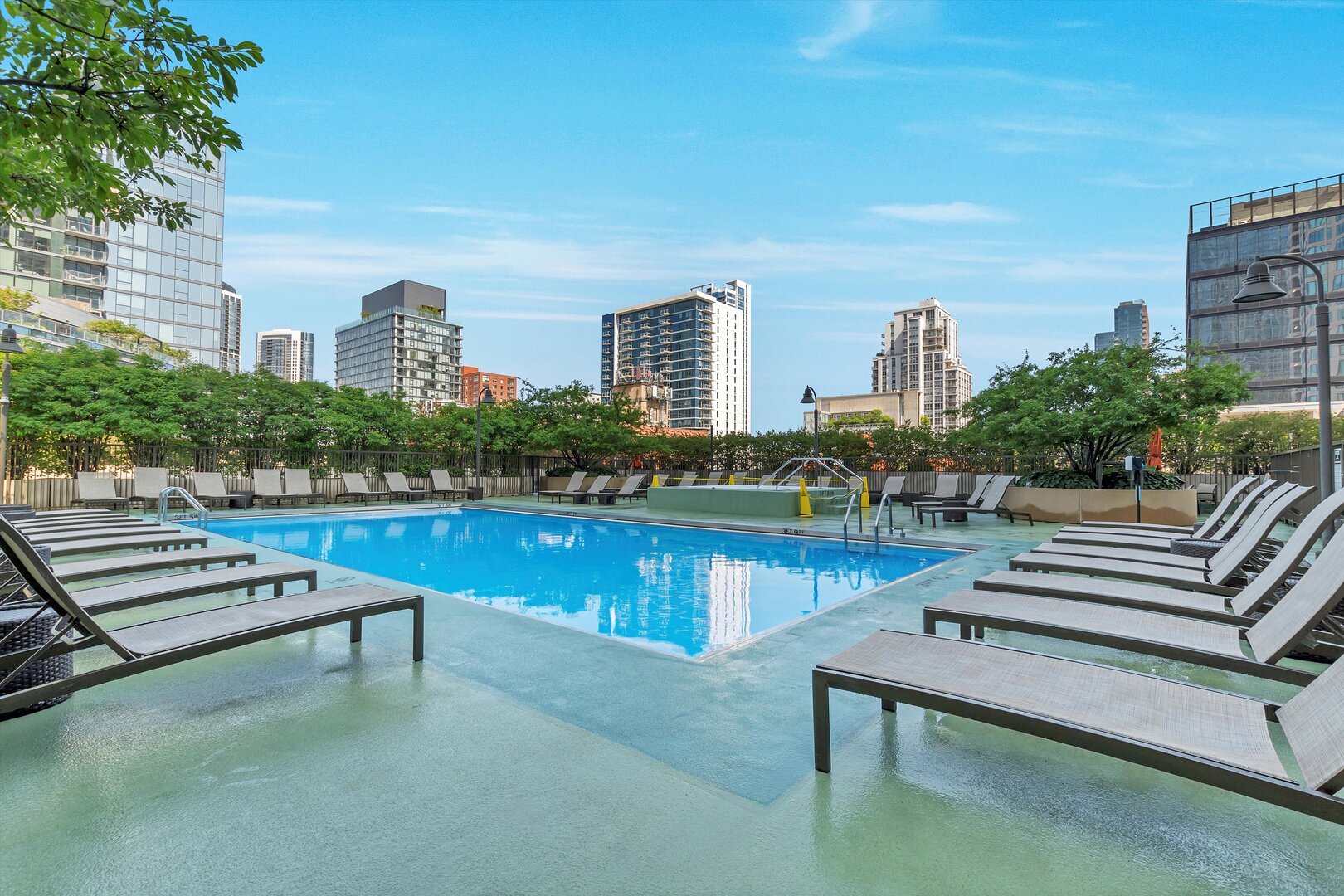 Amazing High Floor, Sunny Unit, located in River North's best location. Brazilian Cherry Wood Floors; Newer GE stainless steel kitchen appliances. In-Unit Washer/Dryer, Balcony w/sweeping views. Incredible Amenities including: 24/7 doorman, gym, party room, and easily one of the BEST outdoor pools and sun-deck you will find in the city! Rent includes: heat, gas, water, cable and internet. Storage locker also included!