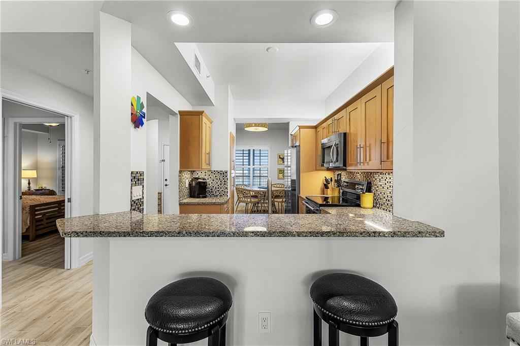 Available 2026 season! Experience the pinnacle of downtown Naples waterfront living in this stunning 2-bedroom, 2-bath Bayfront condo. Fully updated with elegant wood-look porcelain tile flooring, state-of-the-art kitchen appliances and cabinetry and a full-size washer and dryer, this residence blends modern sophistication with coastal charm. The primary suite offers a generous walk-in closet and en-suite with double sinks and large walk-in shower while the guest bedroom is perfectly situated near a beautifully appointed full bath. Step onto your private lanai overlooking a meticulously landscaped piazza with sculptures and sun-lit fountainsx2014;a serene retreat for morning coffee or evening relaxation. Bayfrontx2019;s exclusive amenities elevate your lifestyle: tennis and pickleball courts, two sparkling pools, two outdoor jacuzzies, a fully equipped fitness center, and an expansive outdoor patio with barbecue grills and a fire pit. Indulge in waterfront dining, boutique shopping, a gazebo bar, and the new Gulfshore Playhouse just across the way. On-site boat and bicycle rentals provide effortless access to Naplesx2019; pristine waters.xD;xA;Located just minutes from Tin City, Fifth Avenue South, Naples Bay Resort and world-renowned beaches, this exceptional condo offers the ultimate combination of European style luxury, convenience, and sophistication in the heart of Naples.