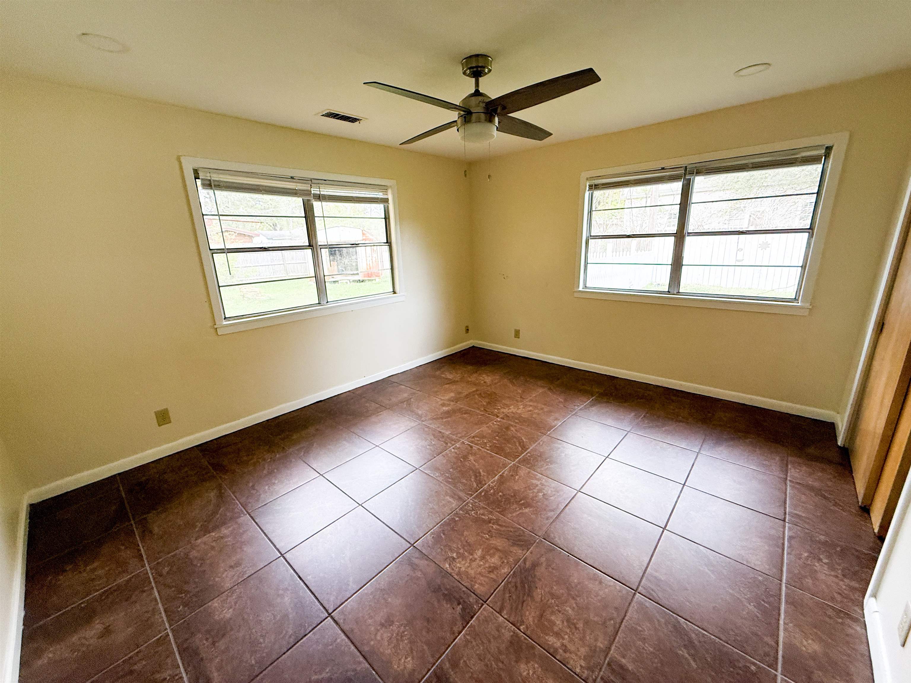 This beautifully updated home sits on a spacious, tree-shaded corner lot in a charming neighborhood. Enjoy a large front yard, a fully fenced backyard, and plenty of space for all your summer activities. A bonus building out back offers the perfect spot for a studio, office, craft room, man cave, or party space. Inside, youll find a roomy den with a cozy fireplace, a welcoming foyer, and a formal living area filled with natural light. The bedrooms are generously sized. The hallway bath features a large tiled walk-in shower, and the primary suite includes its own ensuite with shower and built-ins. Tile flooring runs throughout, and the two-car garage provides ample storage. This home is truly a must-see! Pets allowed on a case-by-case basis with $500 non-refundable pet fee. Security deposit is $1500. Schedule your showing today!