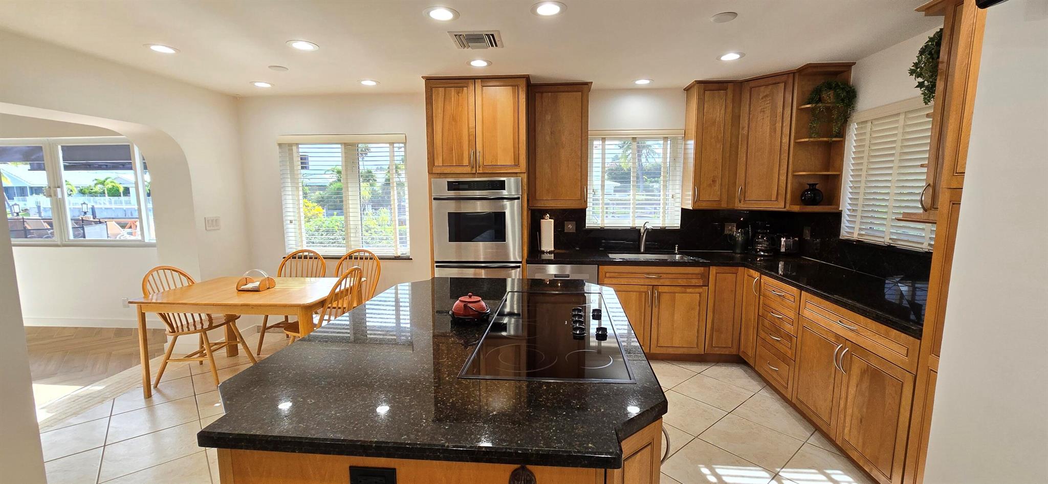 Amazing water views! No fixed bridges! Bring the boat! Beautiful intracoastal home, pool, jacuzzi & dock! Great location close to restaurants, shops & beach! Gorgeous beamed cathedral ceilings, spacious & open floorplan. Remodeled kitchen, granite counters, island, eat in area, stainless appliances, Subzero refrigerator & Thermador double oven. Built in pantry cabinets for ample storage. Butler kitchen & versatile office. Brick fireplace living room, formal dining & buffet area. Family room w long waterfall counter bar. All overlooking the pool & intracoastal! Master bedroom offers walk in closet plus sunroom w closet & water views. Master bath walkin shower & spa tub. IMPACT windows & auto roll down screens. Exceptional waterfront outdoor living space, pool, jacuzzi, extended deck & dock