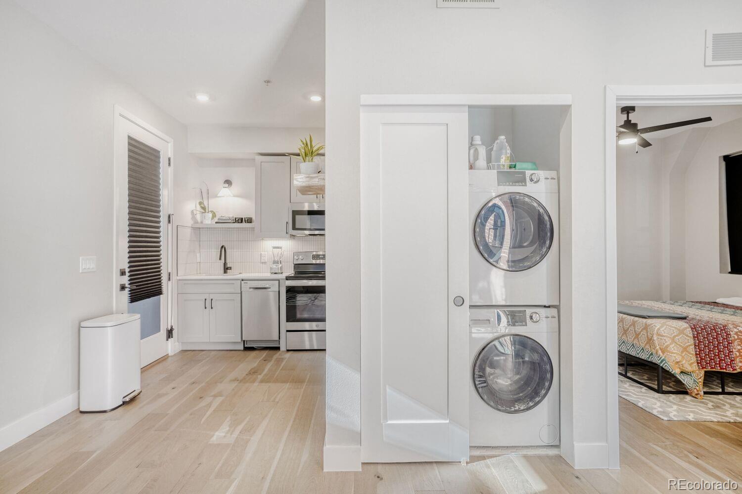 Life in Denvers 80211 zip code is all about balanceurban energy, creative culture, and easy access to everything that makes the city funand this modern new-construction condo puts you right in the middle of it all. One of only six residences in a boutique building, this front-facing home offers a rare combination of intentional design and a low-maintenance lifestyle, complete with a remarkably low $175/month HOA. Inside, the space is smartly laid out to maximize light, flow, and function, with clean modern finishes, engineered hardwood floors, and quartz countertops with a clean, modern look. Thoughtful upgrades like solar window film add privacy and efficiency, while a sleek in-unit washer and dryer make everyday living effortless. Step out onto your private front porch and enjoy the rhythm of the neighborhoodperfect for morning coffee, people-watching, or winding down after a long day.What truly elevates this home is the lifestyle outside your front door. Spend weekends biking the nearby trails, hopping between Sunnyside, LoHi, and downtown in minutes, or catching live music, pop-up events, and food trucks throughout the area. Walk to neighborhood favorites for brunch, meet friends for happy hour, or grab tickets to a comedy show without ever needing to drive. With major redevelopment projects bringing world-class entertainment, new residences, and global business hubs nearby, this part of Denver is evolving fastwhile still keeping its local, creative feel. Whether youre looking for a stylish home base, a lock-and-leave city retreat, or a smart investment in one of Denvers most dynamic zip codes, this condo offers a front-row seat to the citys presentand its future.